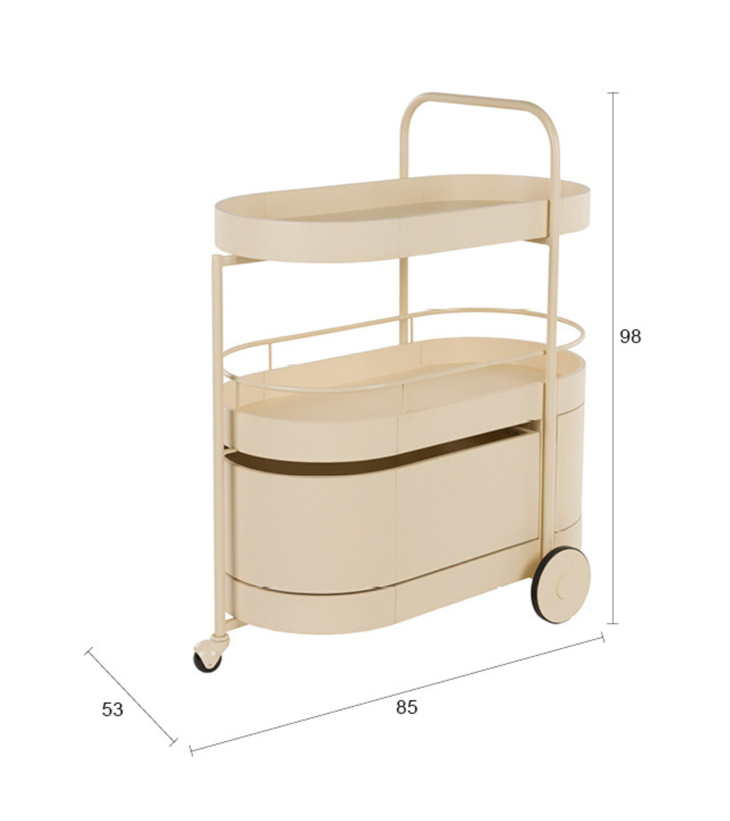 Hergestellt aus hochwertigem Eschenholz und pulverbeschichtetem Metall, ist er mit praktischen Regalen und Rollen ausgestattet, die es einfach machen, ihn zu bewegen - sei es als Küchenhelfer, Barwagen oder zusätzlicher Serviertisch. Ideal sowohl für den täglichen Gebrauch als auch für Feiern im heimischen Ambiente.