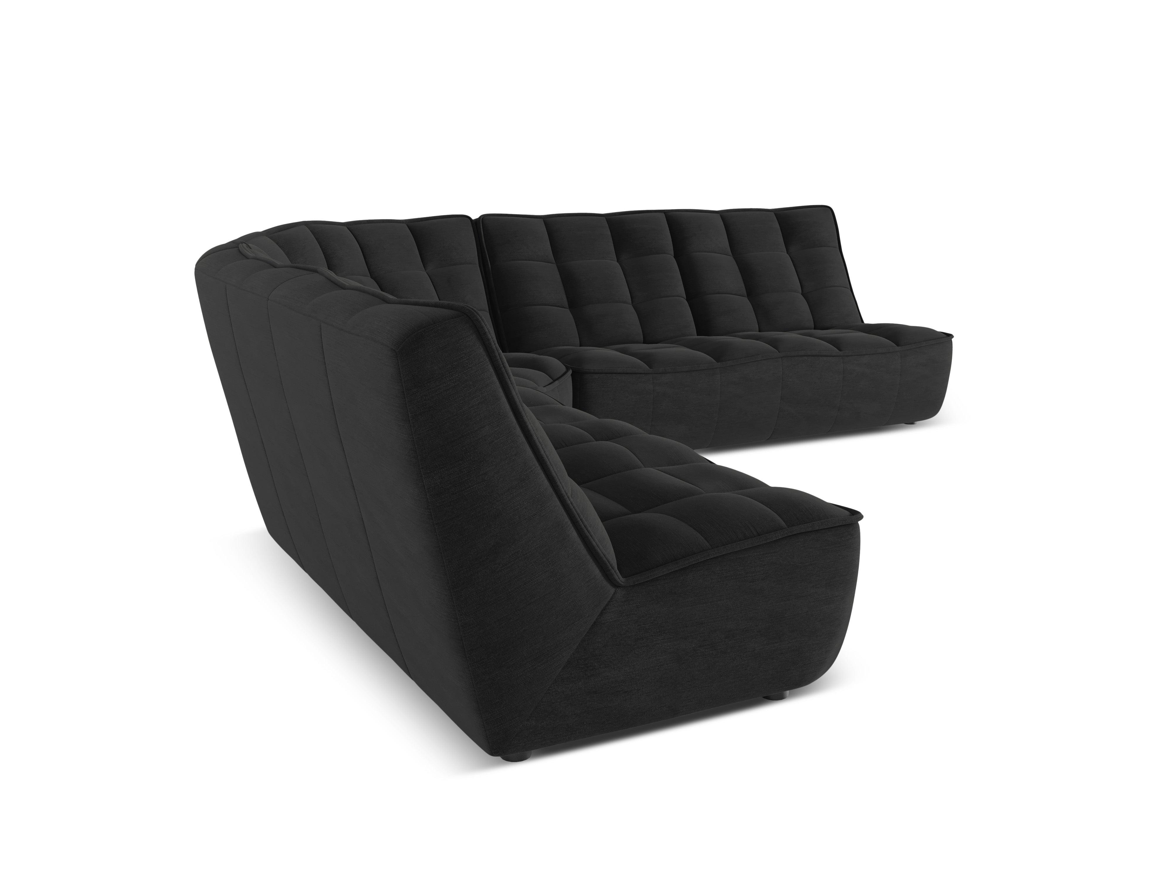 Polsterung aus strukturellem Stoff, dessen fein gewebte Struktur Samt mit einer heterogenen Oberfläche ähnelt, ist angenehm und extrem langlebig. Ergonomische Formen gewährleisten kostenlose Unterstützung. Die Moni -Kollektion umfasst mehrere Kombinationen von Sofas und Ecken sowie Elemente wie Chaise und Poufs.