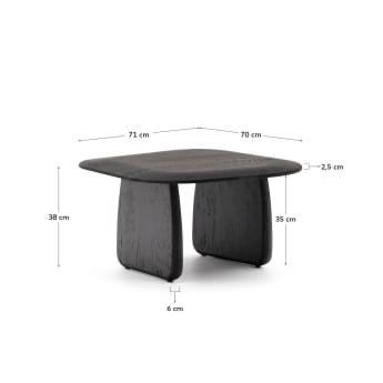 Seitentisch Pirita kombiniert ein zeitloses Design mit der natürlichen Schönheit von Massivholzholz. Mit seinen abgerundeten organischen Formen können Sie flexible Anordnungen im Raum erstellen und die Möglichkeit bieten, die Größe und Höhe des Tisches an den individuellen Bedarf anzupassen. Das schwarze Finish fügt Eleganz hinzu, und verstellbare Beine sorgen für eine Stabilität auf jeder Oberfläche.