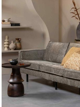 Seitentisch Bisschen Dies ist ein ungewöhnliches Möbelstück mit einer organischen Form aus der niederländischen Bepurehome -Sammlung. Es zeichnet sich durch ein rundes Oberteil und eine schichtgebildete Bein aus, die zusammen ein originelles, skulpturales Design erzeugen.