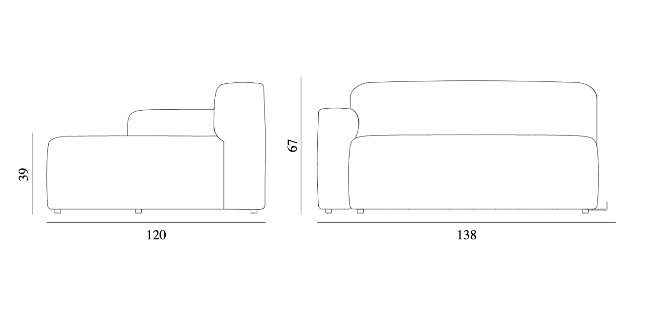 Modulares Seilsofa - links -Hand Chaiselong