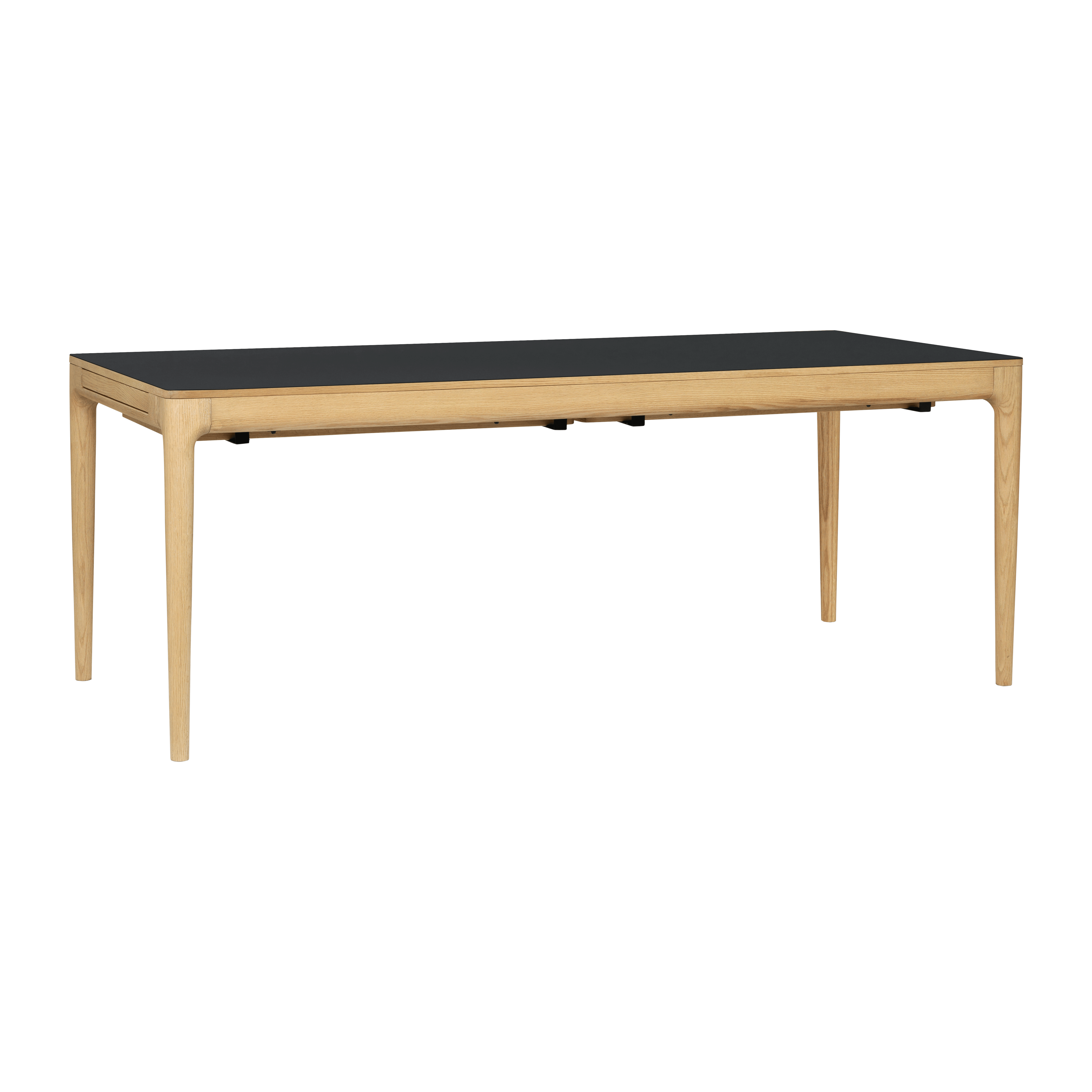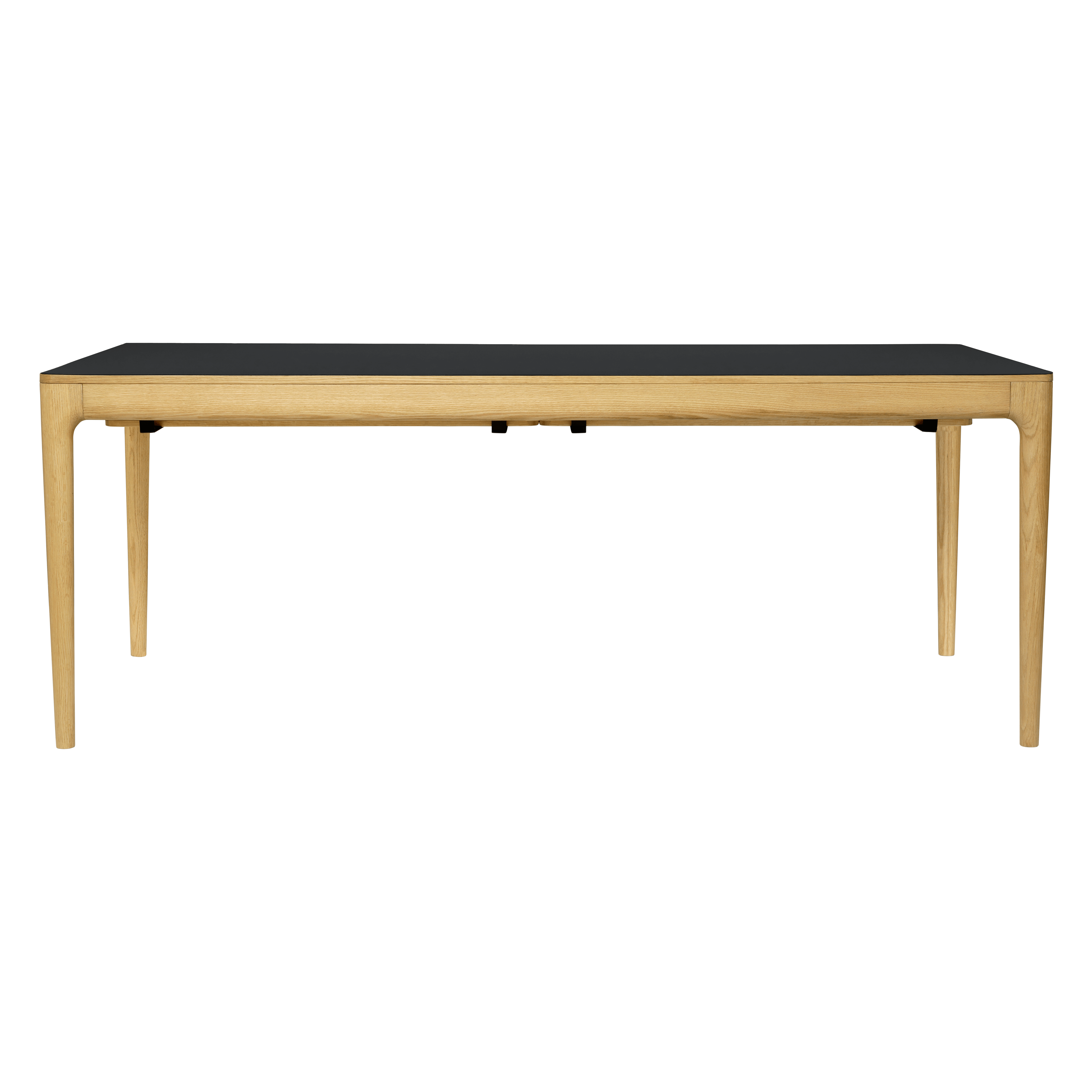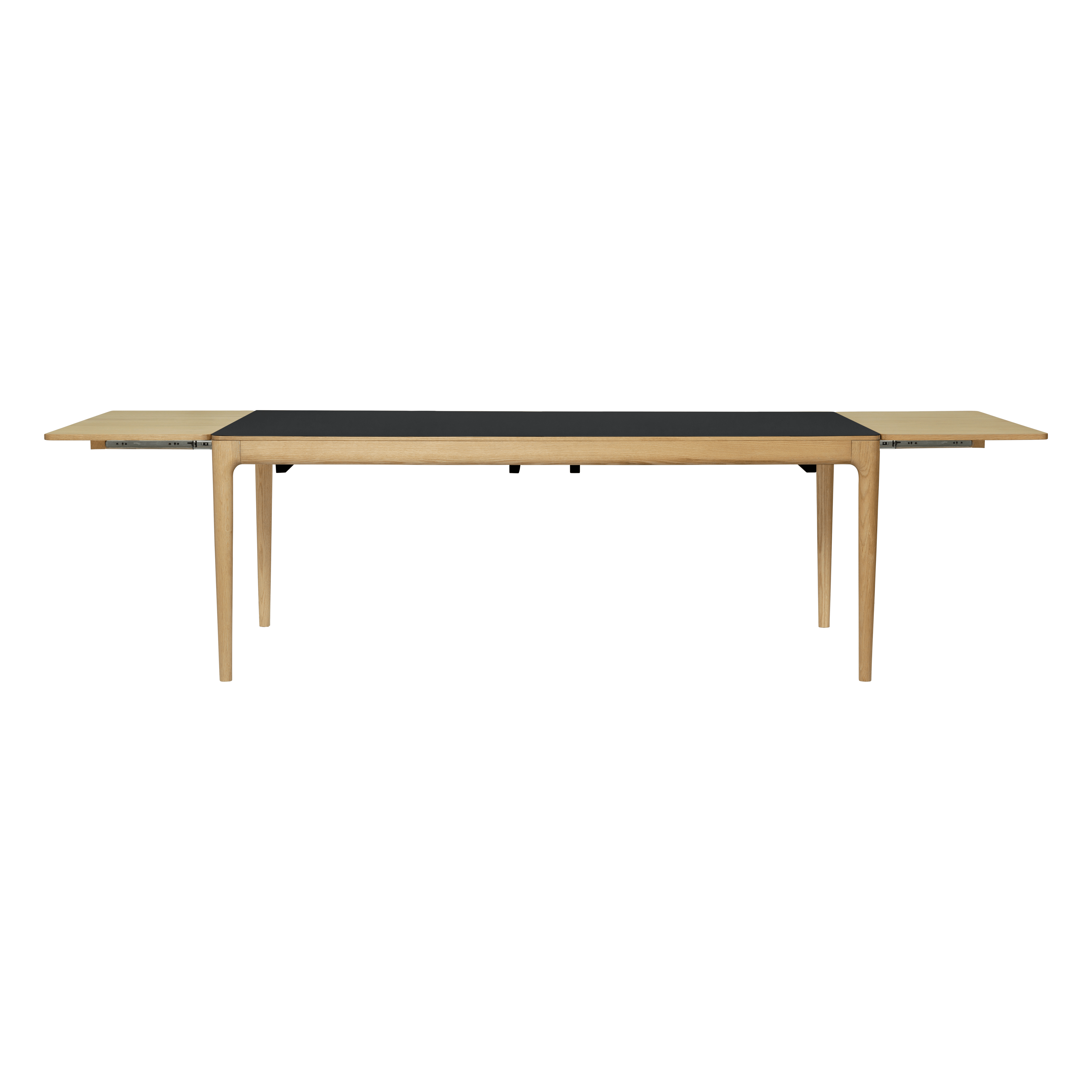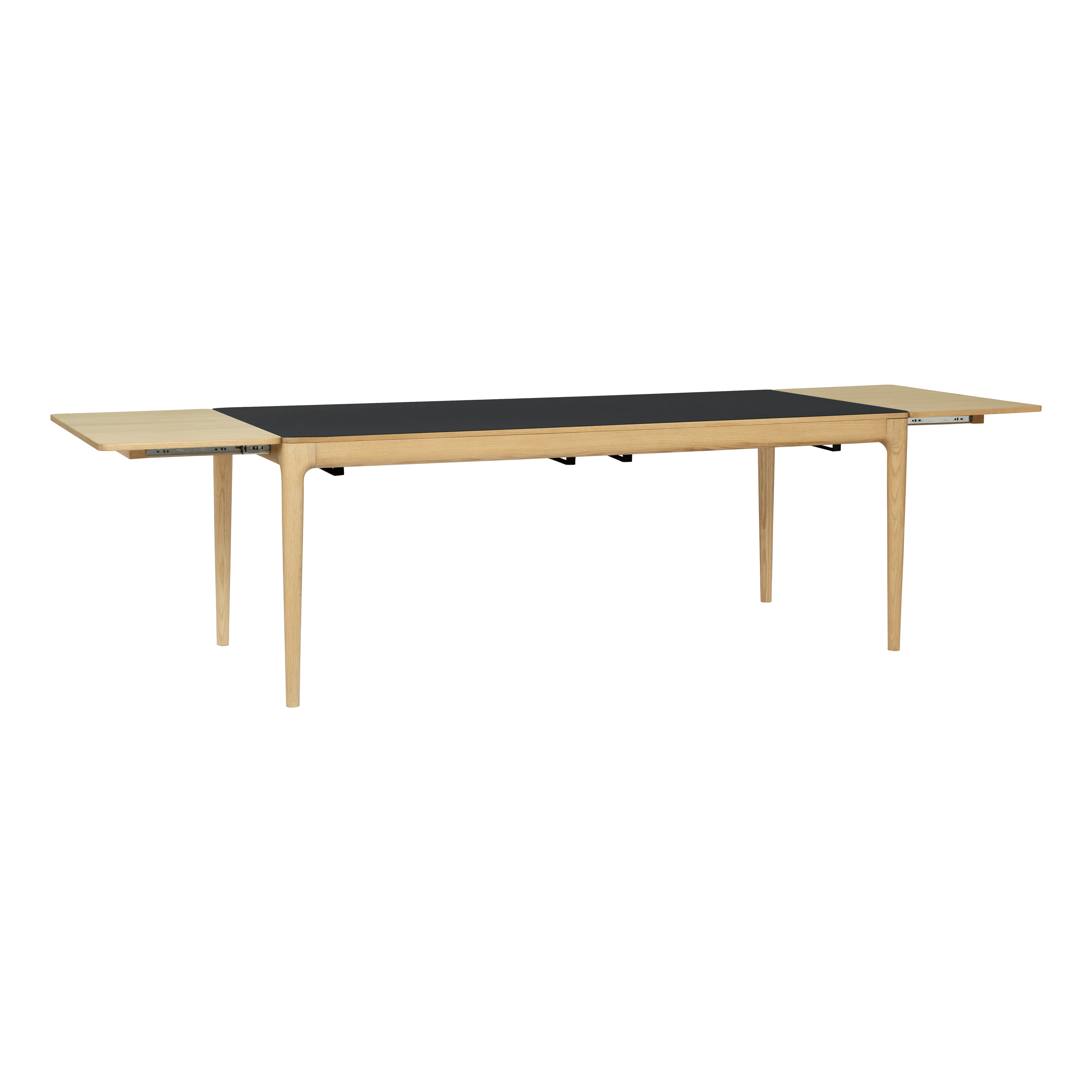 Tisch Es kann bequem bis zu 12 Personen aufnehmen, die in drei Farben erhältlich sind: Naturhilfe, dunkle Eiche und schwarze Eiche. Die Oak -Version ist auch mit Fenix® -Nanolaminat in Wolkengrau, Moosgrün und Obsidian Schwarz erhältlich und betont die natürliche Schönheit von Holz.