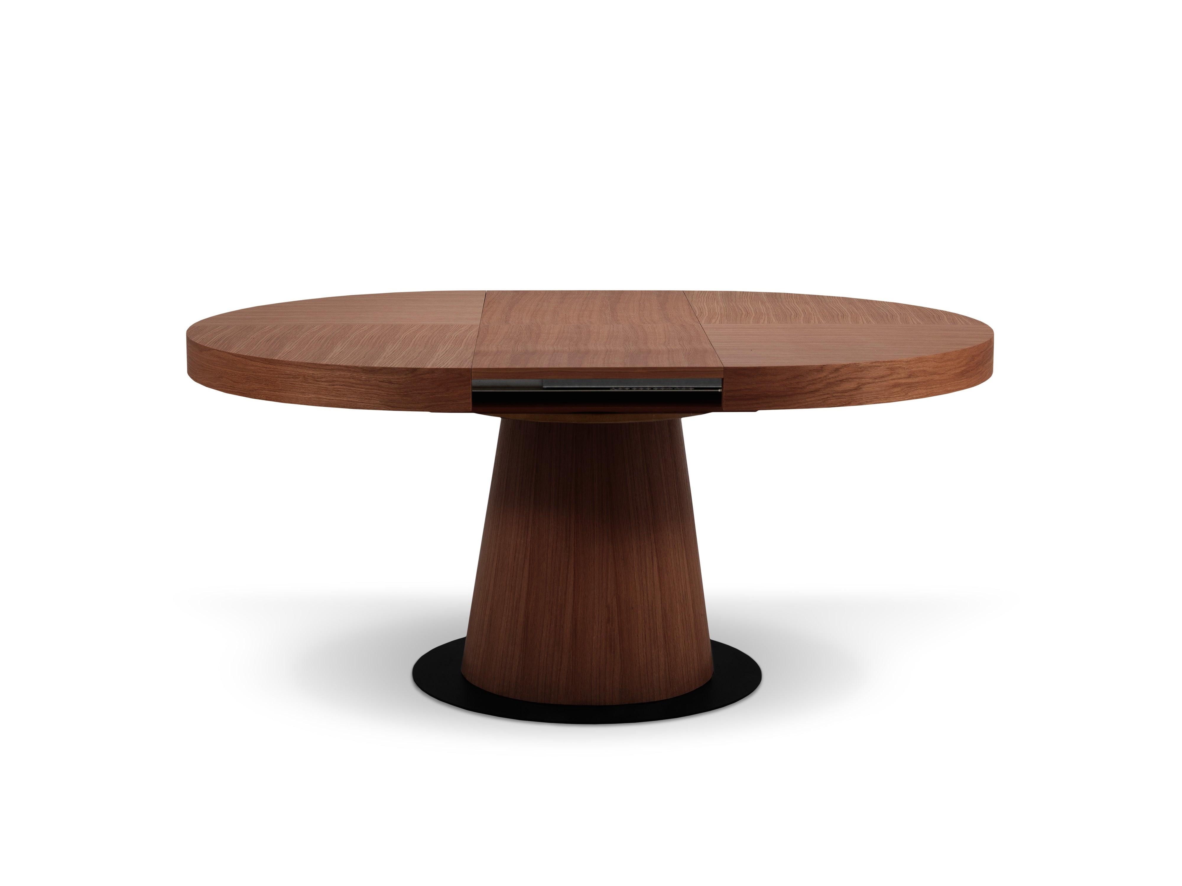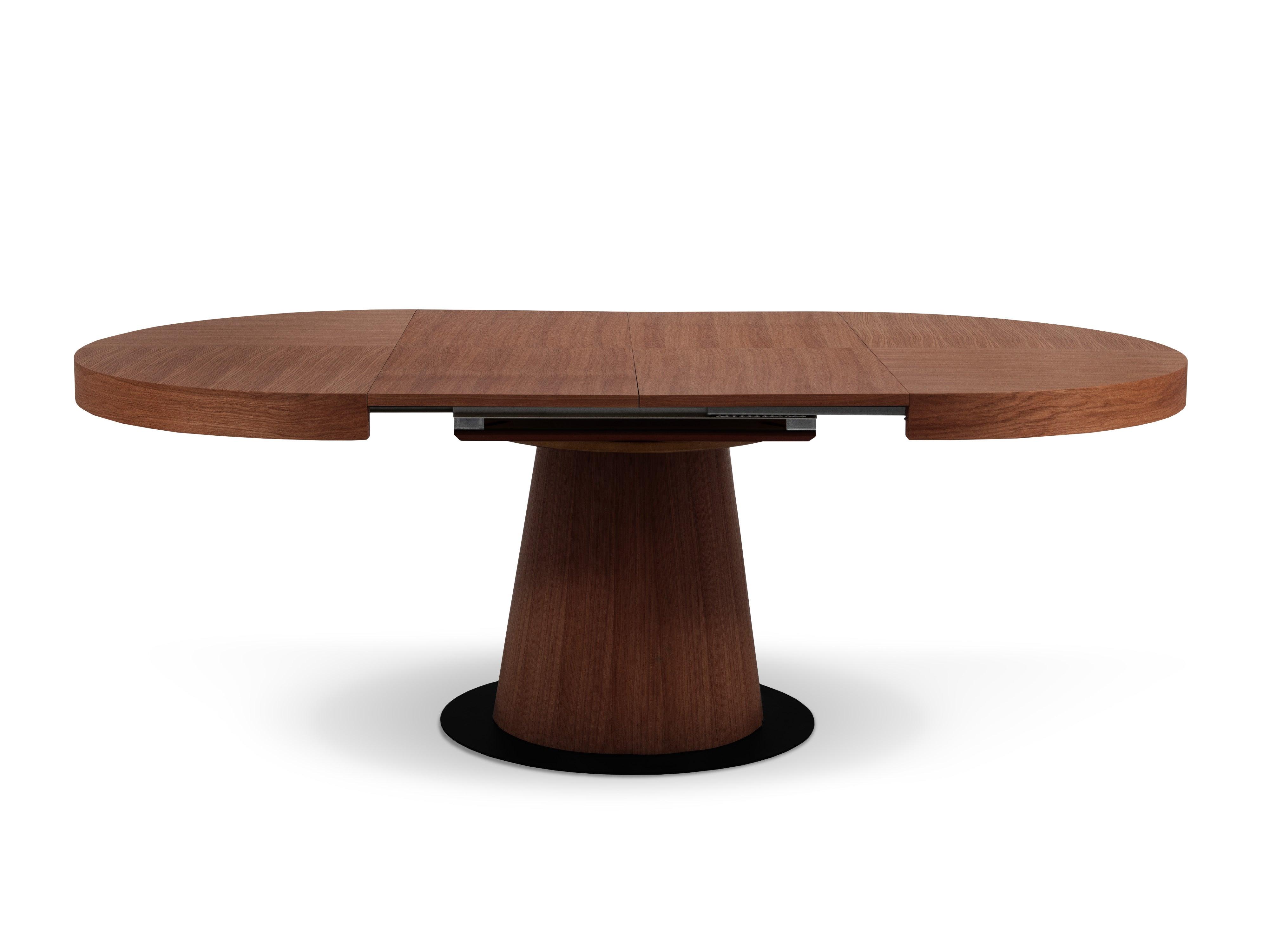 Faltplatte Laica ist ein einzigartiges Möbel für den Esszimmer. Die runde Arbeitsplatte kann leicht gefaltet werden und erzeugt die Form einer Ellipse. Die Unterstützung mit einem soliden Bein, der an eine mächtige Säule erinnert, verleiht dem Ganzen einen modernen Charakter.