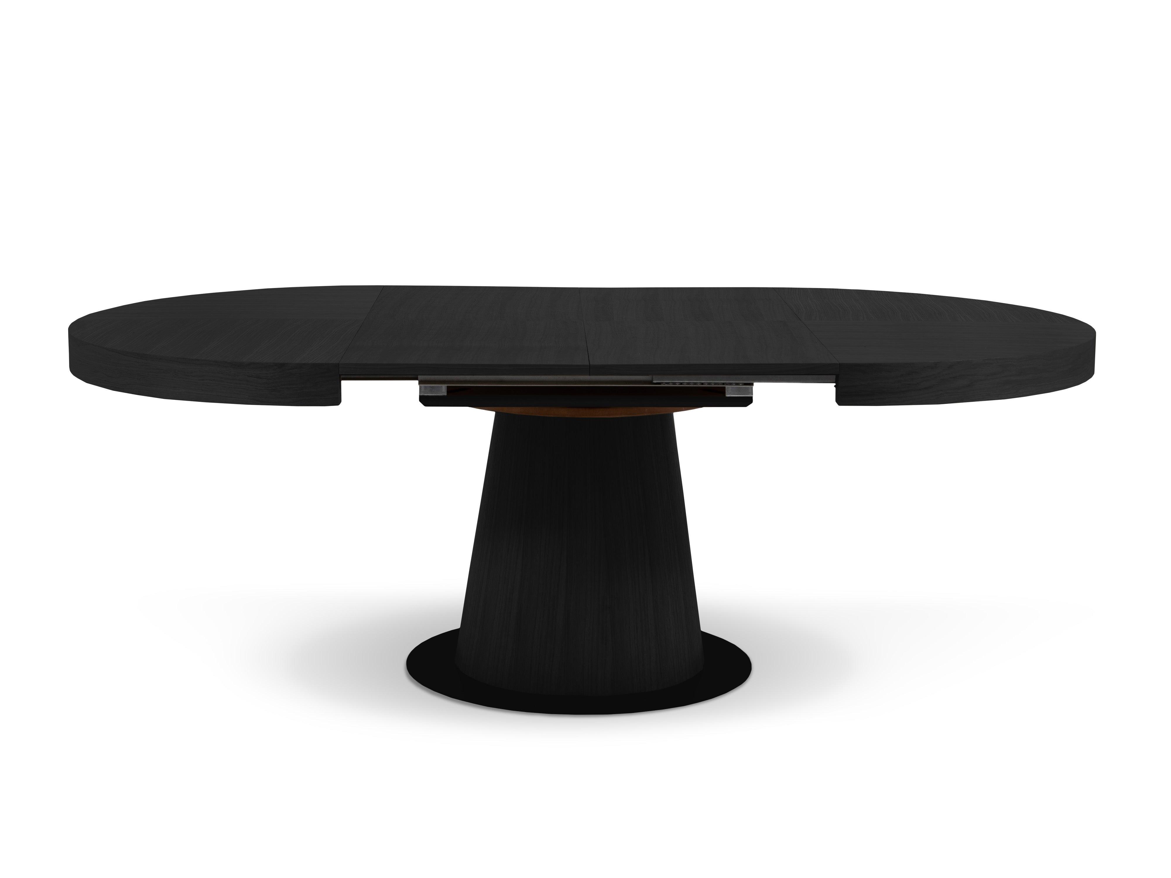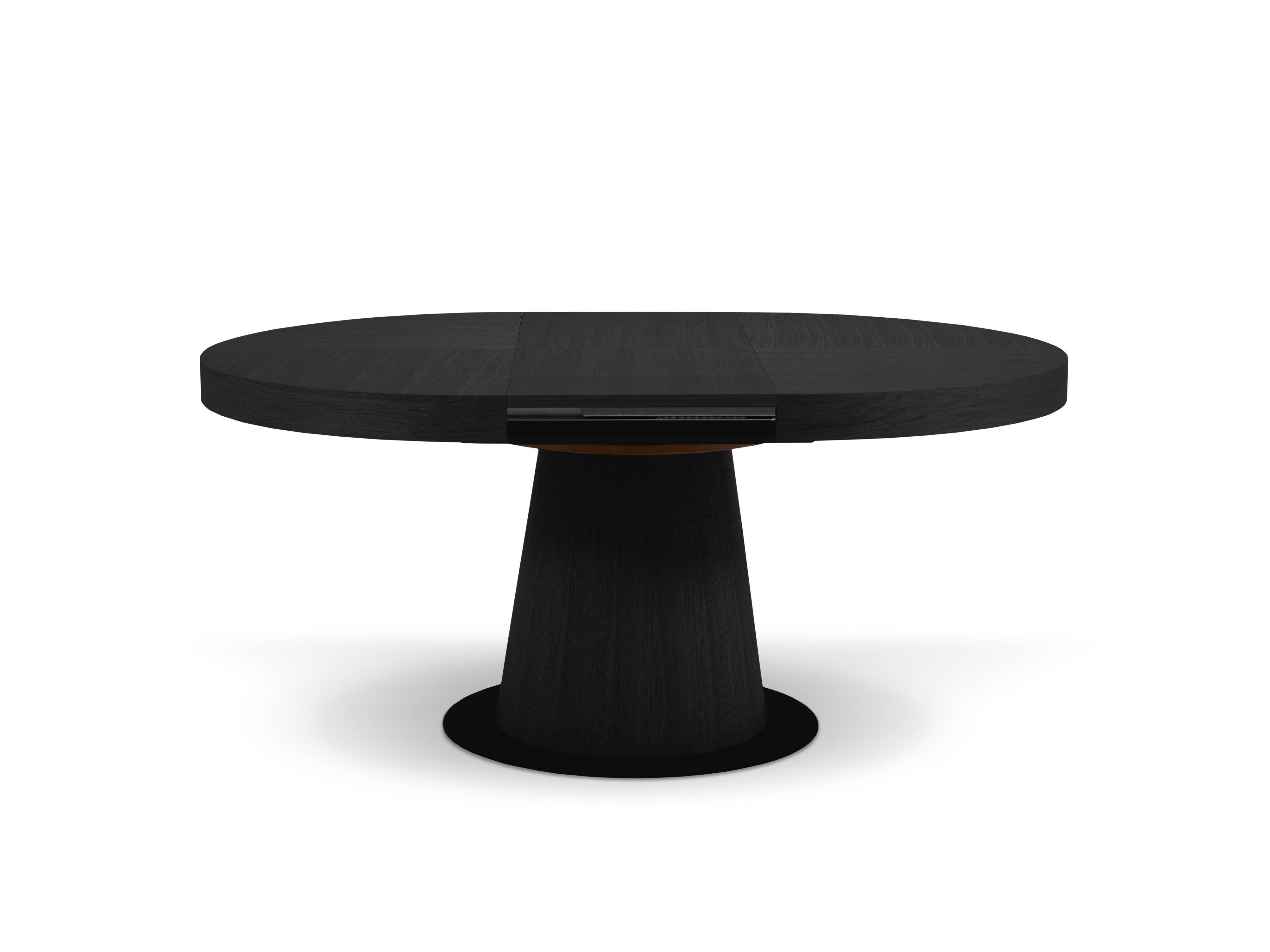 Faltplatte Laica ist ein einzigartiges Möbel für den Esszimmer. Die runde Arbeitsplatte kann leicht gefaltet werden und erzeugt die Form einer Ellipse. Die Unterstützung mit einem soliden Bein, der an eine mächtige Säule erinnert, verleiht dem Ganzen einen modernen Charakter.