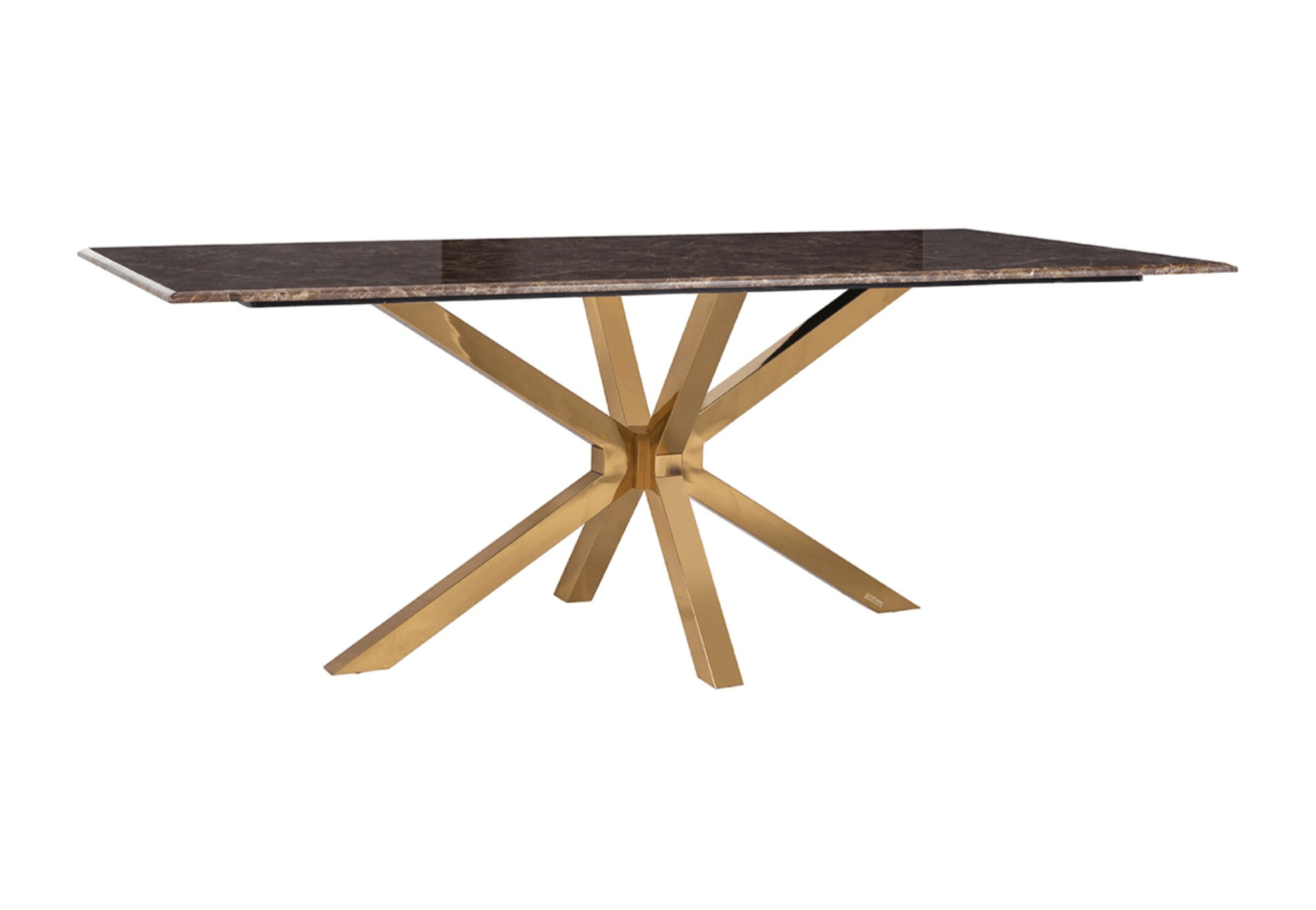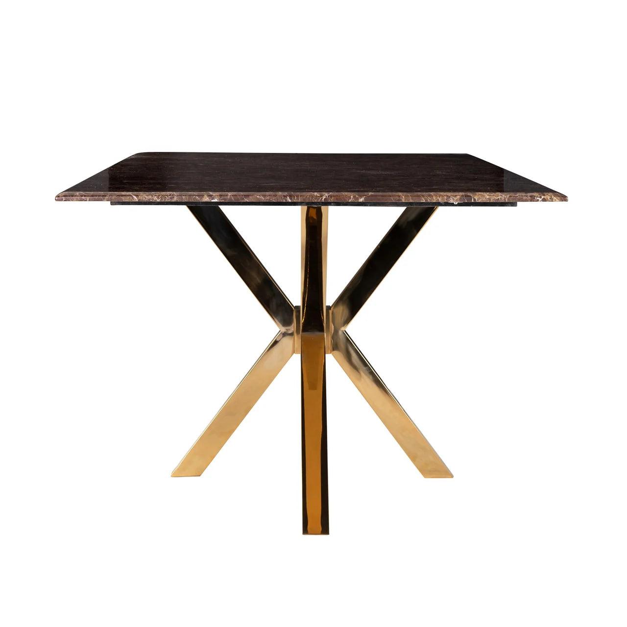 Blat konsoli zdobi piękny konglomerat imitujący marmur Emperador. To materiał, który dodaje meblowi prestiżu i wyjątkowego charakteru. Konglomerat ten ma także praktyczną zaletę, ponieważ jest bardziej odporny na uszkodzenia i łatwiejszy w utrzymaniu niż naturalny marmur.