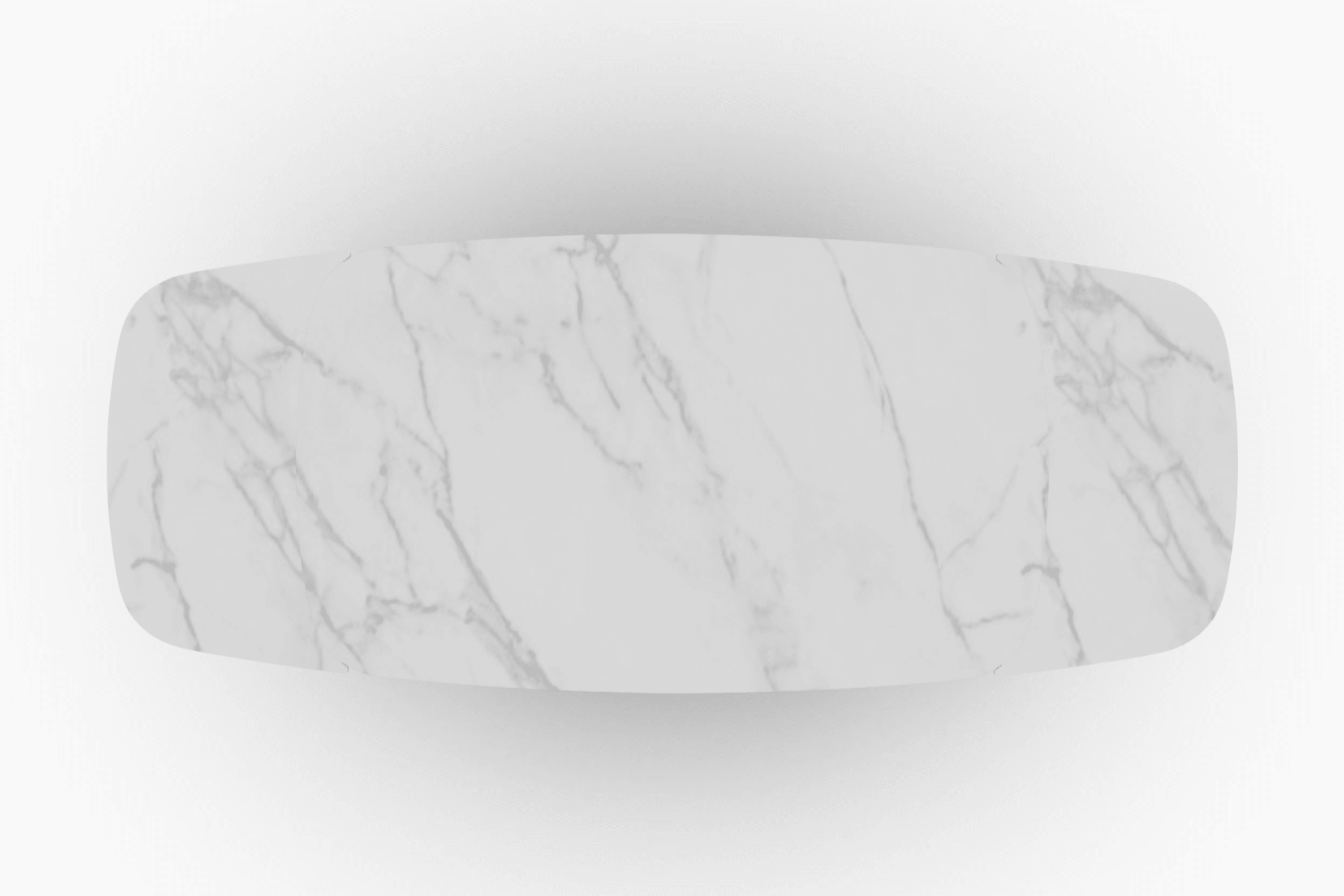 Calligaris -Keramik werden durch Kombinieren einer Porzellansteinscheibe mit geschmittertem Glas erhalten. Das Ergebnis ist eine Oberfläche mit außergewöhnlichem Widerstand gegen Kratzer, Stöcke, Flecken, Temperaturen und Chemikalien. Es ist leicht zu reinigen und vollständig hygienisch: Es absorbiert keine Flüssigkeiten und setzt keine schädlichen Substanzen frei.