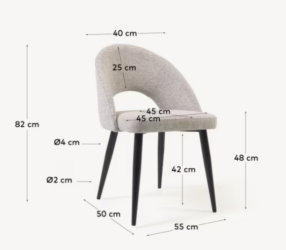 Der Mael- Stuhl ist eine moderne Interpretation des Stils der 1950er Jahre und wurde mit Blick auf alltäglichen Komfort und Eleganz entworfen. Die ergonomische Form, die hohe Rückenlehne und die beige Polsterung schaffen einen gemütlichen Sitzbereich, ideal für große Partys und alltägliche Treffen. Die Easy Clean-Oberfläche sorgt für hohe Fleckenbeständigkeit und einfache Reinigung und Pflege, während die Stahlbeine mit schwarzer Pulverbeschichtung für Stabilität sorgen und den Boden schützen.