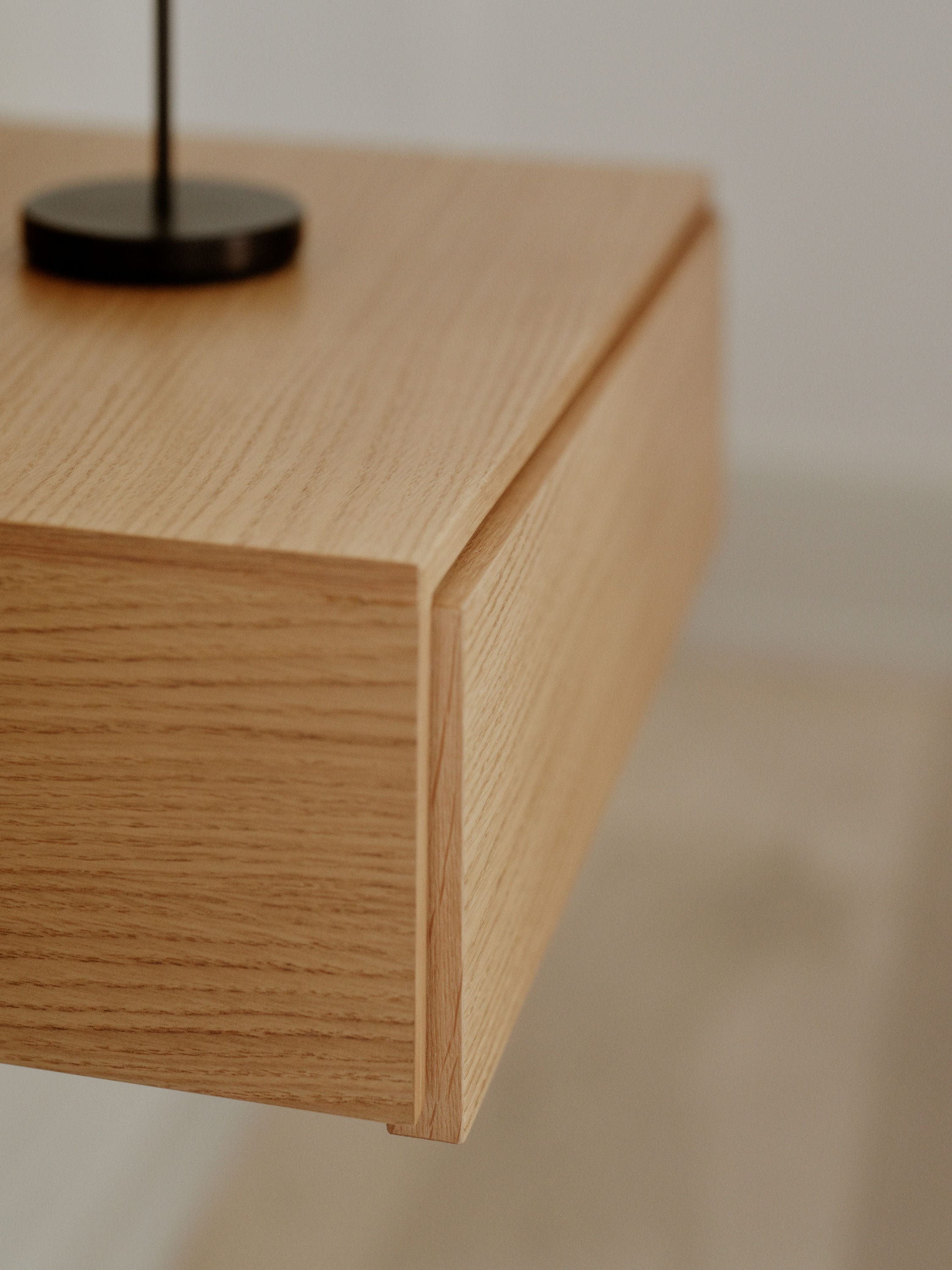 Das Kabinett besteht aus hochwertigem Eichenfurnier und besteht aus zwei Flugzeugen - einem horizontalen, der einen funktionalen Raum zum Speichern von Objekten und vertikaler, die einen subtilen Hintergrund bildet und exponierte Elemente betont. Dank seiner zeitlosen Ästhetik ist es perfekt als unabhängiges Möbelstück und Teil einer größeren Anordnung.