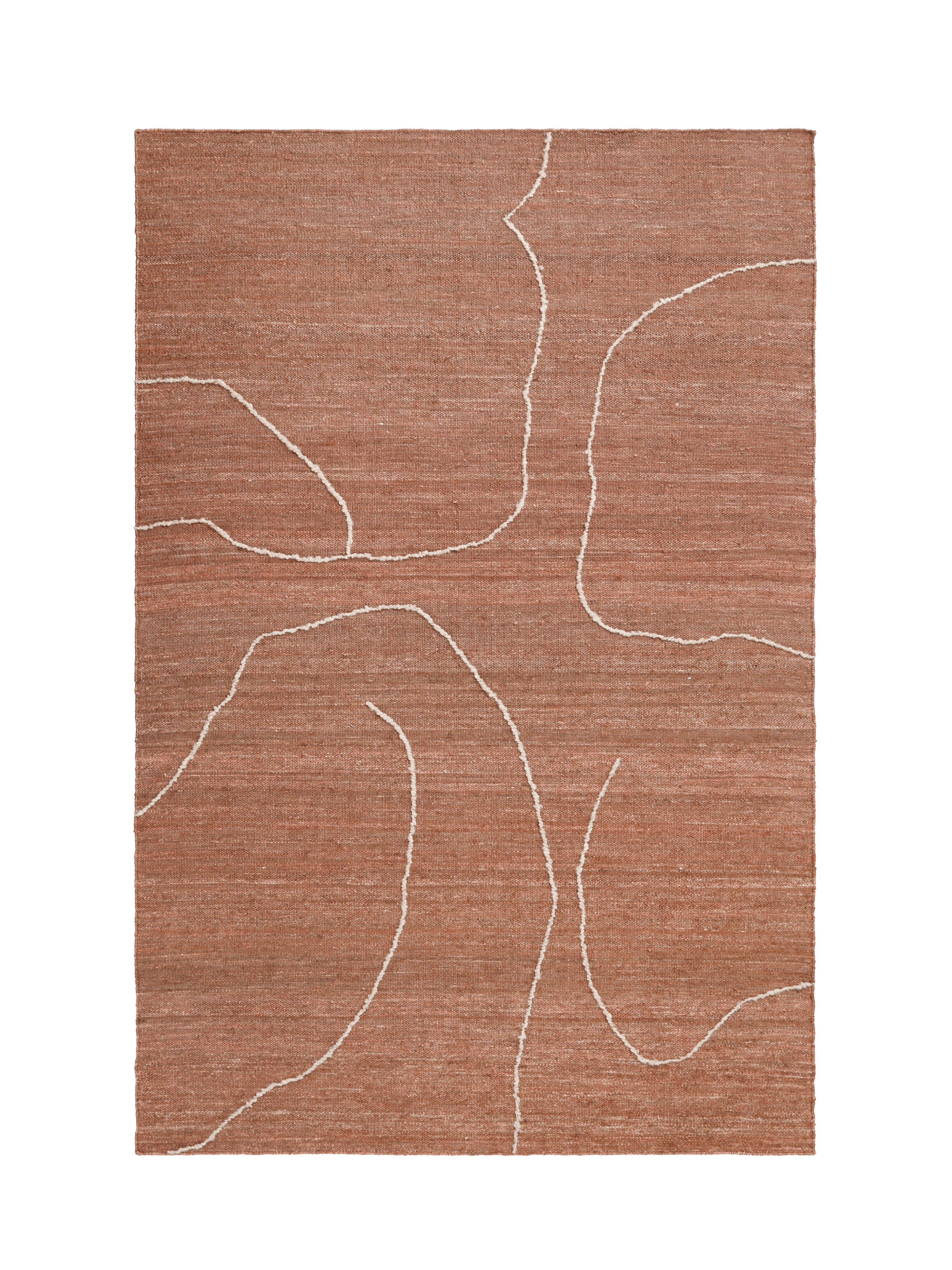 Handgewebter Teppich Gesso ist die perfekte Kombination aus Handwerk und natürlichen Materialien. Hergestellt aus Jute- und Baumwollgarn mit einem Hauch von Wolle, zieht er mit seinem subtilen, abstrakten Muster aus markanten, erhabenen Linien die Blicke auf sich. Ihre weichen, fließenden Formen vermitteln ein Gefühl von Bewegung und Harmonie und fügen sich perfekt sowohl in moderne als auch in gemütliche Innenräume ein.