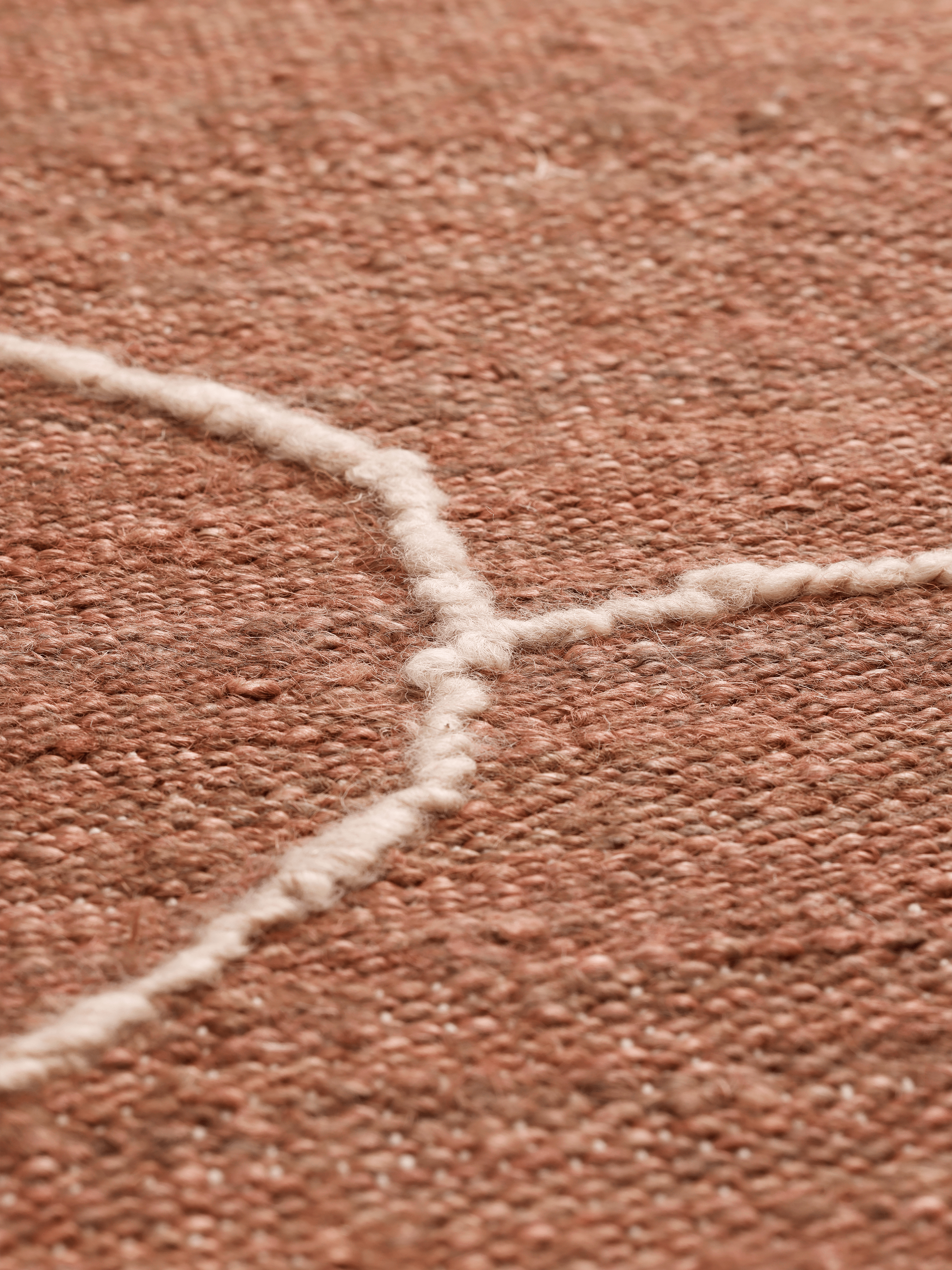Dank der natürlichen Fasern strahlt der Teppich Wärme und Authentizität aus, und seine Textur verleiht der Einrichtung Tiefe. Er eignet sich hervorragend für das Wohnzimmer, das Schlafzimmer oder das Homeoffice und bringt Ruhe sowie einen angenehmen handwerklichen Akzent in Ihren Raum.