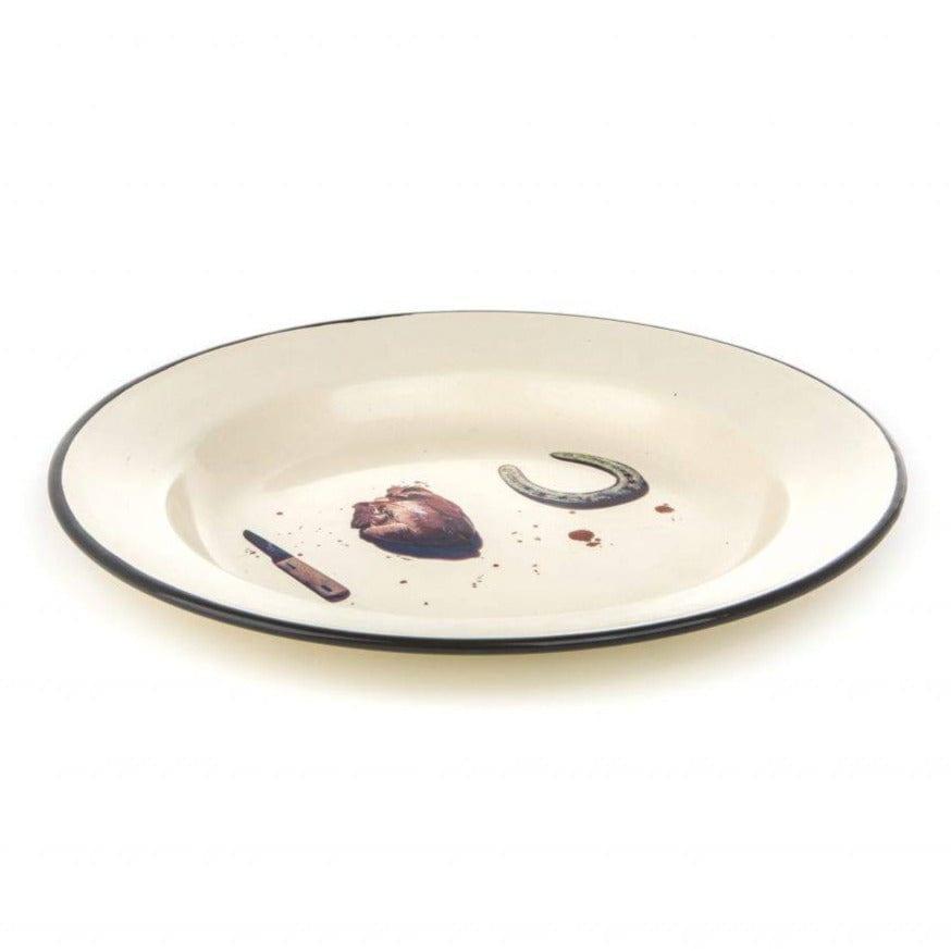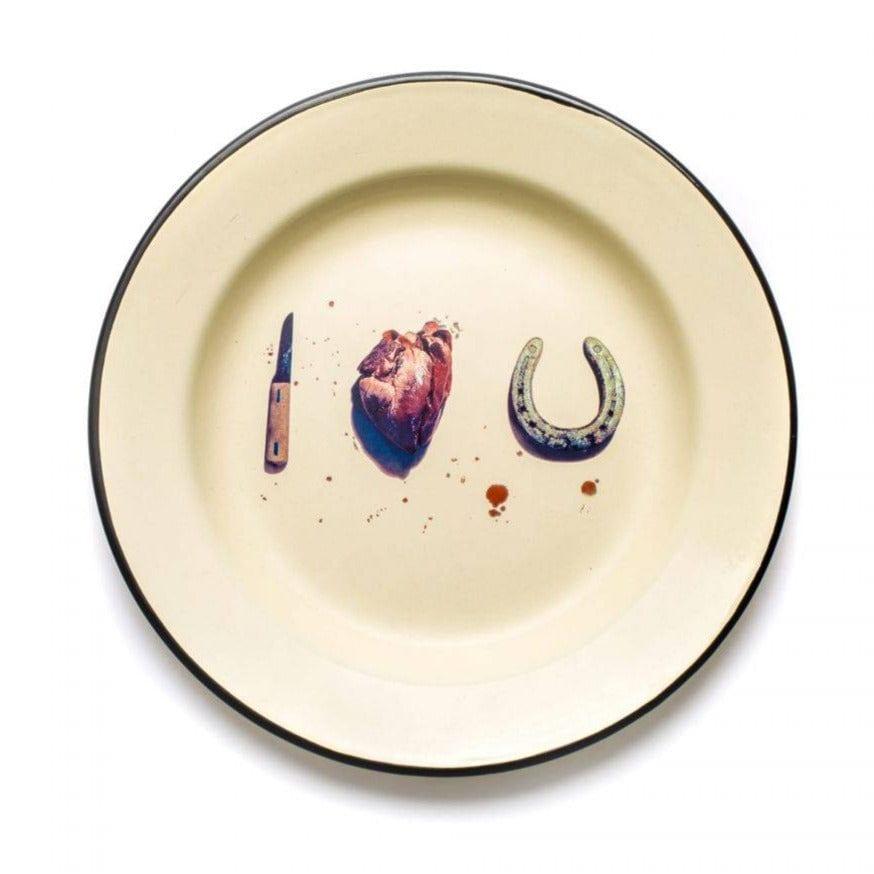 Ich liebe dich ist Metall, emaillierter Teller Kombinieren Sie das ursprüngliche Design und die Funktionalität. Dies ist Teil der Retro -Style -Serie, die mit schwarzem Humor gesäumt ist - typisch für die italienische Marke Seletti. Unbewusste Fotos aus dem Avangard Toileletpaper -Magazin erzeugen eine lustige Collage, die jeden Gast aufmerksam macht.