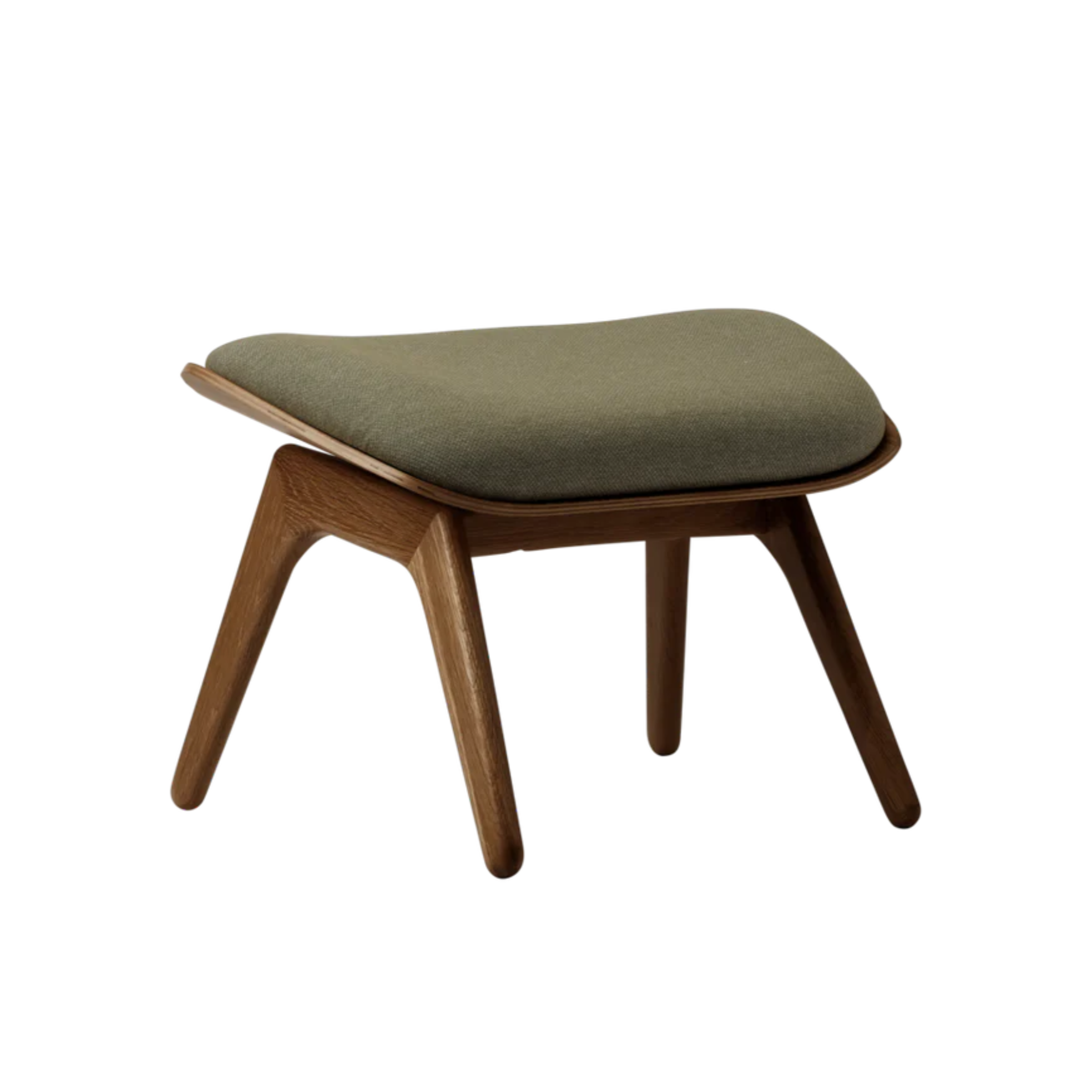 Fußhocker READER in Salbeigrün mit dunklem Eichenfuß