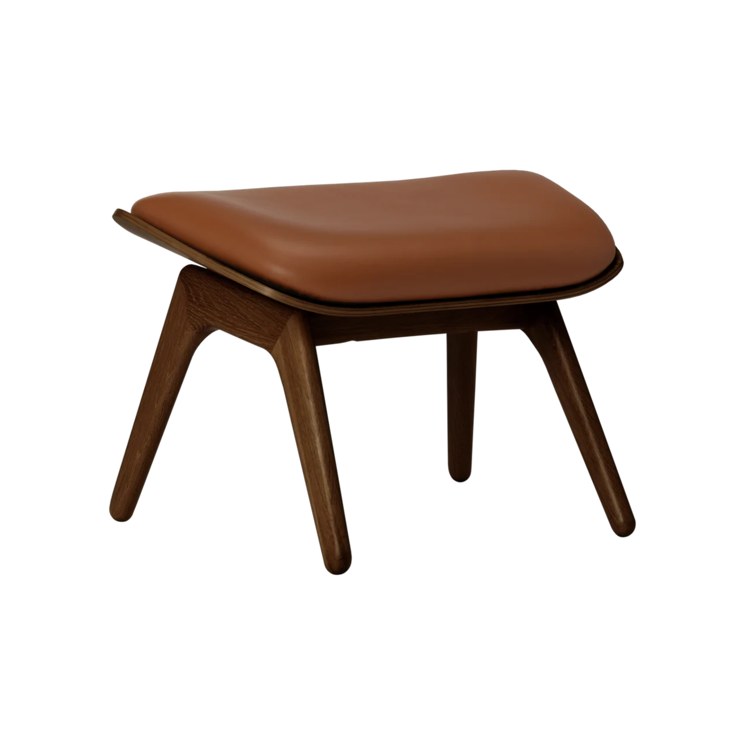 Fußhocker READER aus cognacfarbenem Leder mit dunklem Eichenfuß