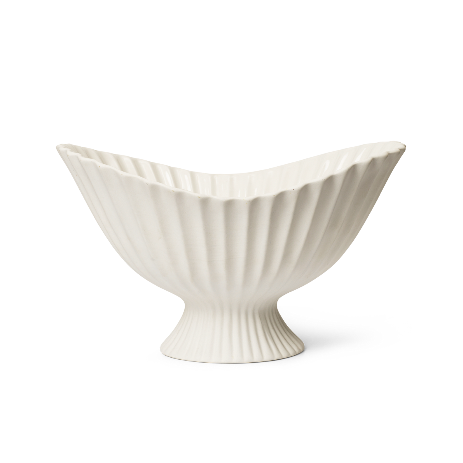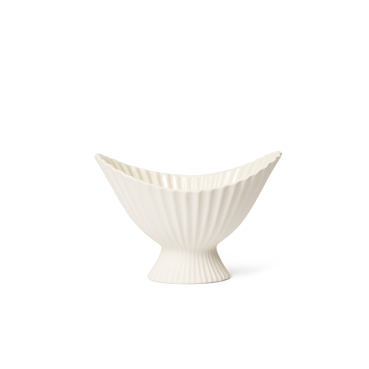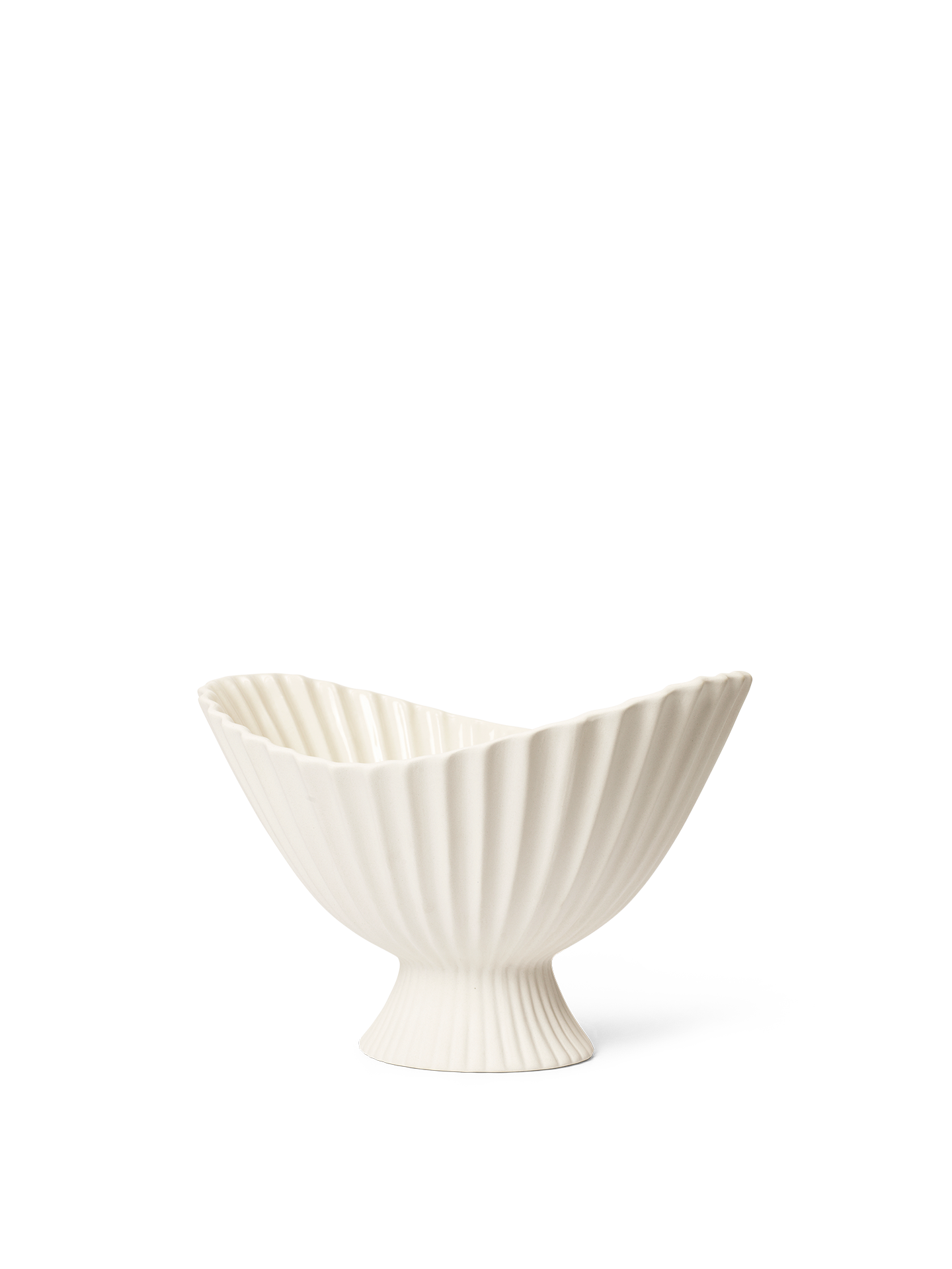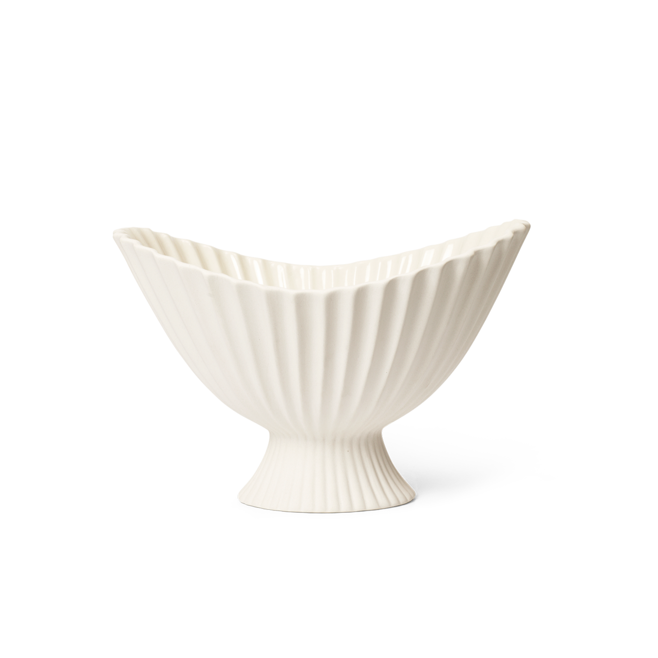 Schüssel Fountain ist eine elegante Keramikdekoration mit einem skulpturalen Charakter und einer subtilen Faltenform, die von der klassischen Form der Brunnen inspiriert ist. Seine erhöhte, aufwandend gestaltete Form zieht sofort Aufmerksamkeit auf sich und führt ein Element des ausgefeilten Designs in das Innere ein. Die äußere matte Oberfläche steht im Gegensatz zu dem glänzenden, transparenten inneren Finish, was zusätzliche Eleganz und Praktikabilität verleiht.