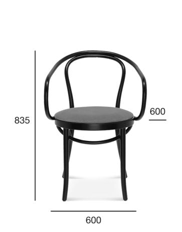 Dank der einzigartigen Technik des manuellen Holzbiegens zeichnet sich der Stuhl B-9 durch seine außergewöhnliche Haltbarkeit und Widerstandsfähigkeit gegen Beschädigungen aus. Es handelt sich um ein Möbelstück mit starker Identität, das Handwerkskunst mit Ästhetik verbindet und sich hervorragend für Wohn-, Café- und Geschäftsräume eignet.