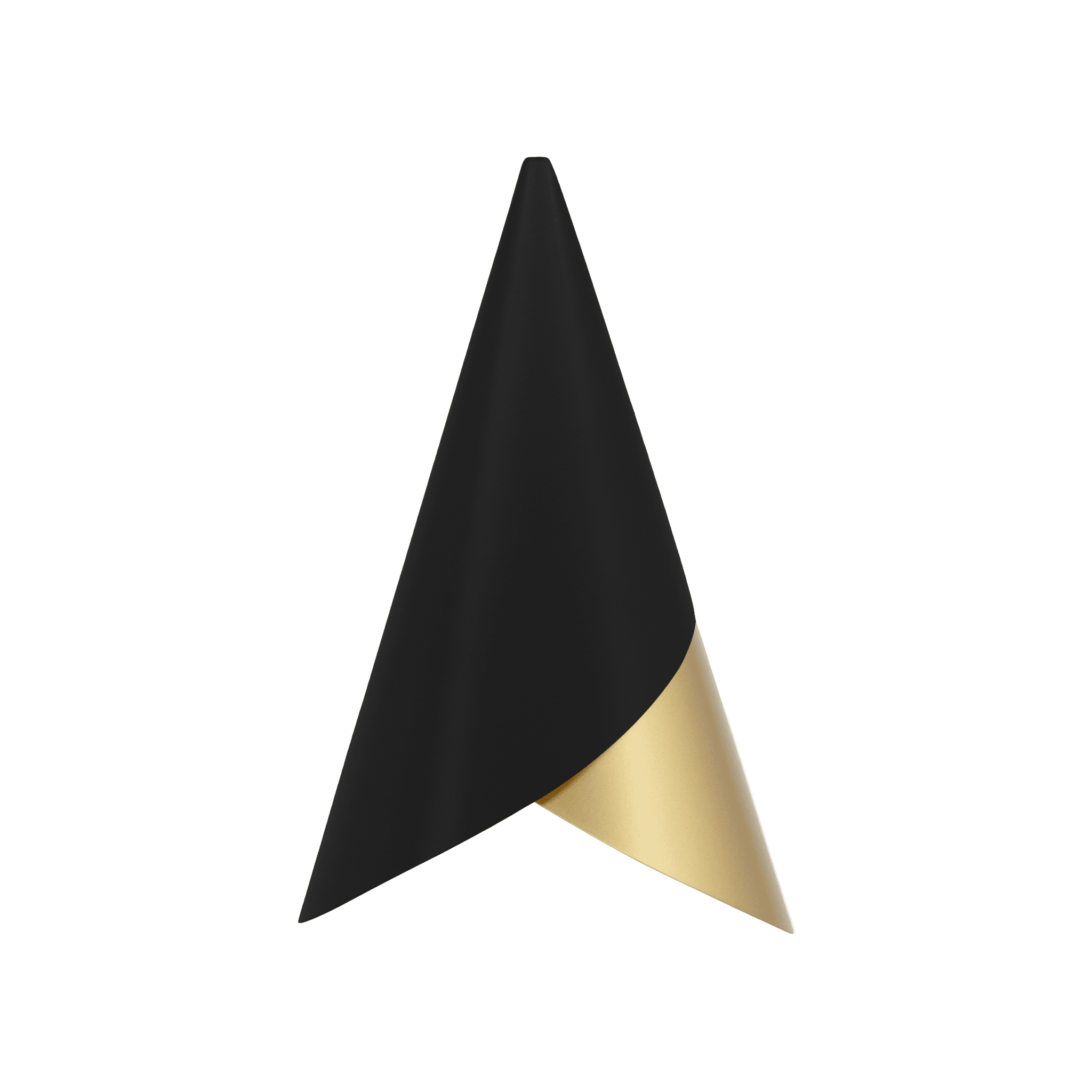 Kornett zu einzigartiger Lampenschirm, was Einfachheit und Funktionalität kombiniert und die Essenz der skandinavischen Eleganz verleiht. Es besteht aus zwei subtil geformten Metallkegeln, die an Stellen gedreht und umgewandelt werden können, wodurch Sie Licht und Erscheinungsbild für Ihre Vorlieben erzeugen können.