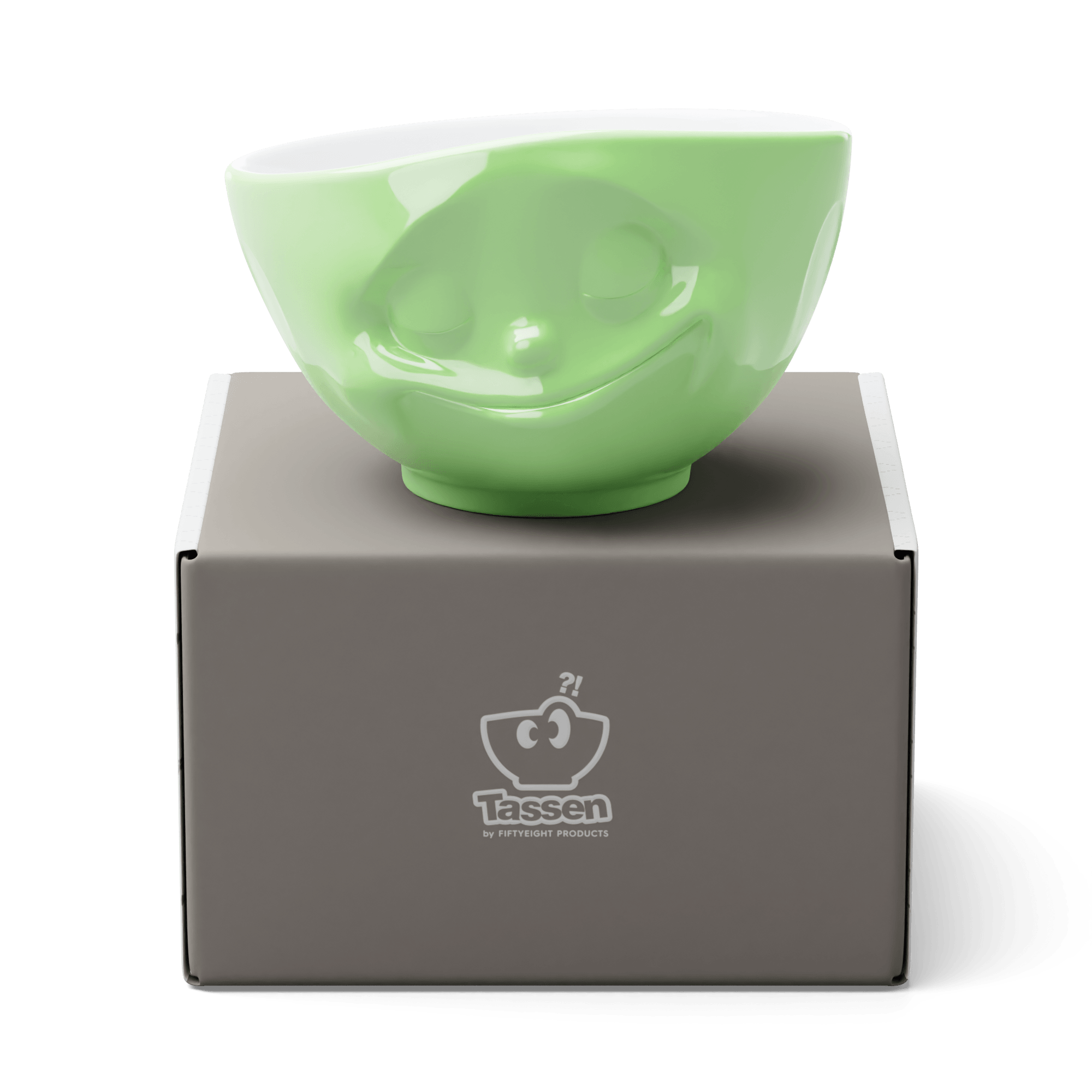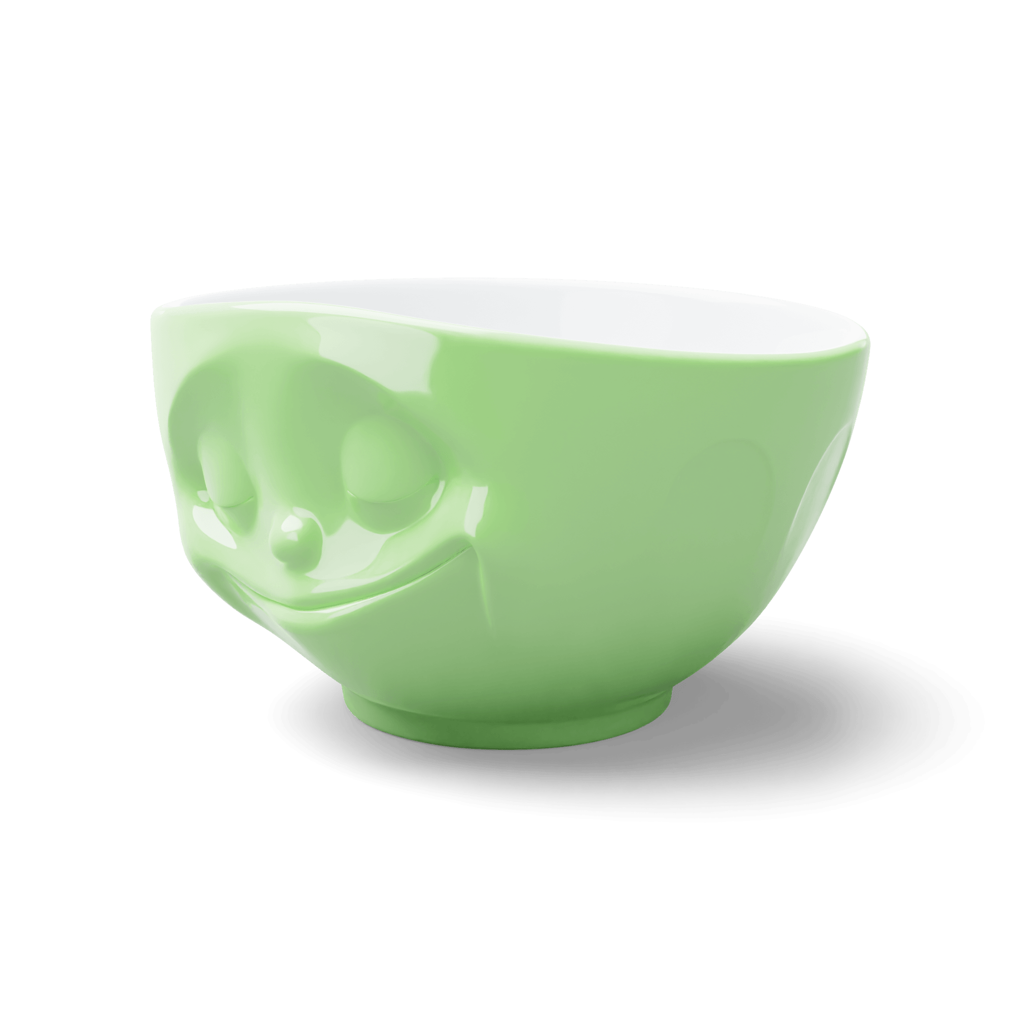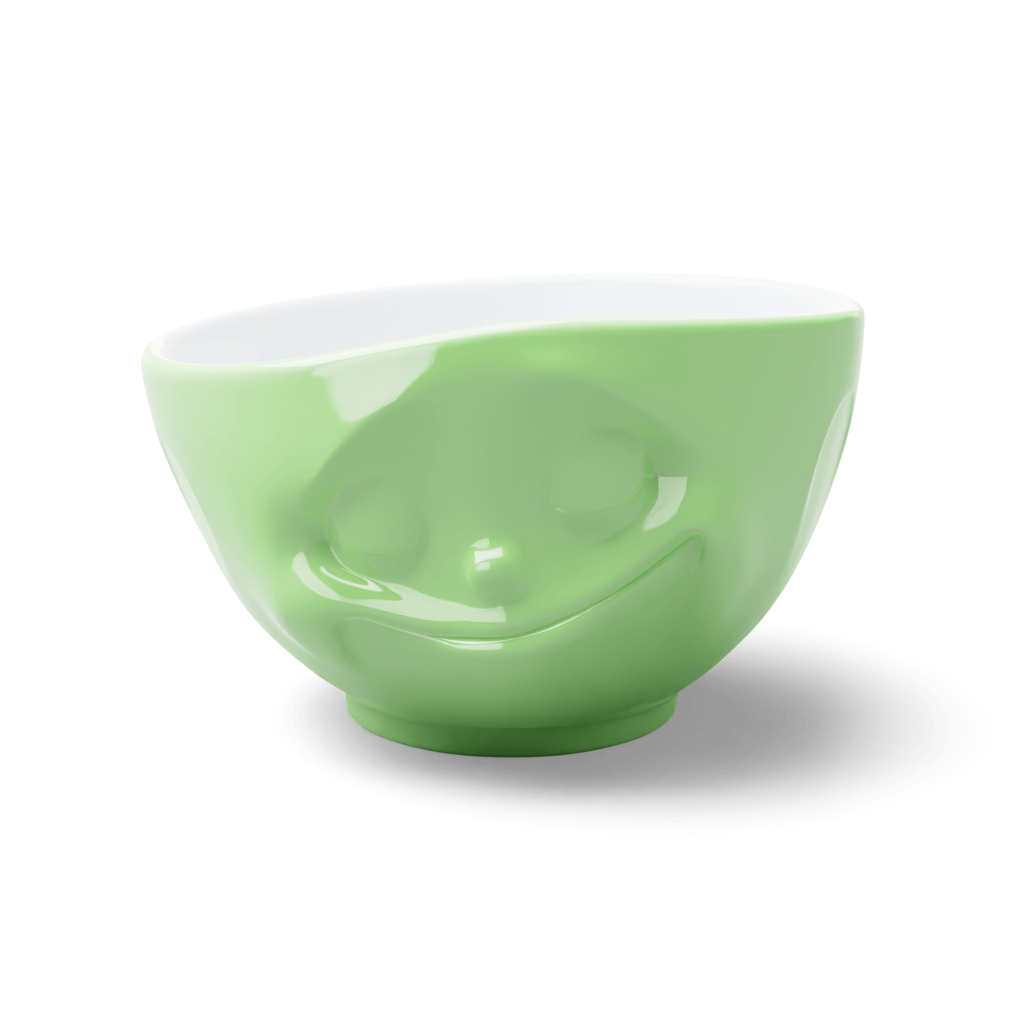 Glückliche hellgrüne Schüssel mit einem weißen Innenraum