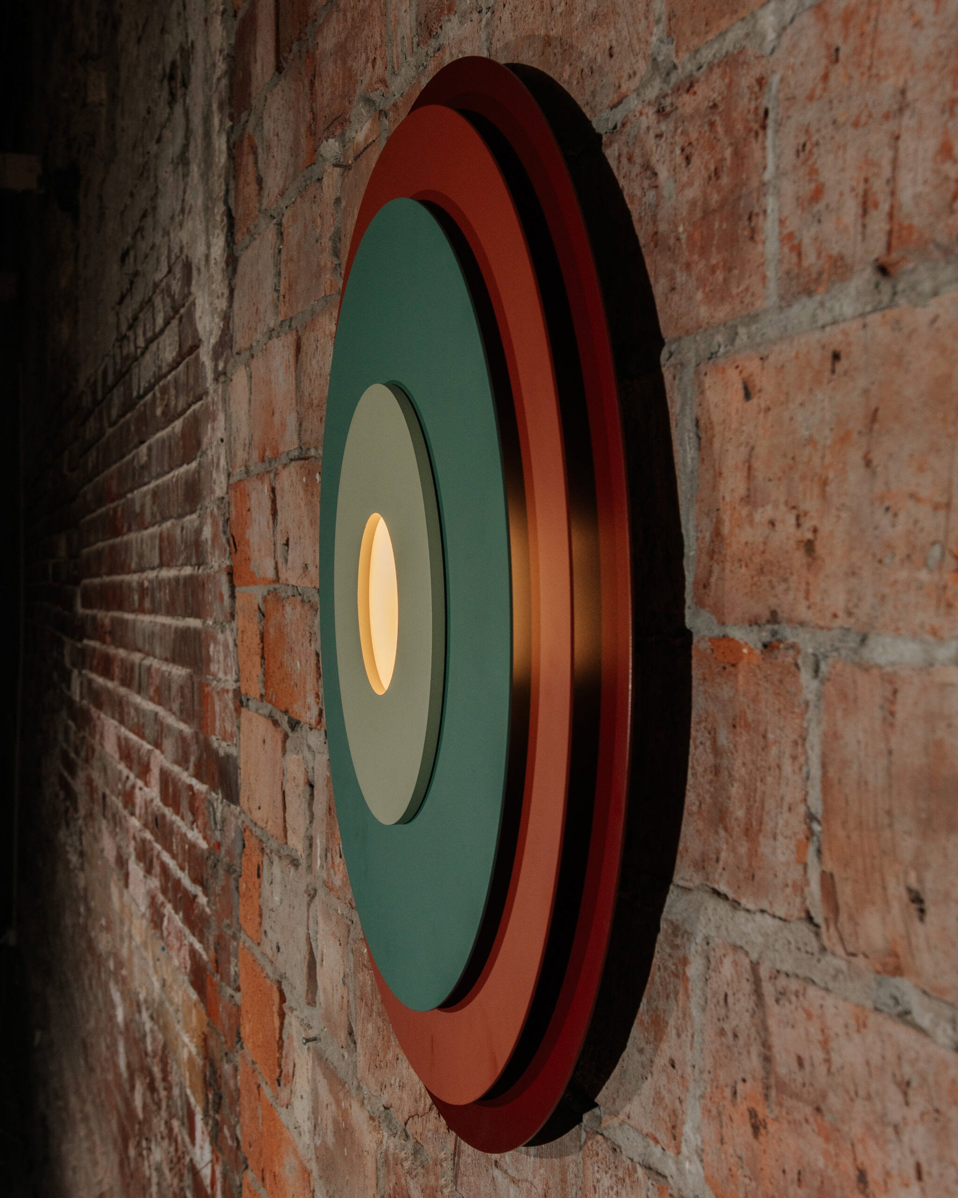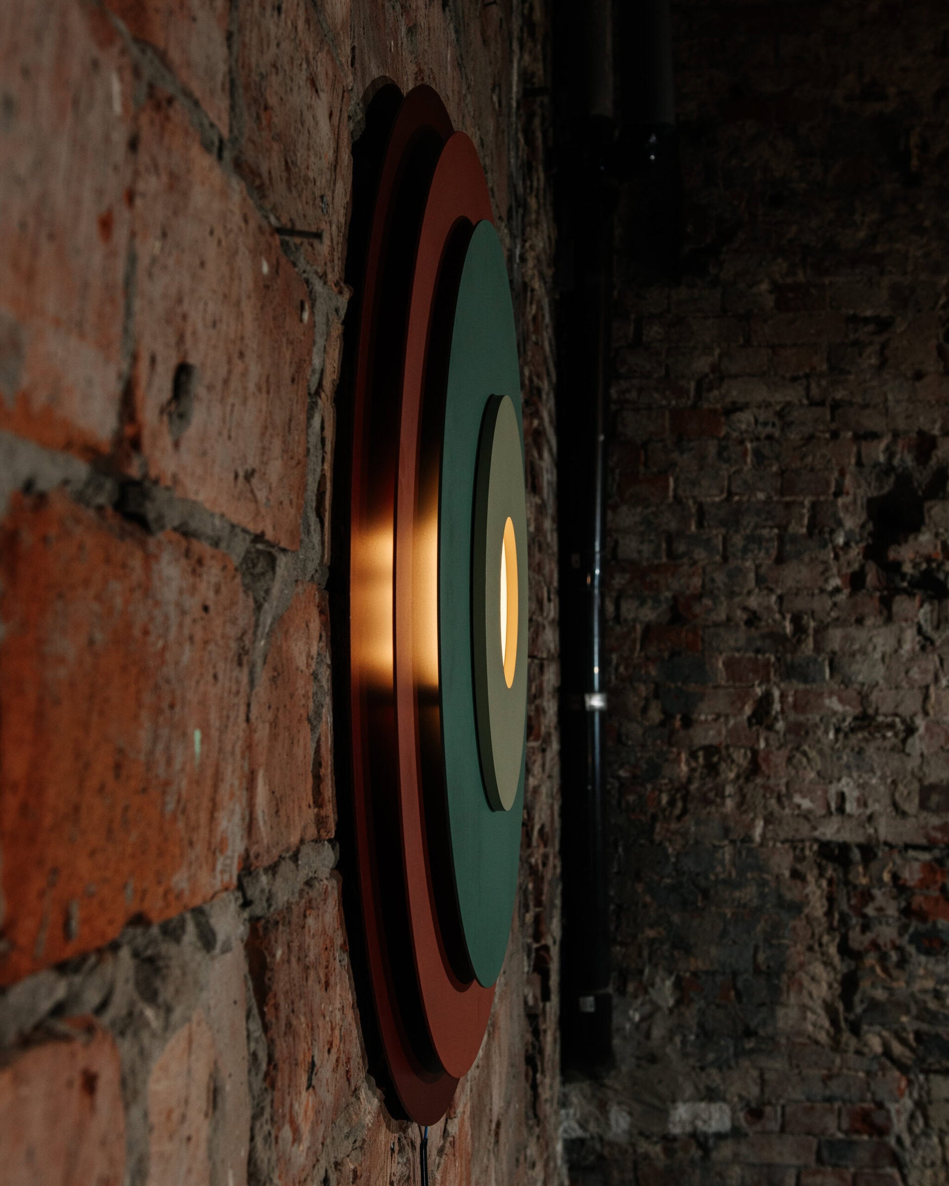 Die Wandleuchte Afangora ist eine Kombination aus Geometrie, Farbe und Licht. Inspiriert von der Arbeit Wojciech Fangors , fällt die Wandleuchte mit ihrer dynamischen, konzentrischen Kreiskomposition auf. Der dreidimensionale Effekt und das subtile Licht machen es nicht nur zu einer Lichtquelle, sondern auch zu einem faszinierenden Dekorationsobjekt – sowohl an der Wand als auch an der Decke.