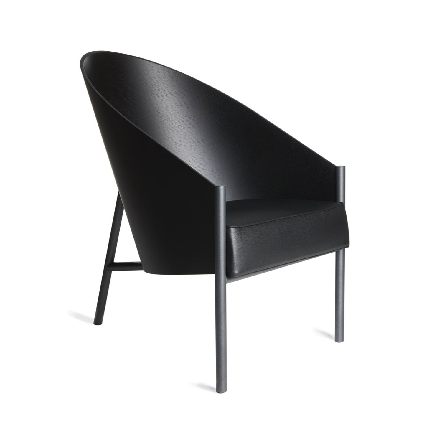 Pratfall Sessel schwarzes Leder mit einer Stahlbasis