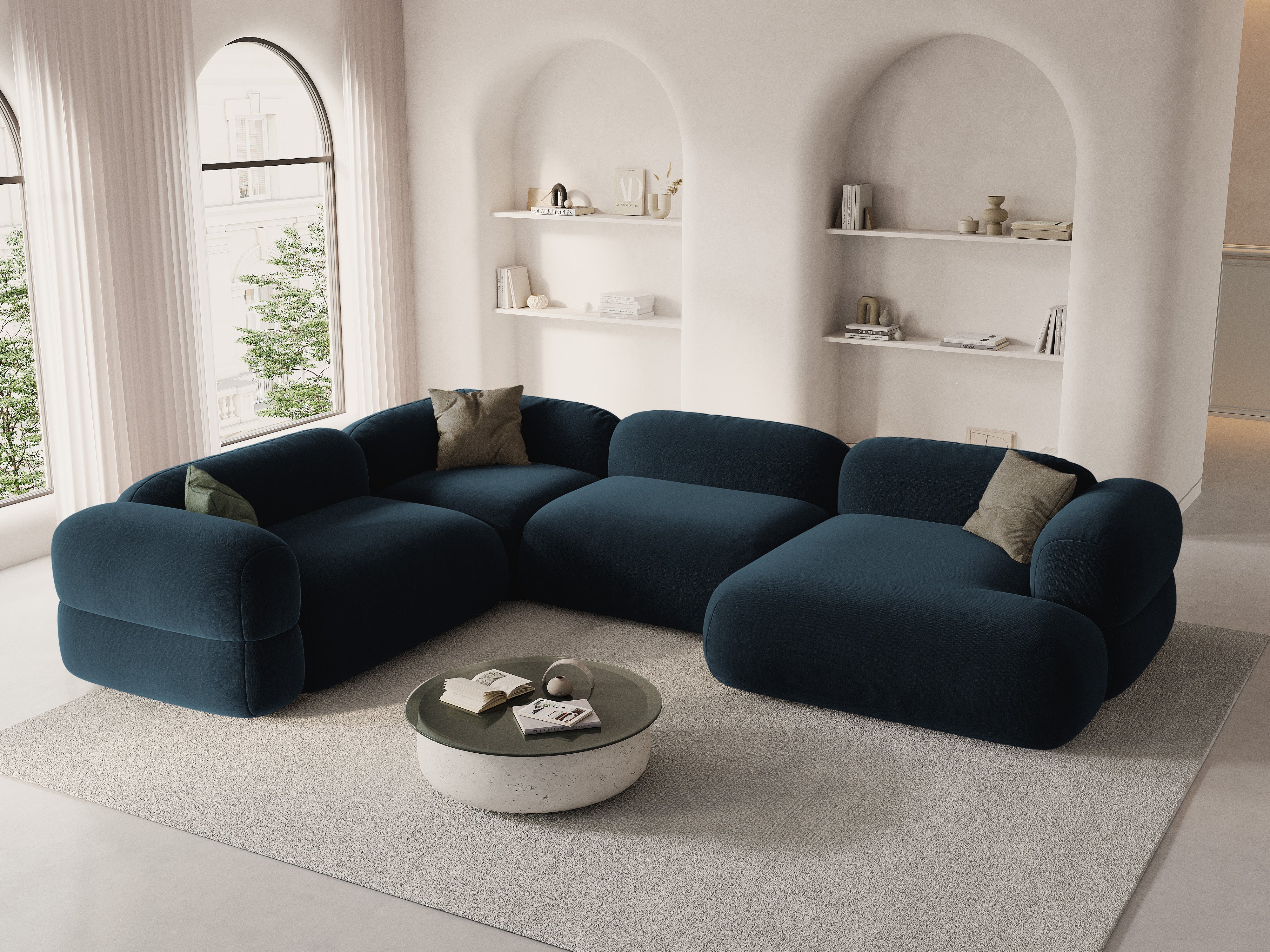 Samt-U-förmiger Ecksofa links ROGER petrolblau