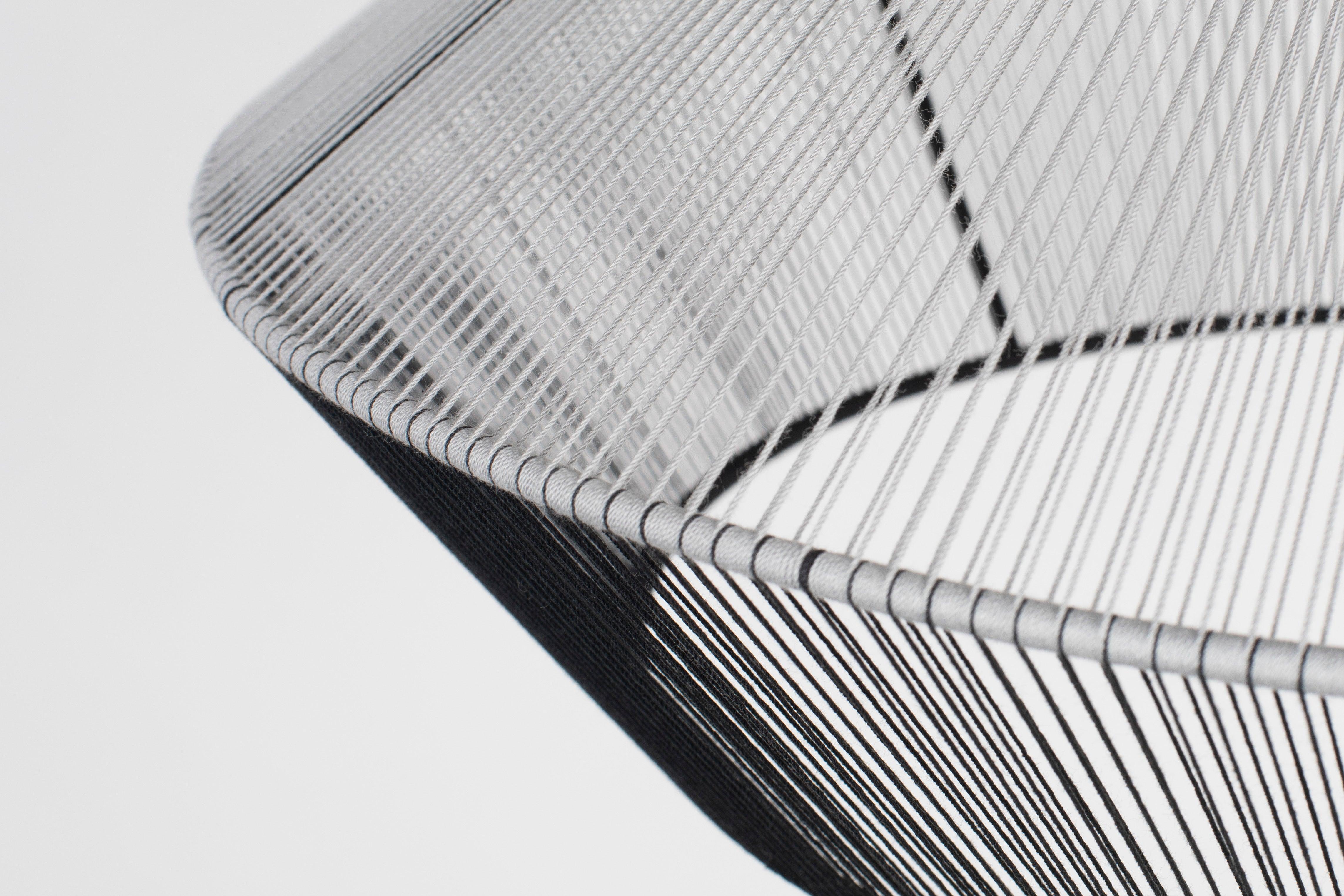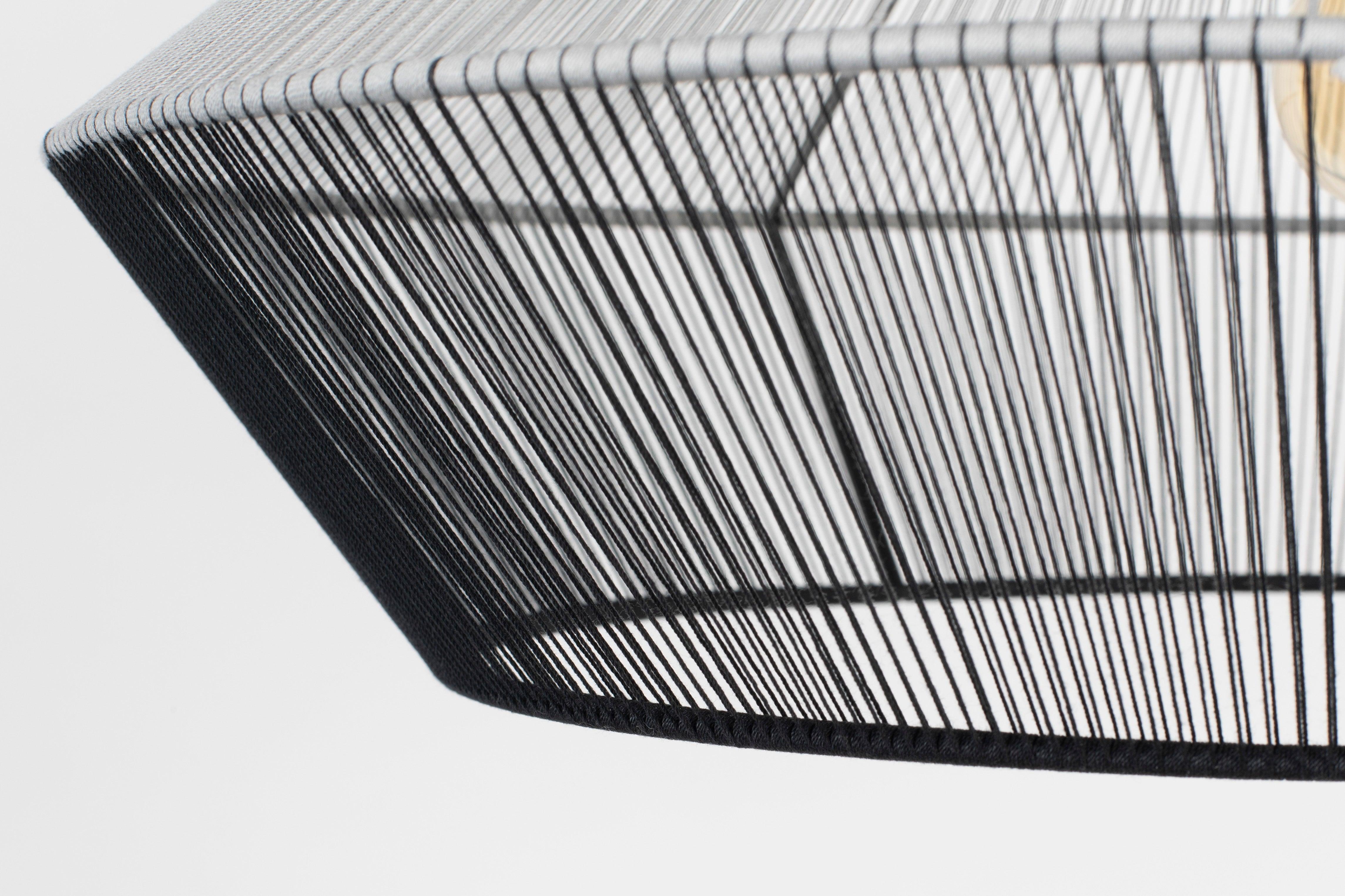 Dünne Baumwollfäden umgeben einen Metallrahmen und erzeugen einen hellen Nebel um den strahlenden Kern. Die Wicklungstechnik und genau gewebte Fäden sorgen für die Schwerelosigkeit der Bindung. Das Lampe, die eine verträumte, märchenhafte Stimmung verursacht, erfüllt den Raum mit einem magischen Glanz.