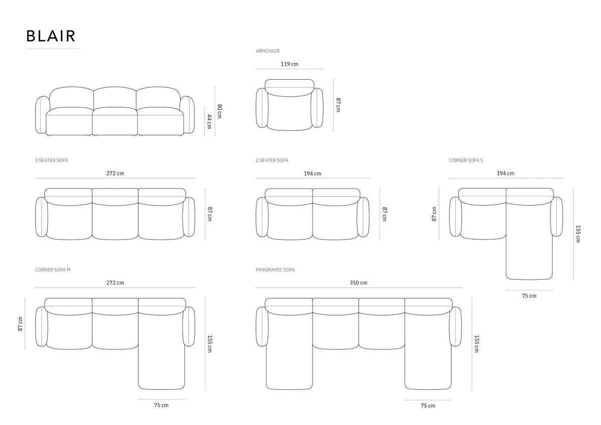 Niedrige, charmante Rückenlehne sind für unbegrenzte Entspannung förderlich, um den vollen Komfort zu gewährleisten. Tiefe Sitze mit milden Konturen sind die perfekte Höhe und reichlich in weichem Schaum. Die Einzigartigkeit dieser Linie besteht in einem konsequenten Streben nach gerundeter Ästhetik, von Sitzen bis hin zu Armlehnen. Blair ist wirklich einzigartig. Es wird Ihren Stil betonen und dem Innenraum einen modernen und leicht verträumten Charakter verleihen.