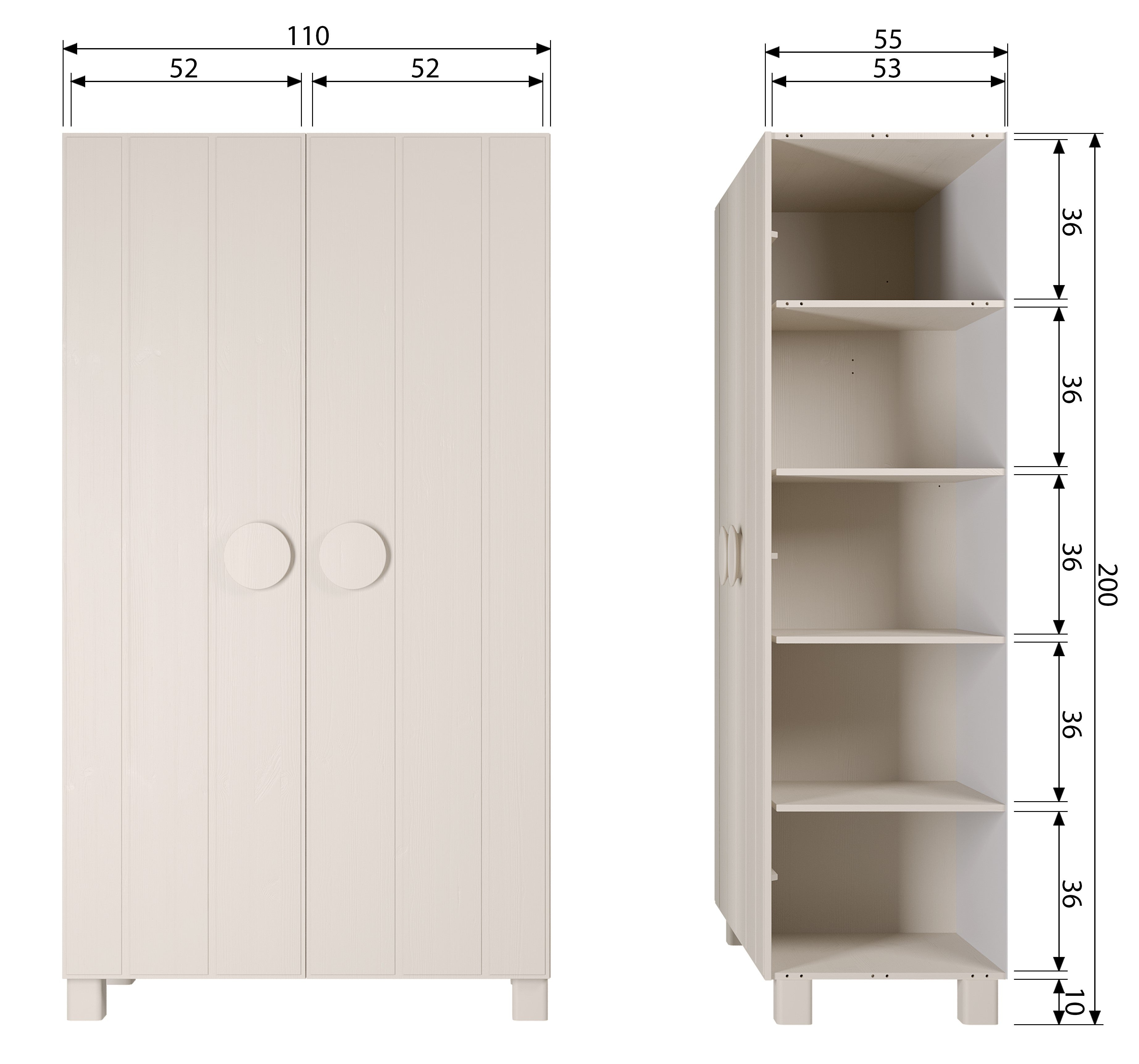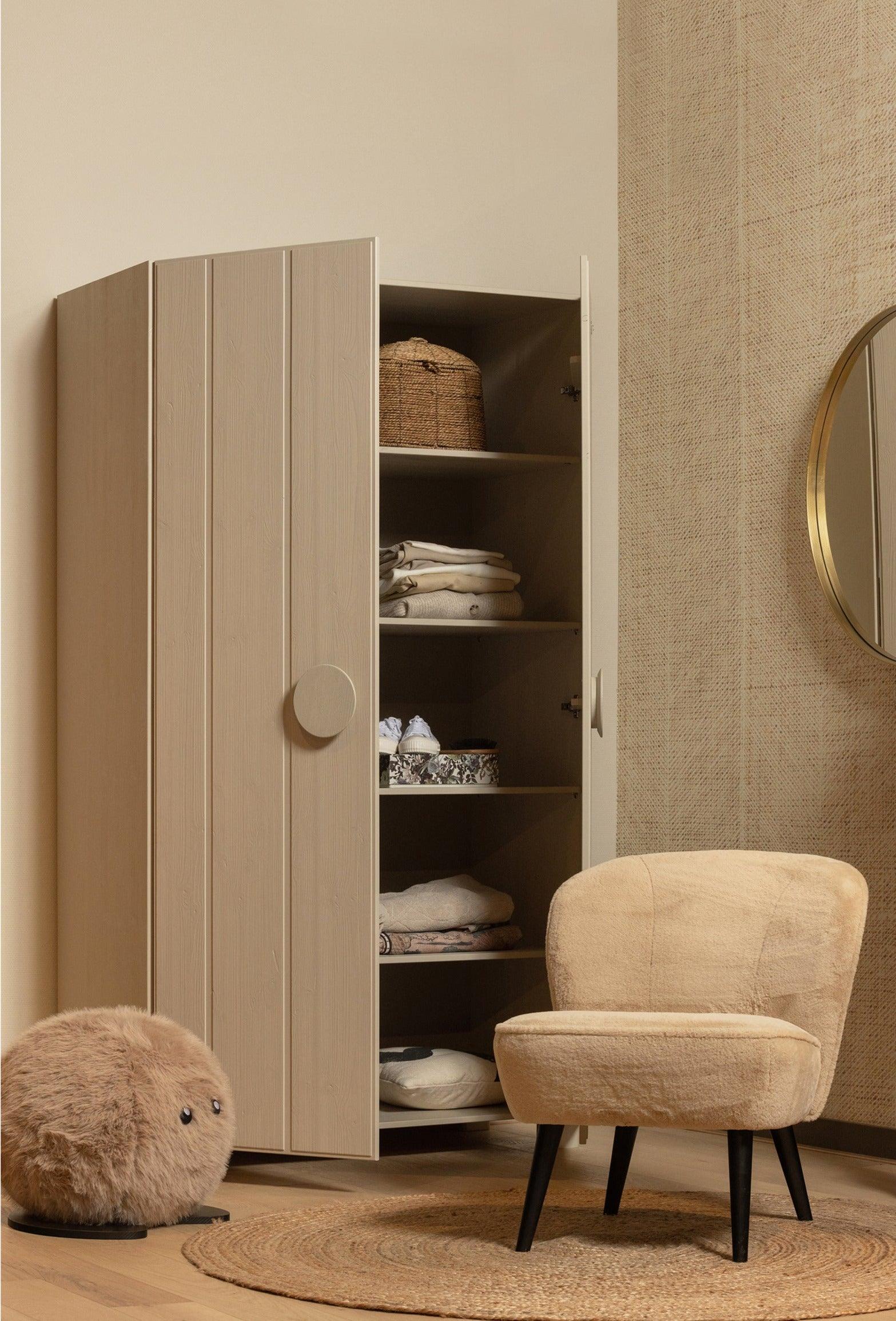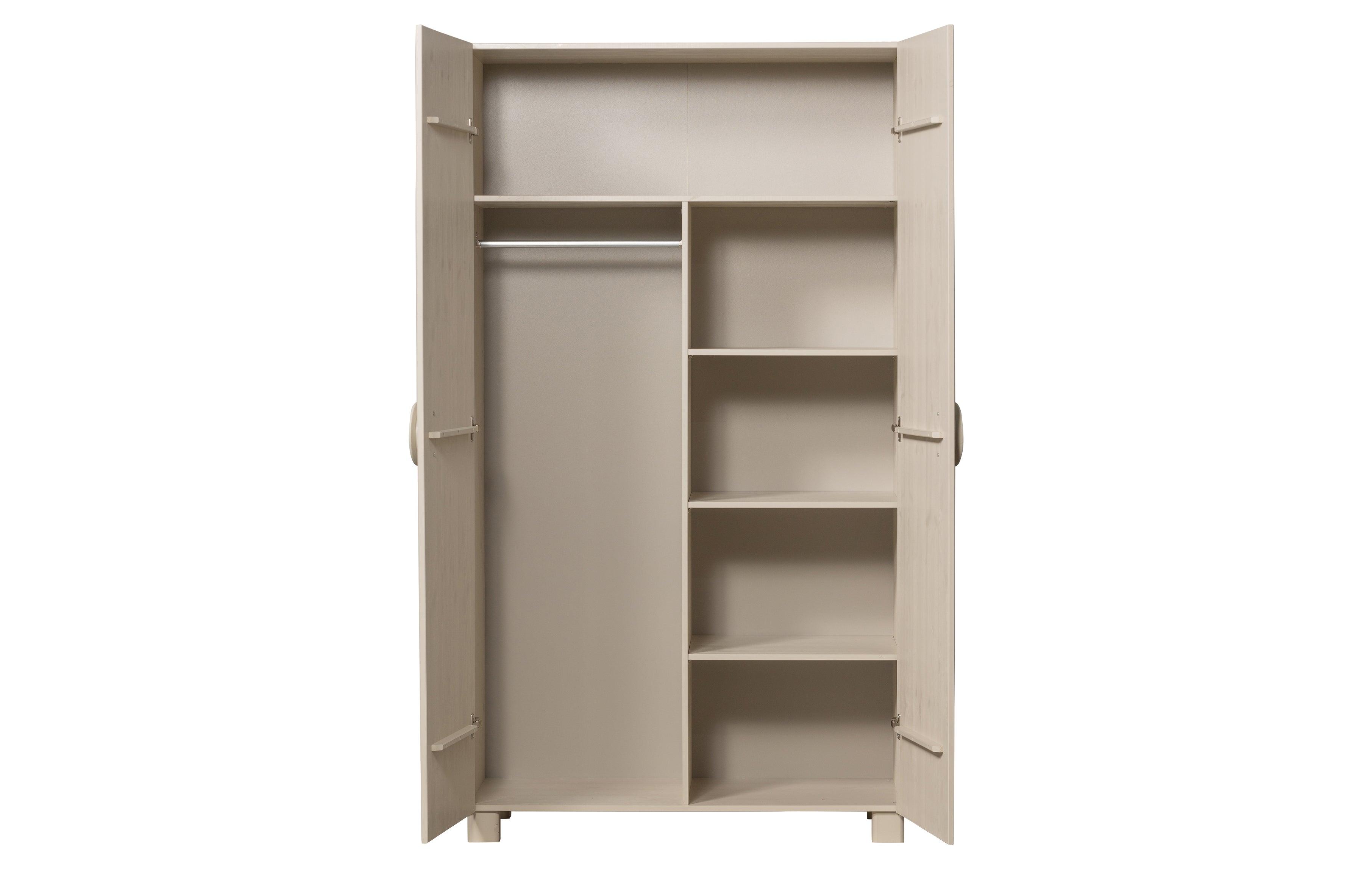 Noah mit seinem natürlichen Kiefernschatten ist wie warmes Sonnenlicht und fällt an einem Sommernachmittag durch das Fenster. Jedes Brett, jeder Knoten in Holz erzählt seine Geschichte und führt eine Note der Natur und einen wilden Wald in den Raum ein, in dem einst Holz wuchs. Hinter der festen Tür Kleiderschränke Noah, es gibt eine mysteriöse Welt voller Schätze. Ist es Lieblingskleidung, geliebte Bücher oder mysteriöse Spielzeugkästen - alles findet seinen Platz in den mysteriösen Innenräumen dieser Kiefernkiste. Delikate Griffe, die die Tür dekorieren, sind wie magische Schlüssel zum Königreich der Träume. Mit einem sanften Zug öffnet sich die Tür und enthüllt alle im Inneren versteckten Schätze.