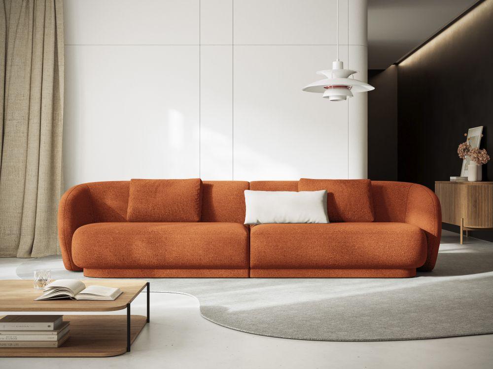 Sofa für vier Personen Camden kombiniert einen anspruchsvollen Stil und einen beispiellosen Komfort. Camden beeindruckt mit seinen runden Formen, die dem Innenraum Delikatesse und Eleganz verleihen. Dies ist eine perfekte Kombination aus Funktionalität und Ästhetik. Abgerundete Rückenlehne und Kissen sorgen für eine beispiellose Entspannung nach einem langen Tag.
