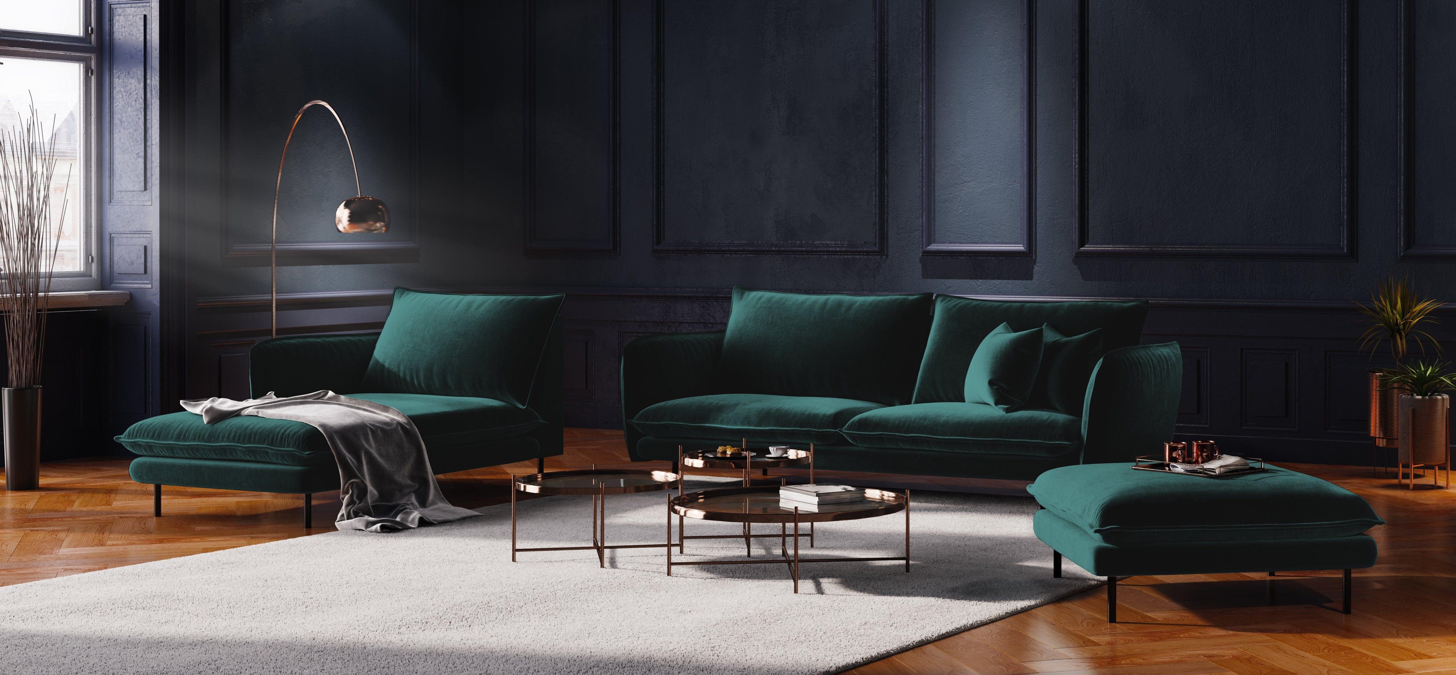 Sofa aksamitna 4-osobowa VIENNA morski z czarną podstawą Cosmopolitan Design    Eye on Design