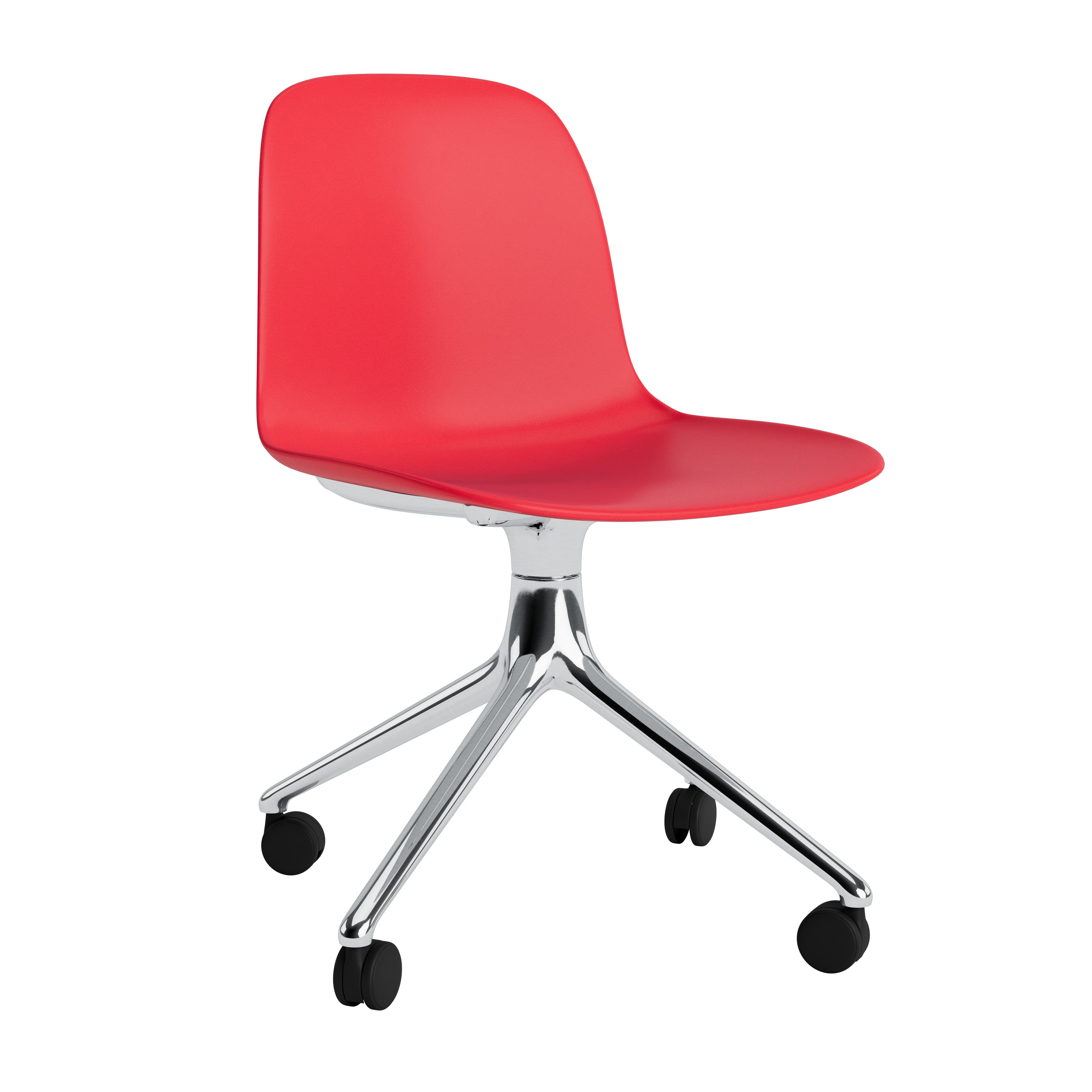 4W roter Bürostuhl rot mit einer Aluminiumbasis auf Rädern