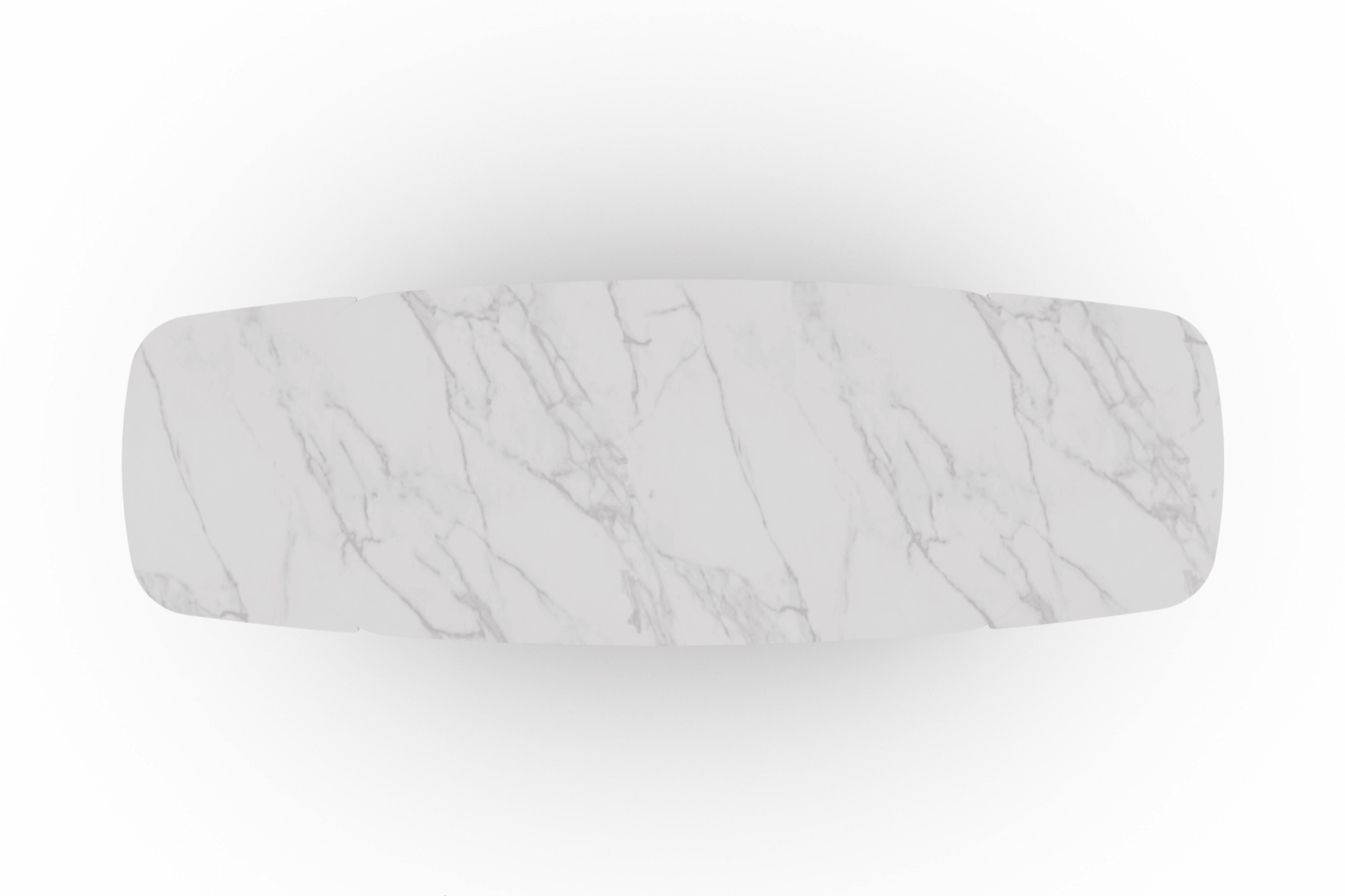 Calligaris -Keramik werden durch Kombinieren einer Porzellansteinscheibe mit geschmittertem Glas erhalten. Das Ergebnis ist eine Oberfläche mit außergewöhnlichem Widerstand gegen Kratzer, Stöcke, Flecken, Temperaturen und Chemikalien. Es ist leicht zu reinigen und vollständig hygienisch: Es absorbiert keine Flüssigkeiten und setzt keine schädlichen Substanzen frei.