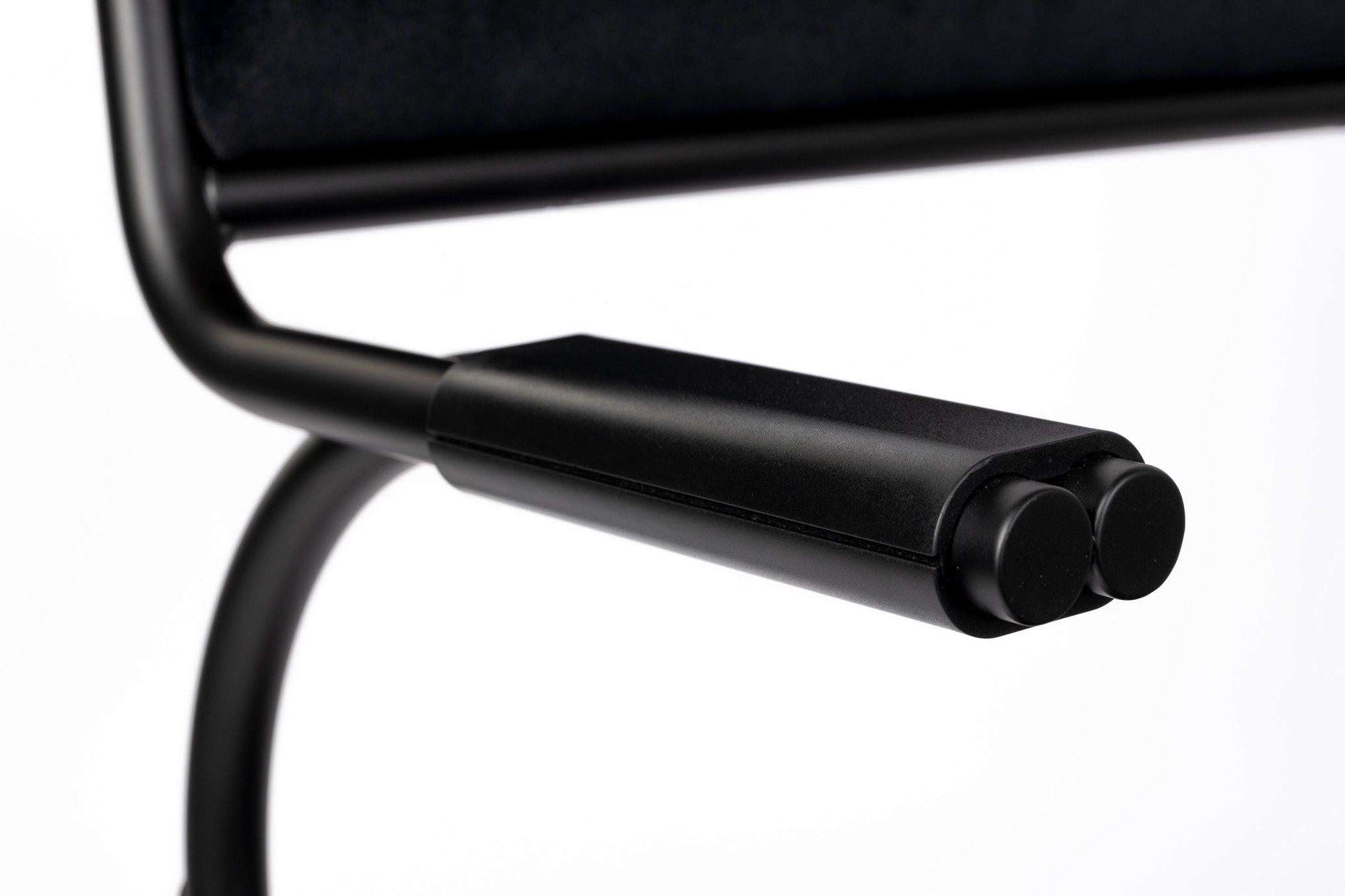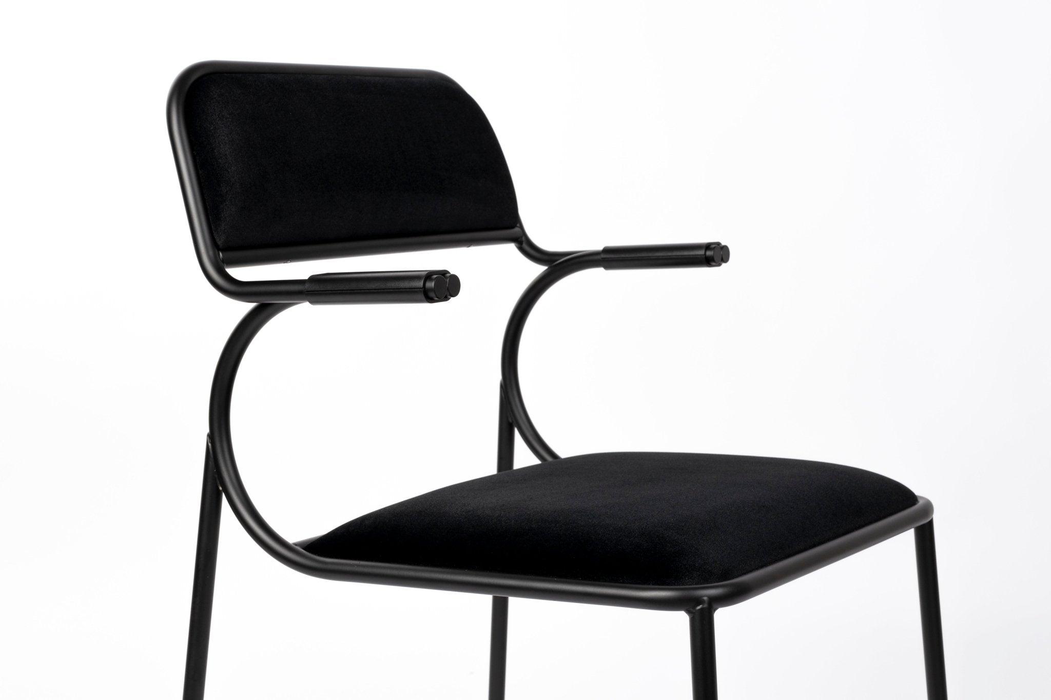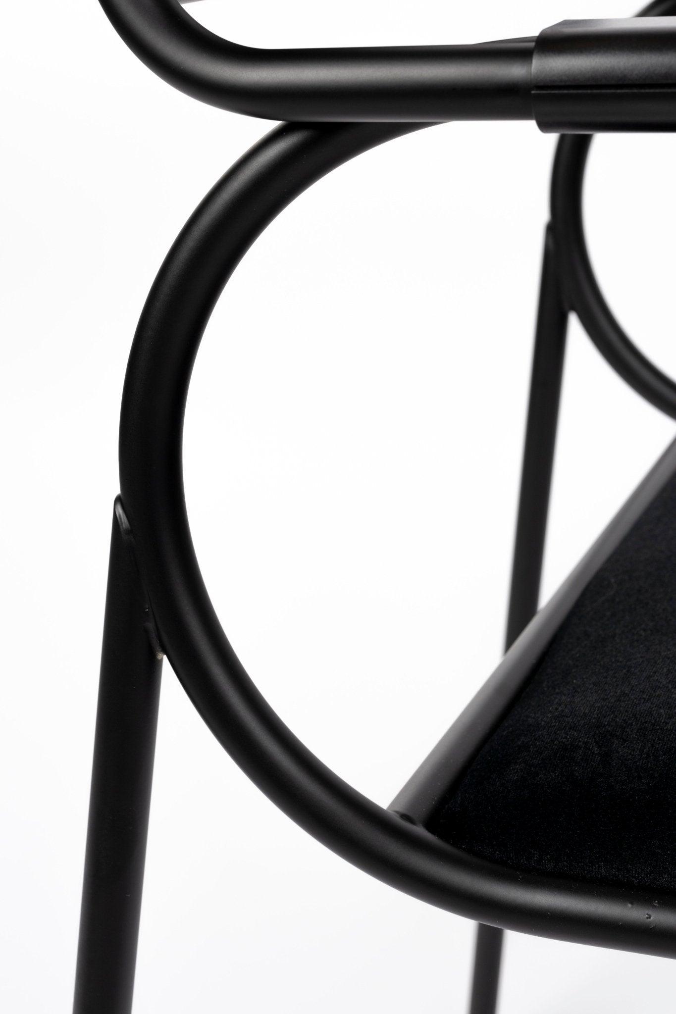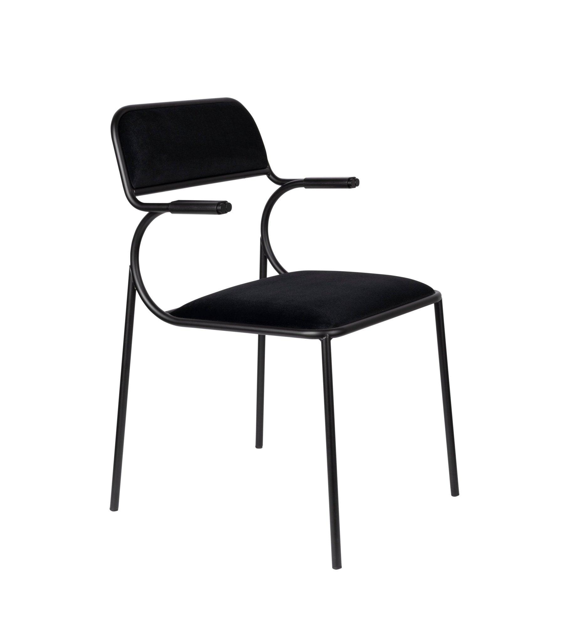 Alba bedeutet Sonnenaufgang auf Italienisch, was sich auf den gekrümmten Rahmen bezieht. Verbringen Sie den Morgen am Esstisch und genießen Sie den kommenden Tag in The Unique Stuhl Alba. Der matte schwarze Metallrahmen mit ausdrucksstarken gekrümmten Armlehnen bietet eine komfortable Unterstützung. Der Sitz und die Rückenlehne sind mit einem weichen Samt gepolstert, sorgen für einen hervorragenden Komfort.