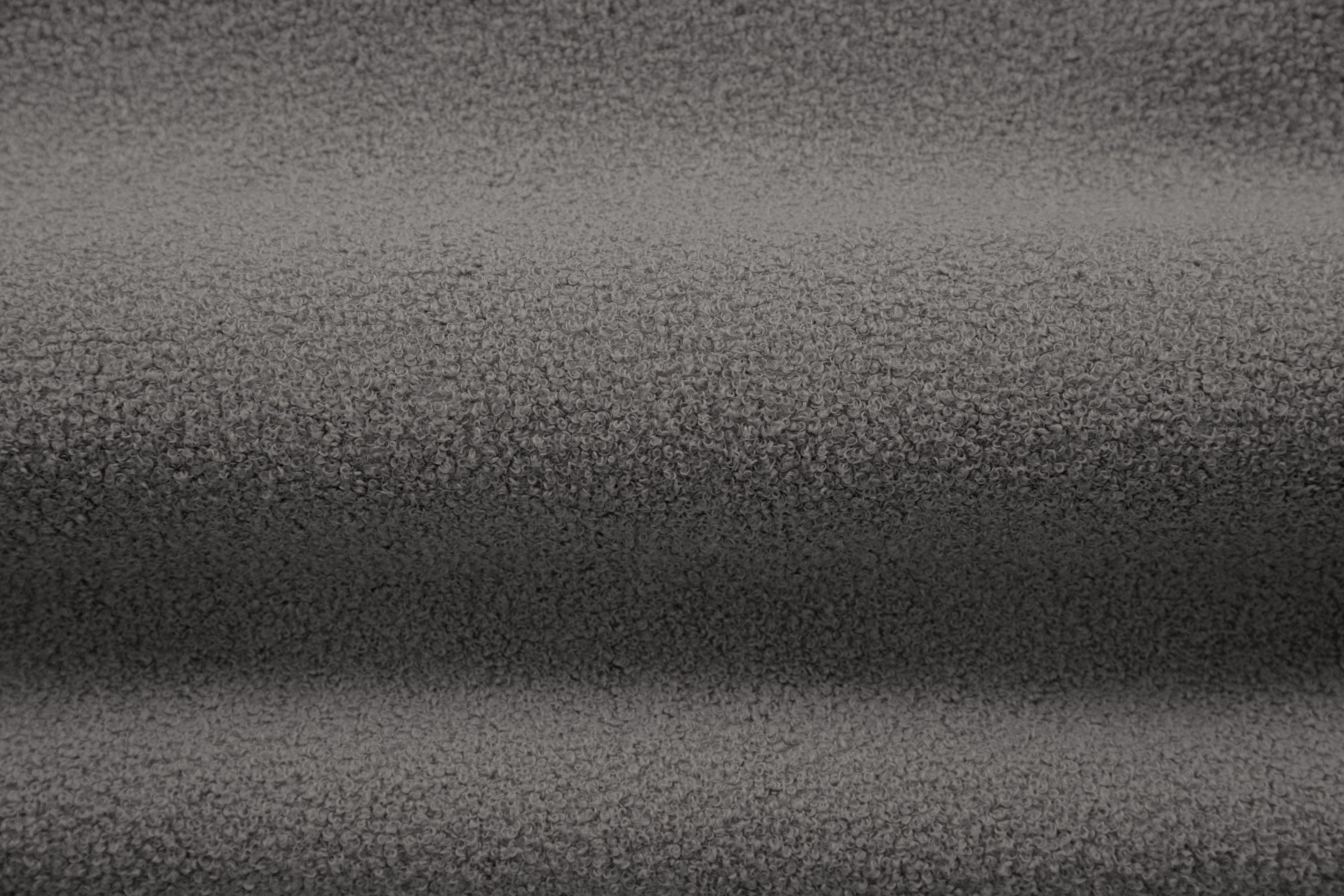 Es ist ein Boucle -Polsterstoff mit einem weichen, lockigen Aussehen. Seine Textur besteht aus unregelmäßigen Schleifen aus verdrehtem Garn. Unregelmäßigkeiten sind aufmerksam und gleichzeitig glatt und angenehm. Eine leicht glänzende Oberfläche verleiht Komfort und einen warmen, stilvollen Look. Tests haben gezeigt, dass das Material sehr langlebig ist und gegen Flecken resistent ist.