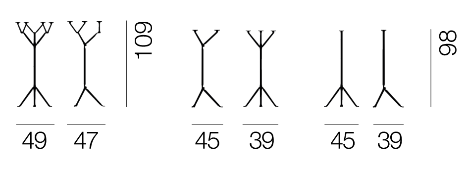 Bodenleuchter mit einem, drei oder sechs Armen von der Marke Magis, entworfen vom berühmten Duo Ronan & Erwan Bouroullec, ist ein außergewöhnliches Element der Inneneinrichtung, das rohe Ästhetik mit eleganter Form verbindet. Hergestellt aus strapazierfähigem Stahl, bietet er Stabilität, Widerstandsfähigkeit und zeitloses Aussehen. Seine schlichte, geometrische Konstruktion fügt sich perfekt sowohl in moderne als auch in klassische Arrangements ein.