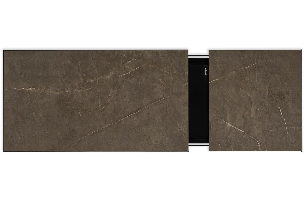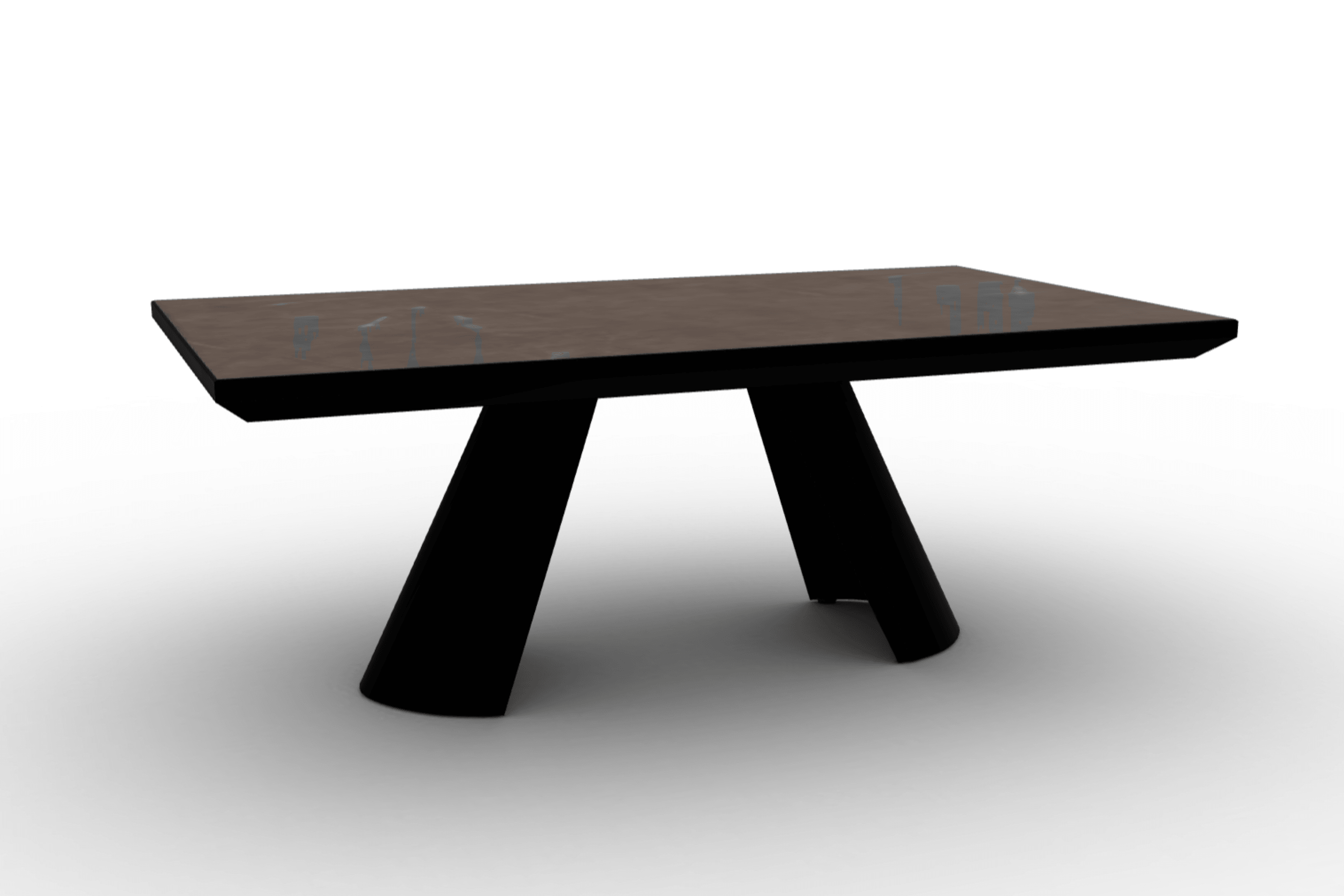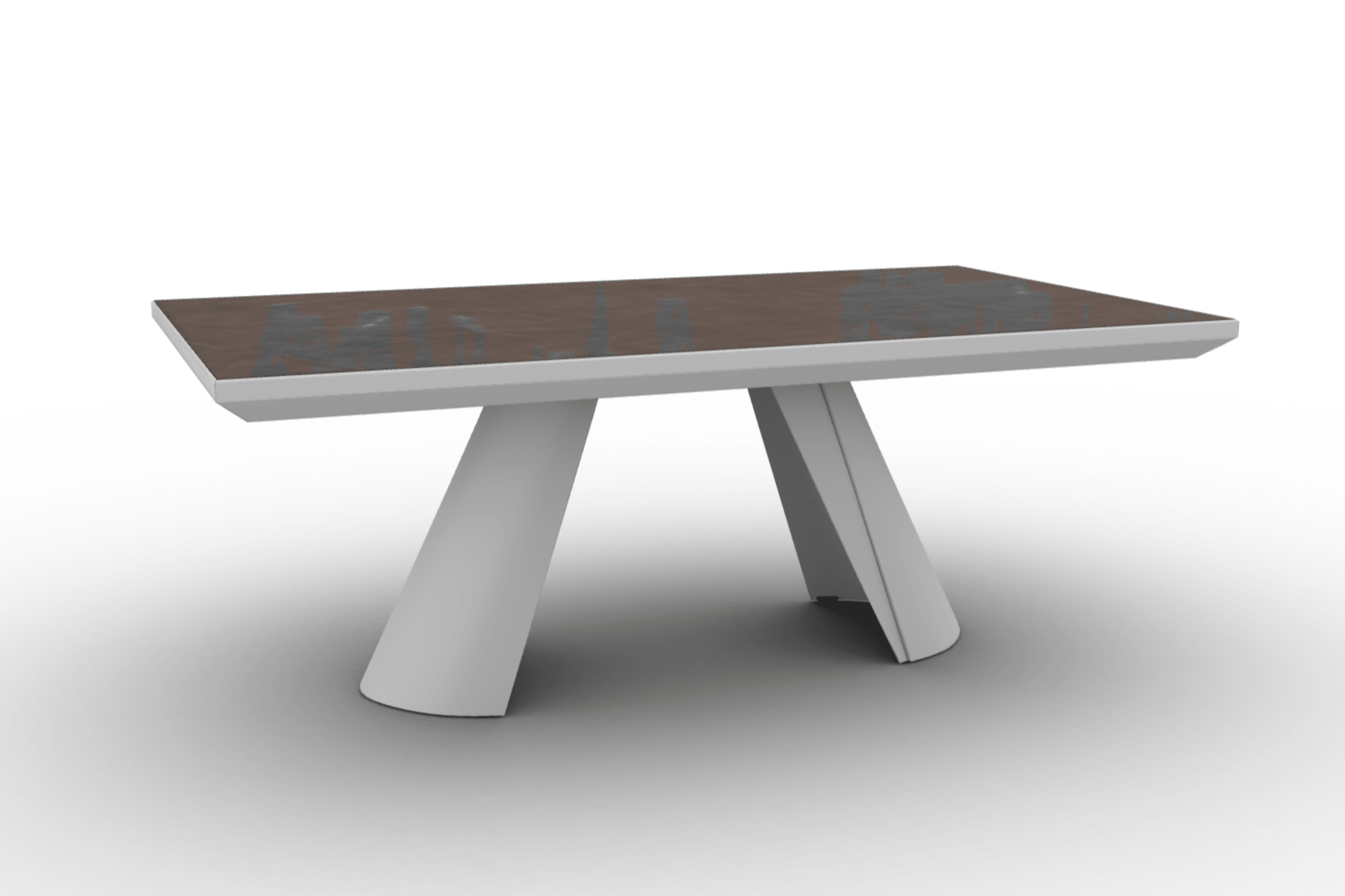 Seine visuelle Leichtigkeit inspiriert sich vom Konzept des dankbaren Biegens und der Kippblätter, dessen Höhepunkt eine charakteristische Basis ist. Diese Grundlage bietet eine stabile Plattform für ein einziehbares Oberteil, das dank des patentierten Mechanismus bis zu einer ungewöhnlichen Länge von bis zu 3 Metern erstreckt. Die Schaltung der Arbeitsplatte reflektiert den strukturellen Schatten der Basis und zeigt das faszinierende Detail - Doppelmetall