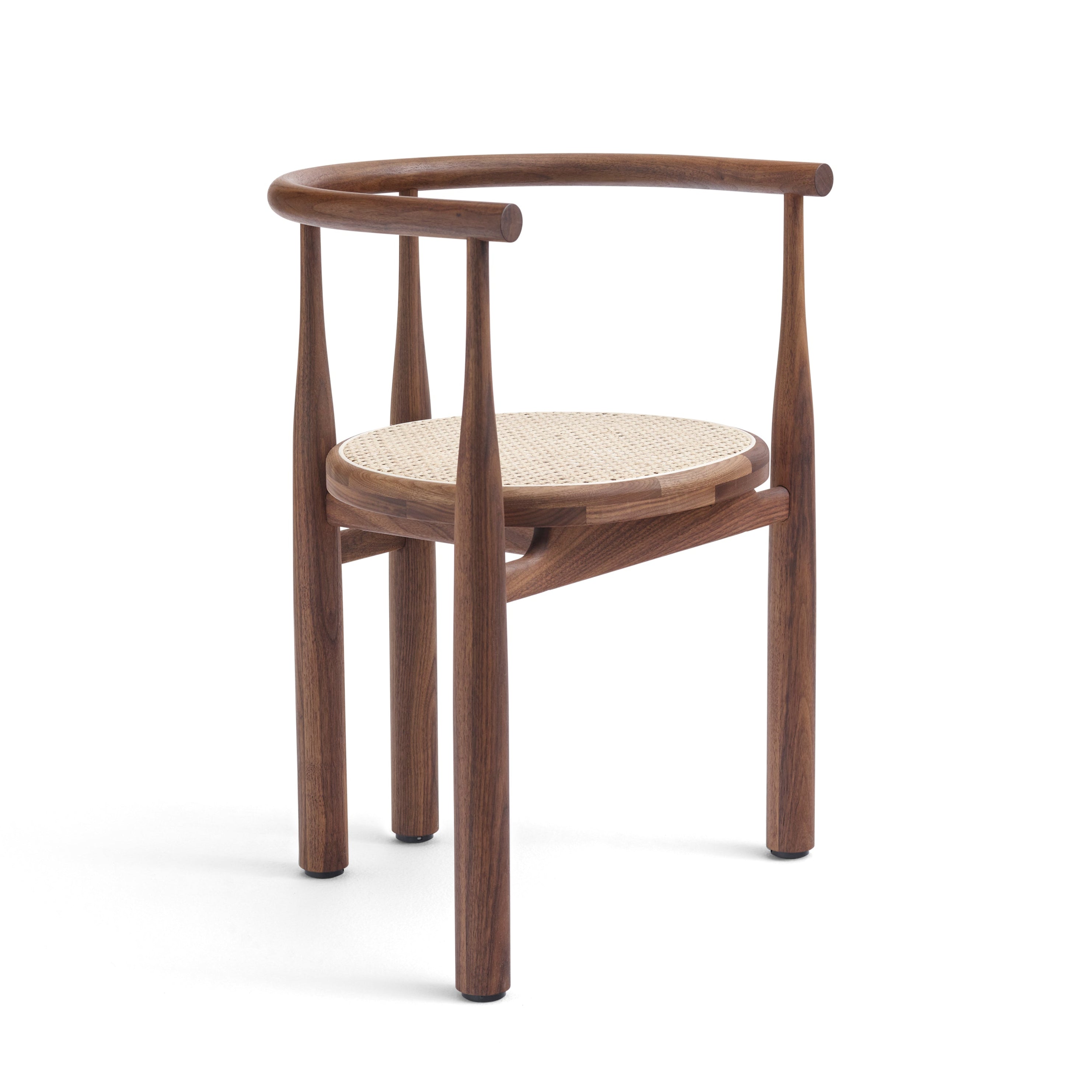 Bukowski -Stuhl geflochtener Sitz mit einer nussigen Basis