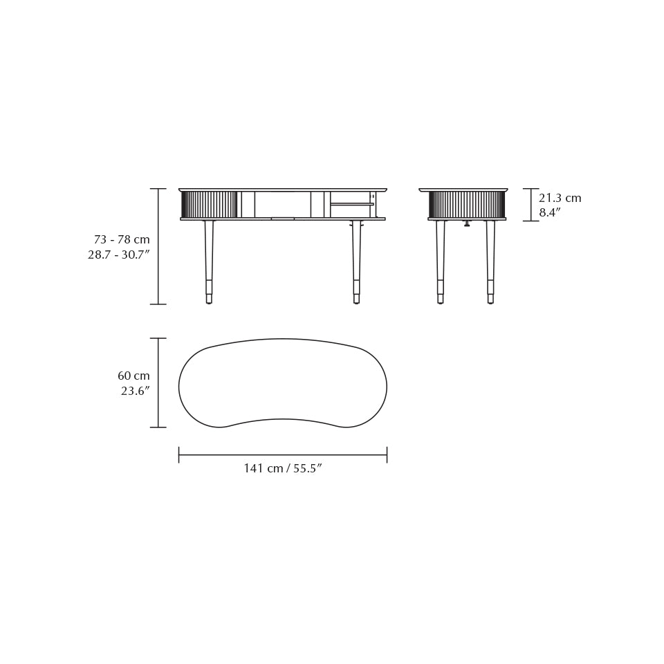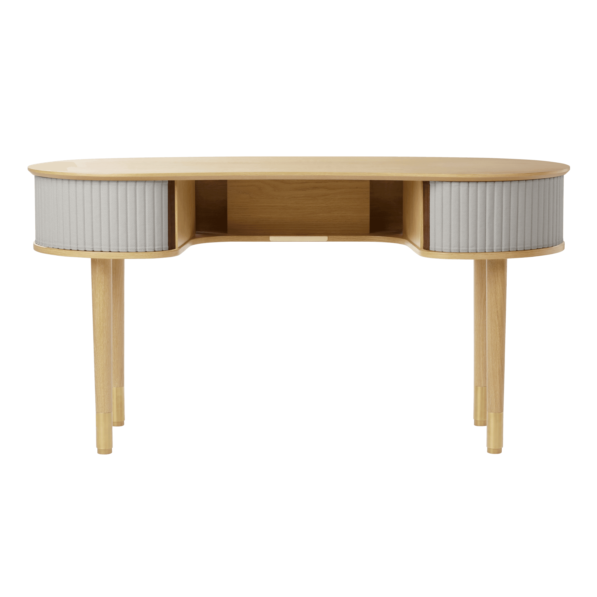 Schreibtisch Audraciocy ist zeitlose Büromöbel mit außergewöhnlichen Details, die die Arbeitseffizienz unterstützen und die Bestellung am Arbeitsplatz fördern. Seine leicht gekrümmte organische Form bezieht sich auf den skandinavischen Minimalismus, während schiebende Stoff Jalousien Noten der modernen Nostalgie hinzufügen und eine harmonische Kombination zwischen Tradition und Moderne erzeugen.