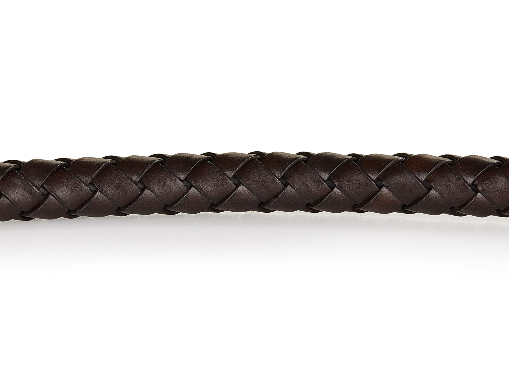 Außenlampe Muse ist ein Leuchtturm mit einem originellen und wertvollen Design dank hochentwickelter Details, wie einem geflochtenen braunen Ledergriff, einem satinbraunen Finish und einer Struktur im Vintage -Stil.