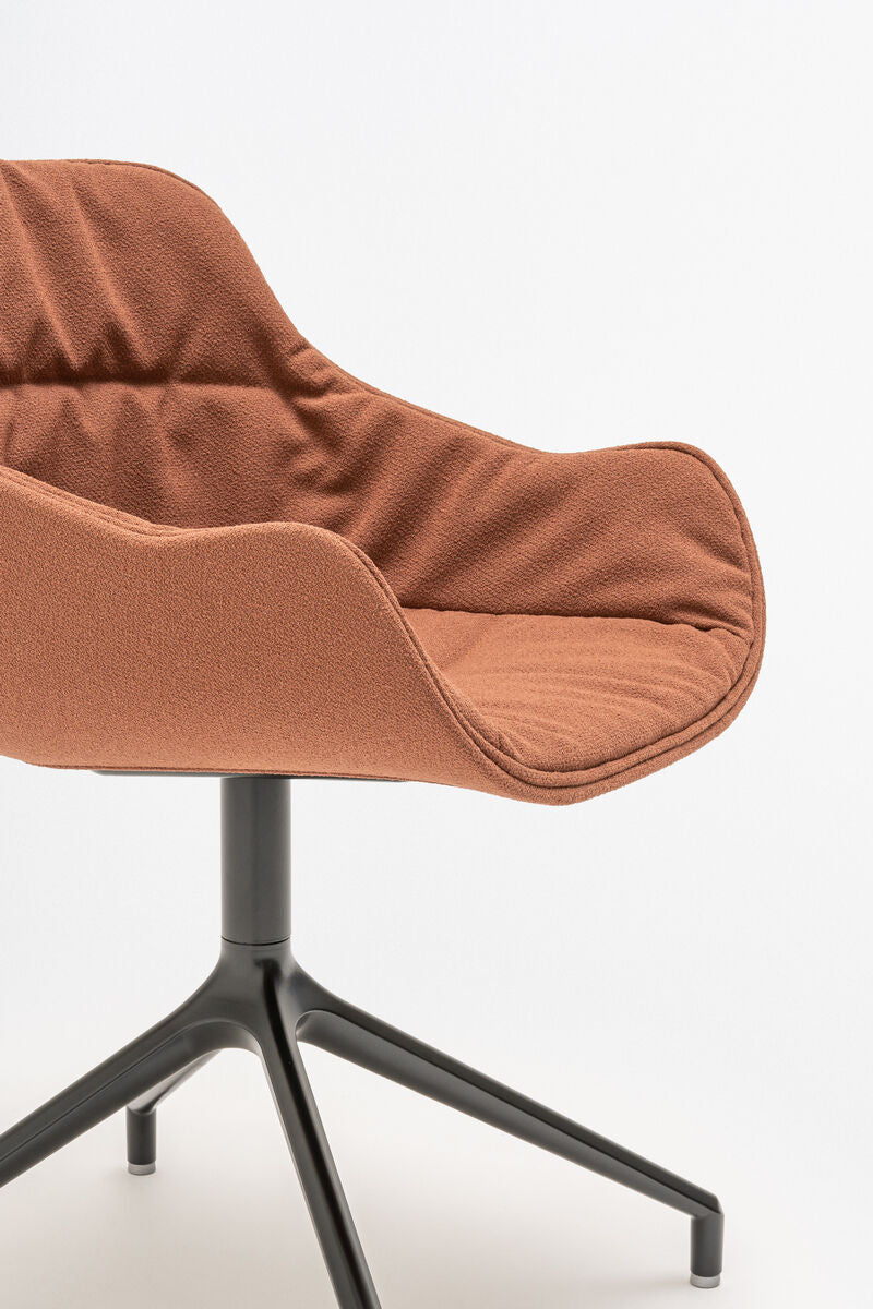 Die Aluminiumbasis verleiht Eleganz und Haltbarkeit, und die an weichen Oberflächen angepassten Räder ermöglichen eine einfache Bewegung des Stuhls. Drehstuhl Es ist eine ideale Wahl für Büros, Konferenzräume und Heimbüros, die gleichzeitig eine stilvolle und praktische Lösung benötigen.