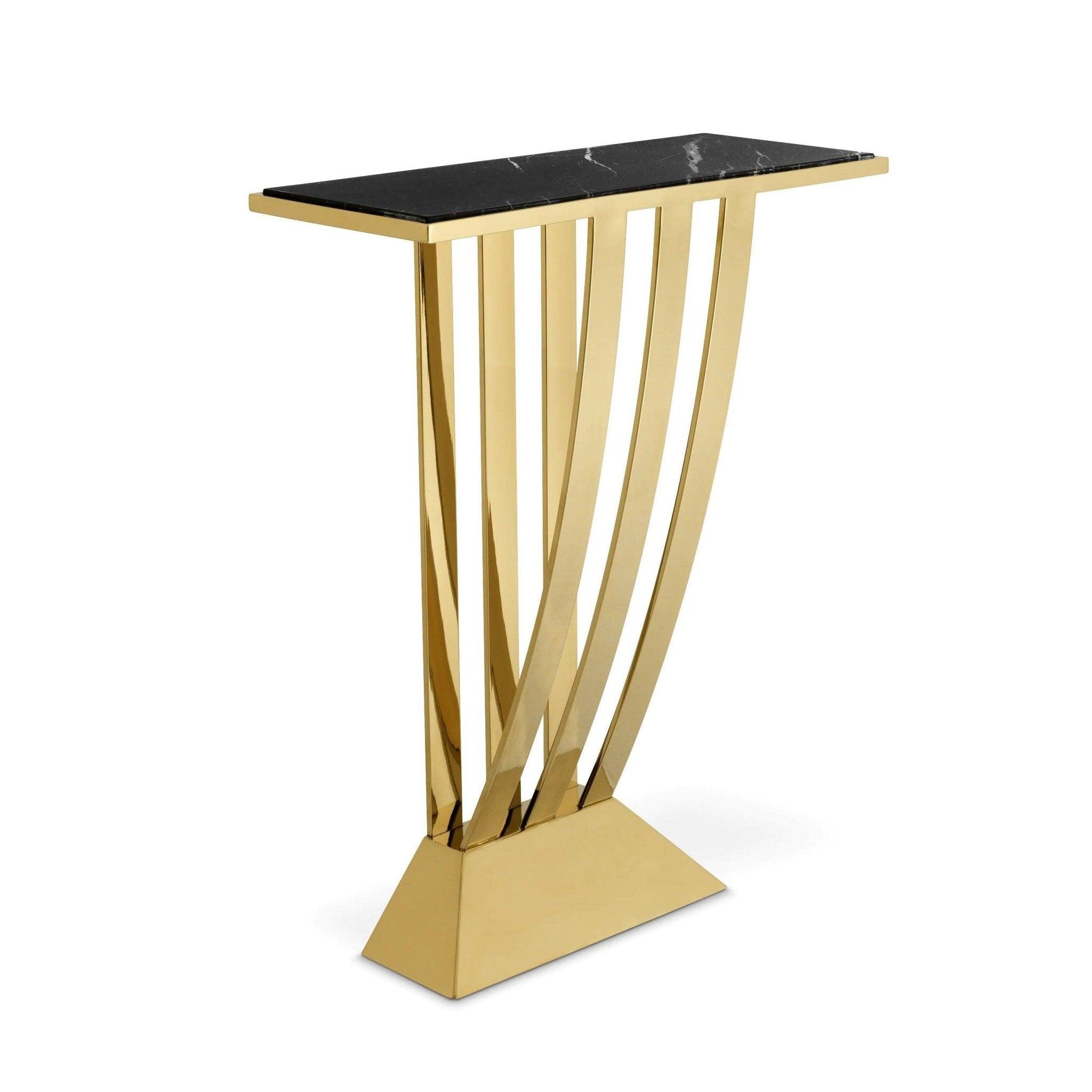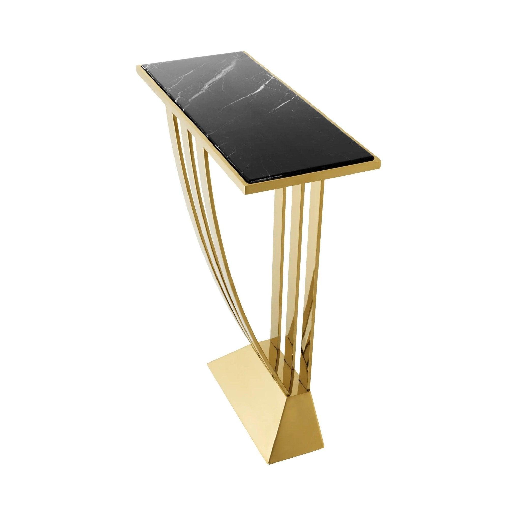 Die rechteckige Konsole aus schwarzem Marmor ist ein Ausdruck von Luxus und ein einzigartiger Geschmack. Marmor ist ein Material, das nicht nur Eleganz, sondern auch die Möbel hält. Golden Konsole Beau Deco ist eine großartige Möglichkeit, einen monochromen Effekt in seinem Innenraum zu erzeugen und ihm einen einzigartigen Charakter zu verleihen. Es ist ein Möbelstück, das mit Luxus und Harmonie ausgeht und eine einzigartige Atmosphäre in Ihrem Zuhause schafft.