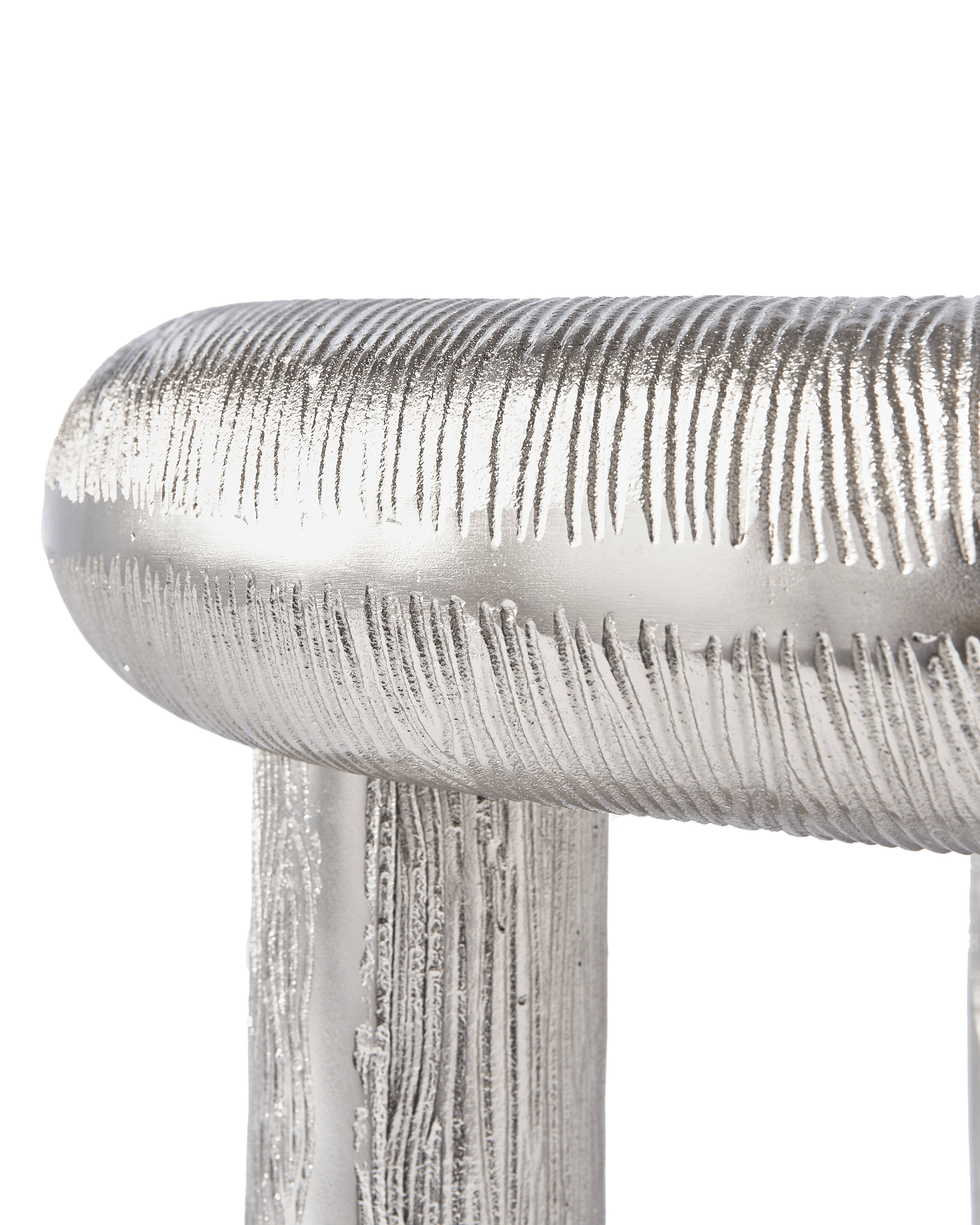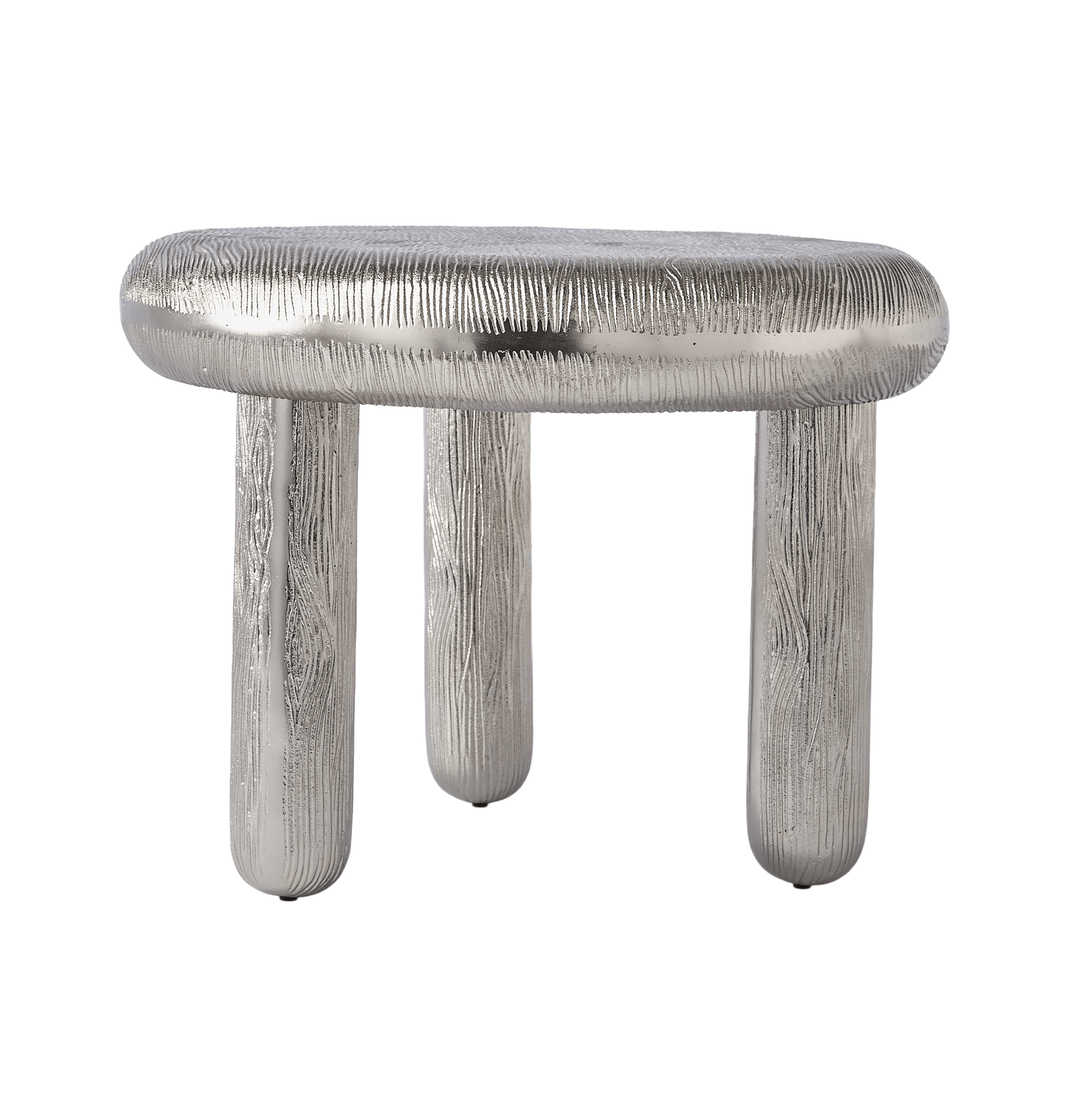 Seitentisch Dicke Scheibe in Silber ist eine interessante Ergänzung, die dem Innenraum einen leicht industriellen Stil einführt. Die gebürstete Oberfläche verleiht dem Charakter die gesamte Struktur, während das einfache Design und die qualitativ hochwertigen Materialien wie solides Kupfer dieses Modell eine interessante Atmosphäre in die Räume bringen. Der dicke Scheibentisch ist eine ursprüngliche Dekoration und ein zusätzlicher Ort, um Ihre Lieblingsartikel anzuzeigen.