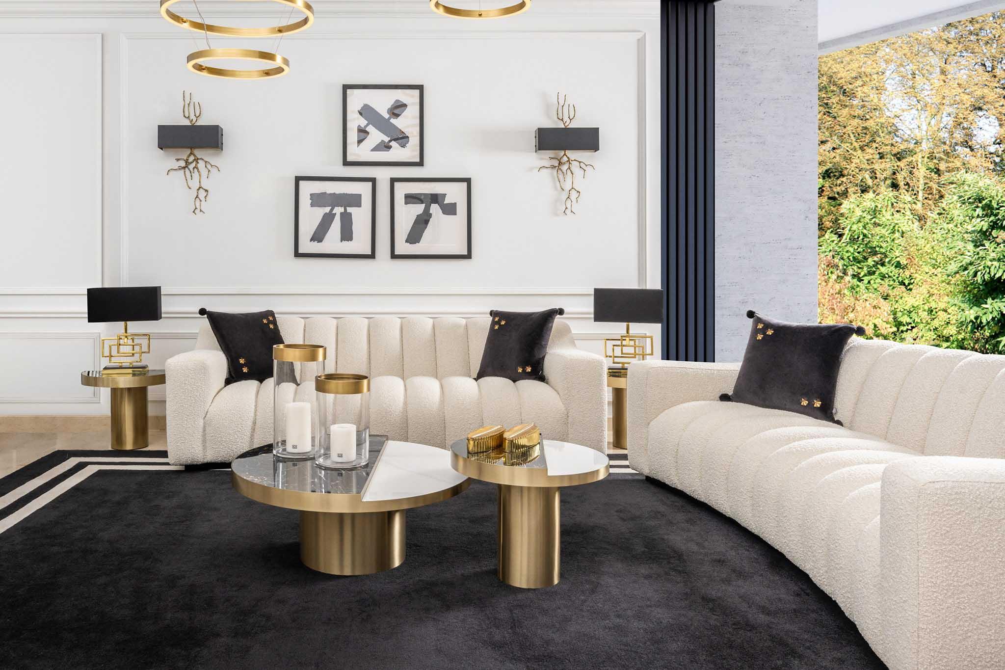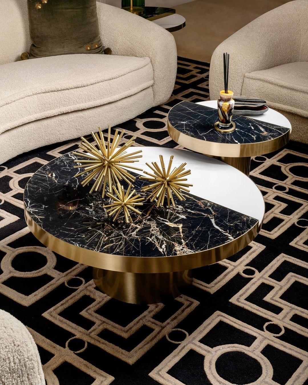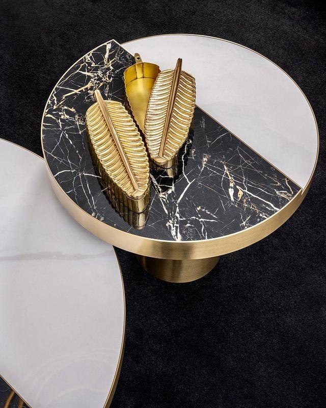 Seitentisch Excelsior ist die Quintessenz der Kunst in der Welt der Möbel. Die einzigartige Komposition von zwei halb gerunden Marmor -Arbeitsplatten schafft ein echtes Kunstwerk. Weißer Marmor harmonisch mit dem dominanten schwarzen Marmor kontrastiert, und die subtile Erhöhung der schwarzen Platte verleiht dem ganzen dynamischen Aussehen. Der Rahmen und der Rand des Tisches ergänzen dieses luxuriöse Design im Finish von gebürstetem Messing und verleihen ihm Wärme und Tiefe.