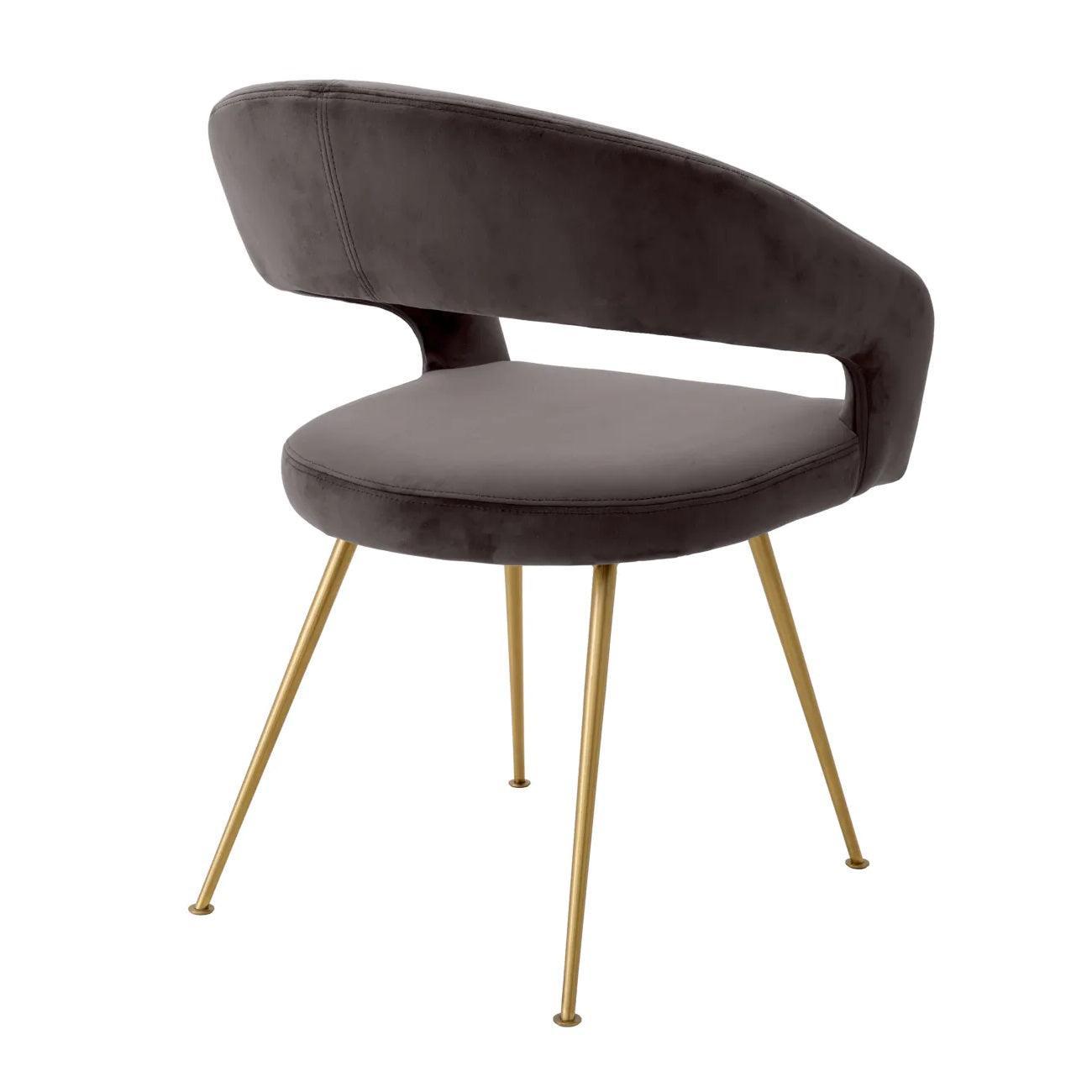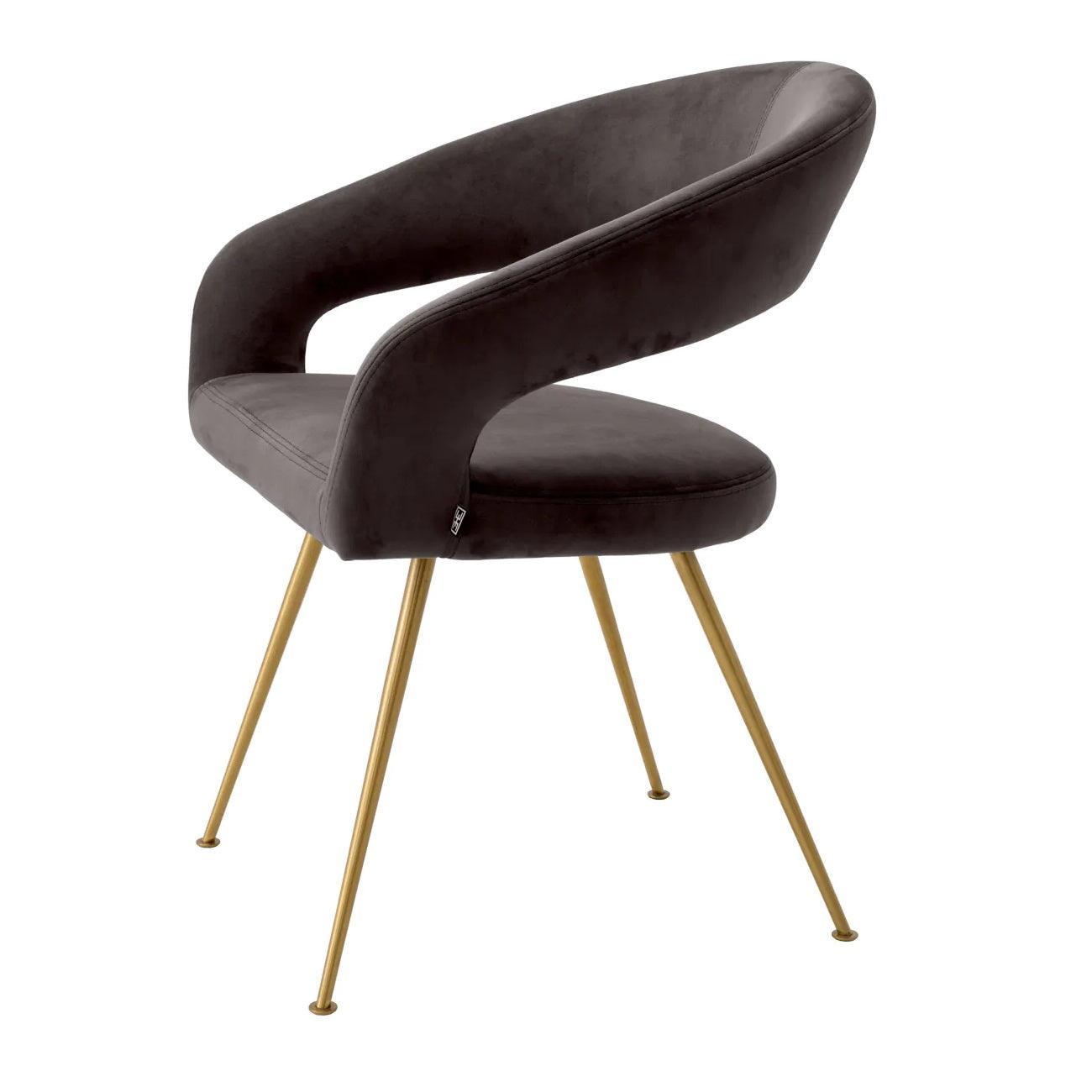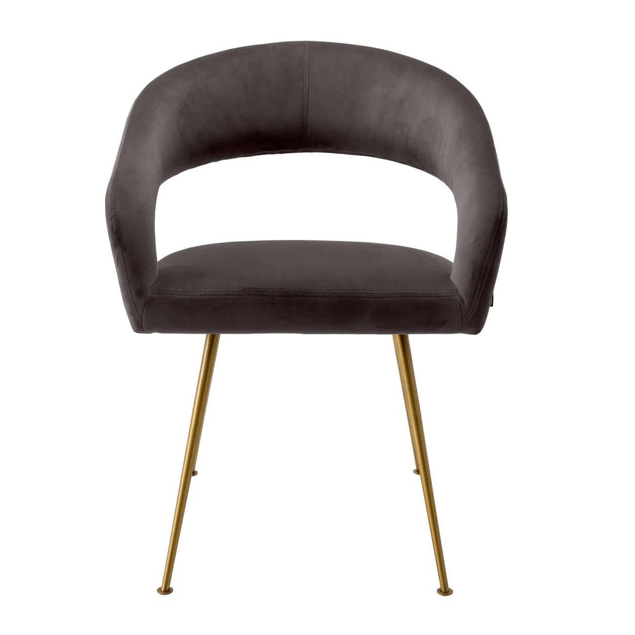 Die sich verjüngten Beine aus gebürstetem Messing sind eine Anspielung auf die Moderne. Ihr glänzendes Finish fügt einen Bravo Shine Stuhl hinzu und betont seinen luxuriösen Charakter. Es ist nicht nur ein Möbelstück, sondern auch ein echtes Kunstwerk, das in den Auge auffällt und in jedem Raum zu einem Mittelpunkt der Aufmerksamkeit wird. Dunkelgrauer Stuhl Bravo ist mehr als nur ein Sitzplatz. Dies ist Ausdruck Ihres Stils, Leidenschaft für Design und Liebe für Details. Lassen Sie Ihr Esszimmer zu einem Ort werden, an dem die Tradition die Moderne trifft und jede Mahlzeit in einer einzigartigen Umgebung gefeiert wird.