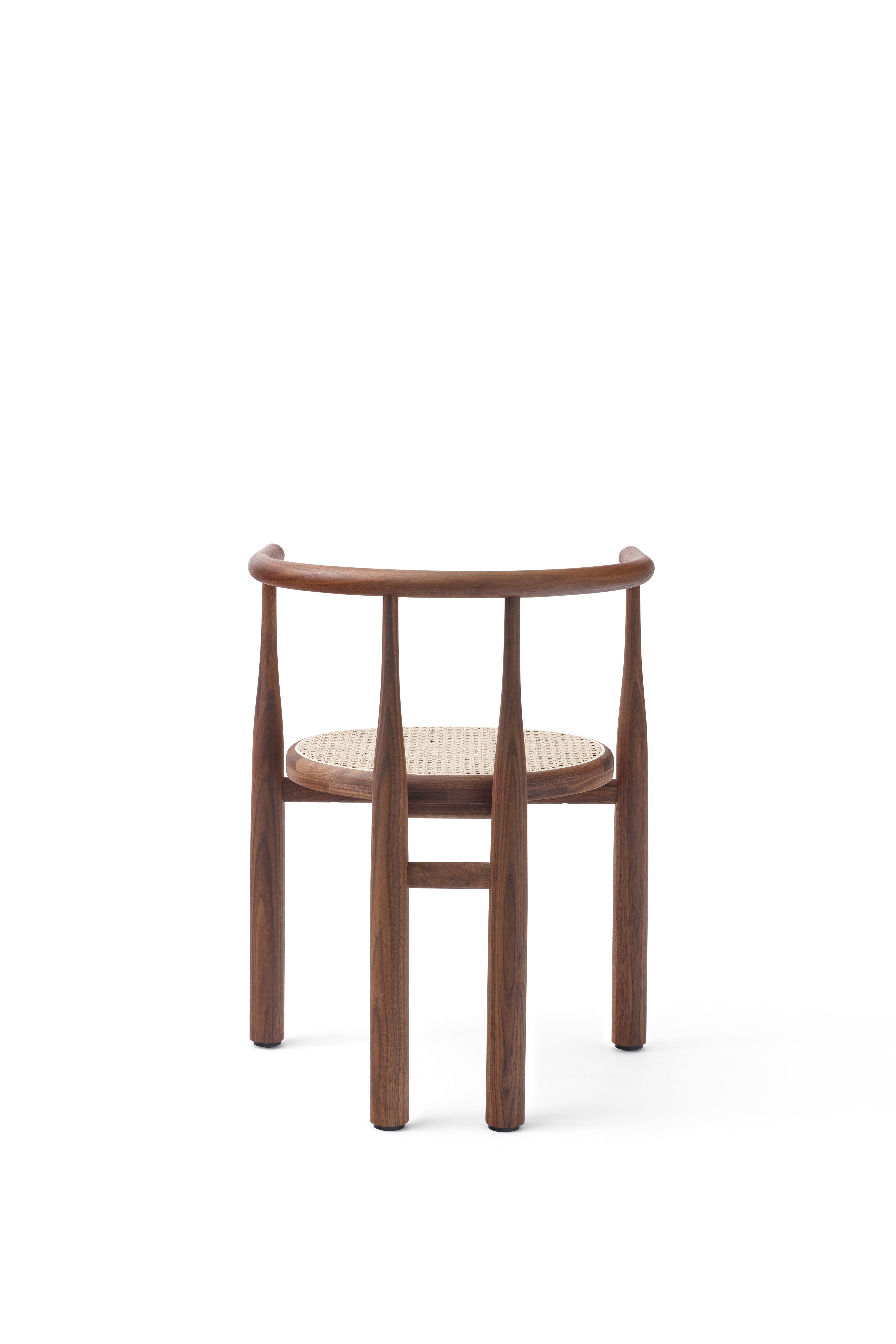 Die neue Version des Bukowski -Stuhls unterscheidet sich durch einen Sitz aus Wiener Braid (French Cane), der ihm Subtilität und Leichtigkeit verleiht. In Kombination mit einem soliden Nussholzrahmen gewinnt der Stuhl einen eleganten, natürlichen Look und balanciert perfekt zwischen Klassik und Moderne.