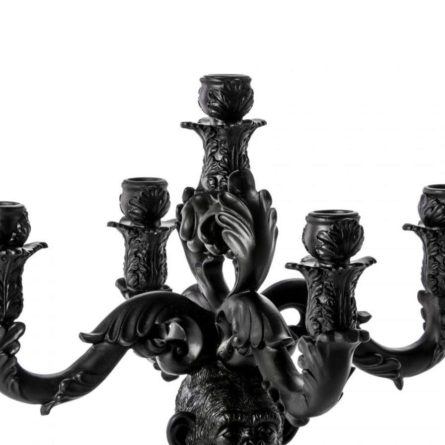 Der Burlesque -Schimpansenkerzenhalter bietet eklektisch Stil für ein unerwartetes Abendessen mit Kerzenschein. Es handelt sich um einen Vorschlag, der den Avant -Gart -Ansatz mit dem Barock Grotesque verbindet.