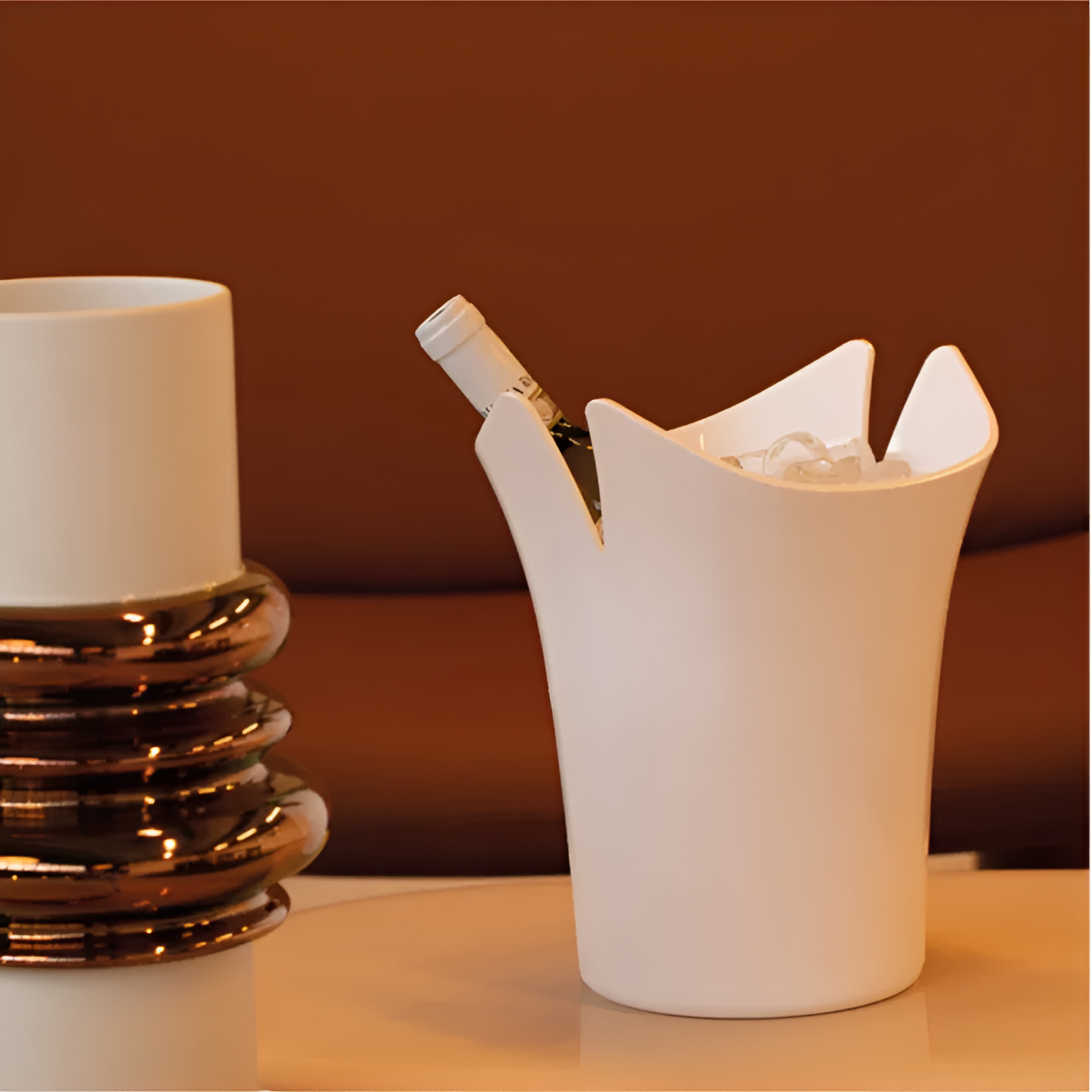 Der Kühler aus Polypropylen bietet Platz für eine Flasche und ist in zwei Farben erhältlich – klassischem Weiß und elegantem Schwarz. Seine universelle Ästhetik macht es zu einem perfekten Geschenk für besondere Anlässe. Calla ist die Essenz modernen Designs kombiniert mit Inspiration aus der Natur.
