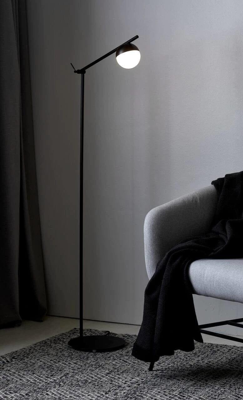 Stehlampe Contina ist Verkörperung Skandinavisches Design und Funktionalität. Der schwarze Rahmen wird durch eine weiße Glaskuppel ergänzt, die ein weiches und gemütliches Licht abgibt. Diese minimalistische Lampe sieht nicht nur schön aus, sondern schafft auch zahlreiche Anordnungsmöglichkeiten - der Kopf kann bei der Anpassung des Rahmens leicht in beide Richtungen gedreht werden.
