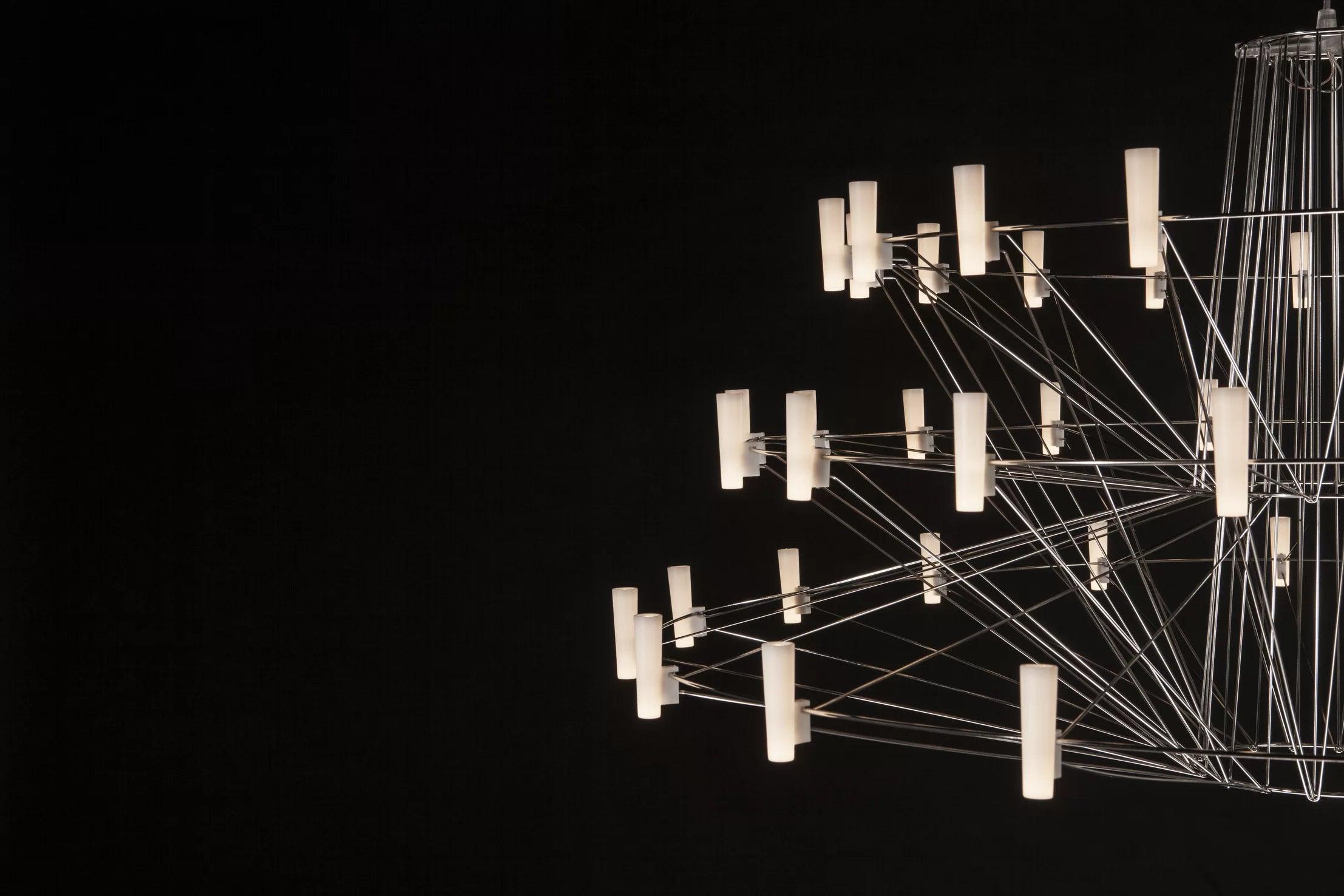 Coppélia Suspended ist in zwei Farben und zwei Modellen erhältlich. Dieses technische Meisterwerk, das mit einem Ballett mit hoher Klasse vergleichbar ist, zeichnet sich durch eine dünne und offene Form aus, die effektiv Strom transportiert. Der Kronleuchter kombiniert Kunst und Technologie und schafft ein einzigartiges Dekorationselement, das die Eleganz und Dynamik des Balletts in den Innenraum einführt.