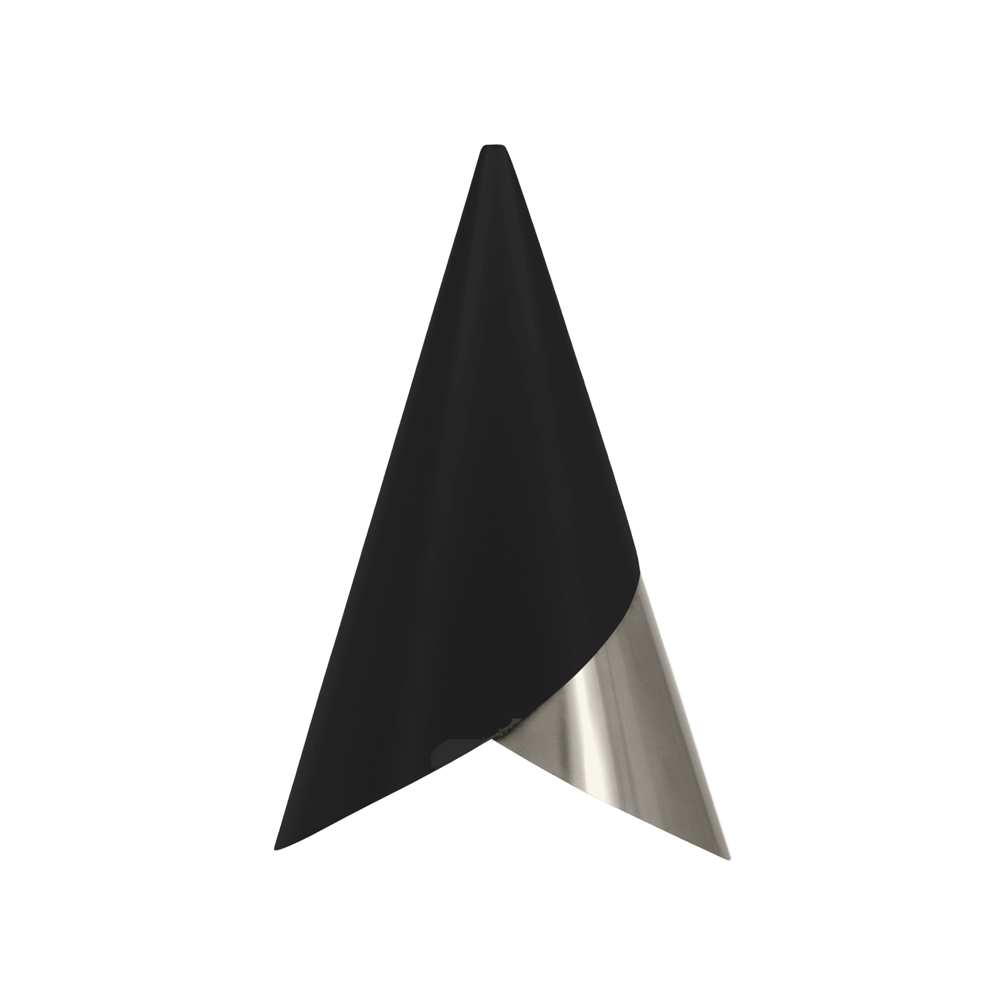 Kornett zu einzigartiger Lampenschirm, was Einfachheit und Funktionalität kombiniert und die Essenz der skandinavischen Eleganz verleiht. Es besteht aus zwei subtil geformten Metallkegeln, die an Stellen gedreht und umgewandelt werden können, wodurch Sie Licht und Erscheinungsbild für Ihre Vorlieben erzeugen können.