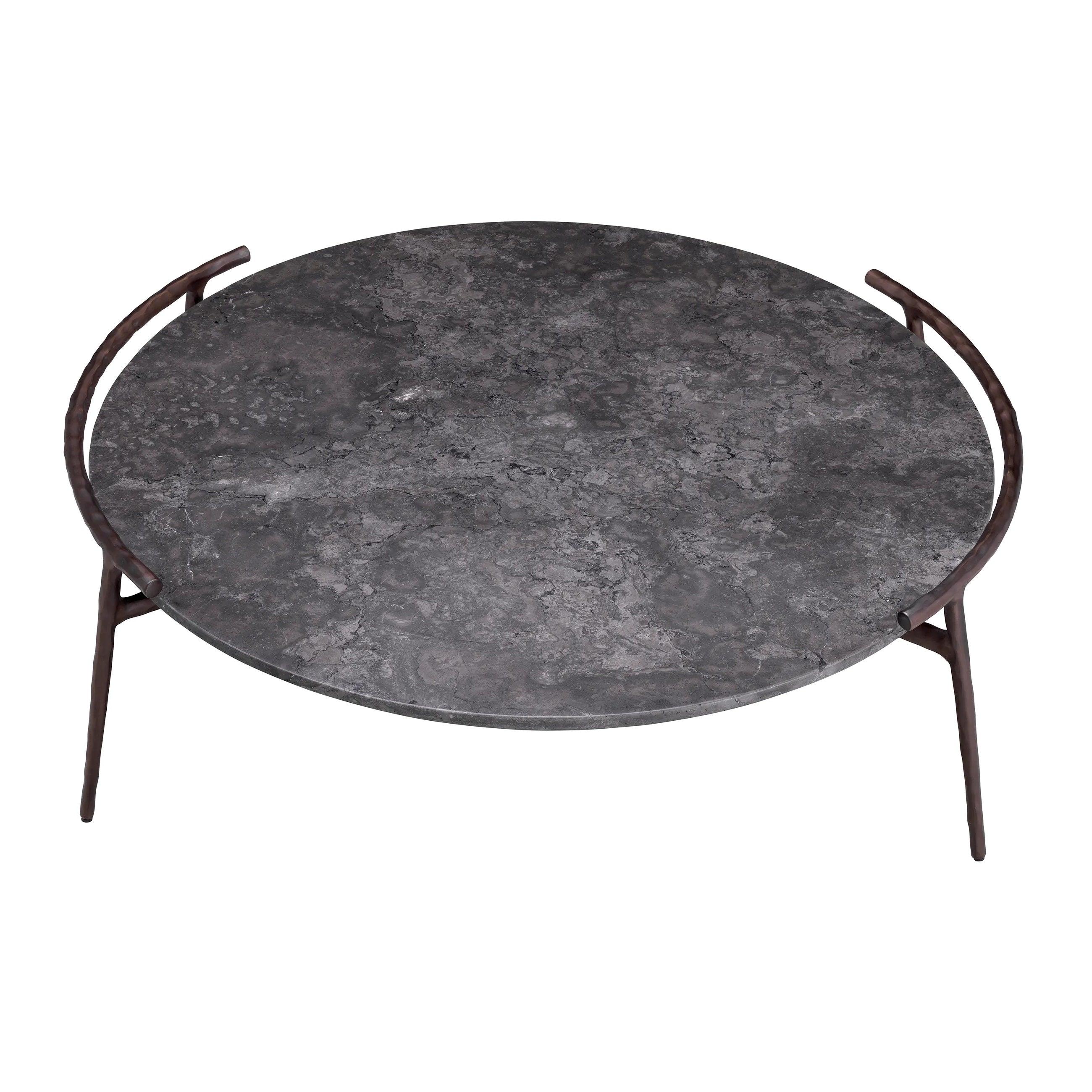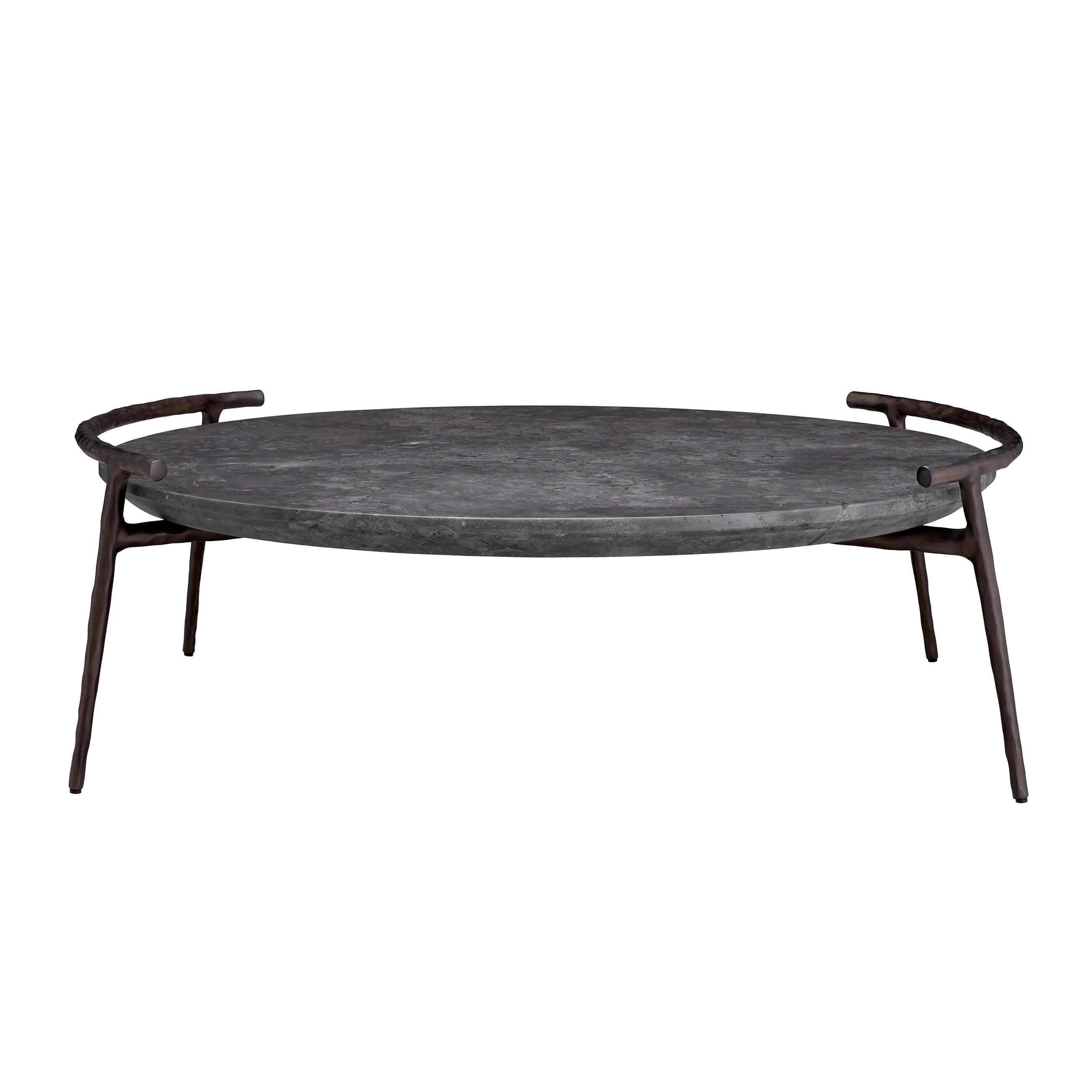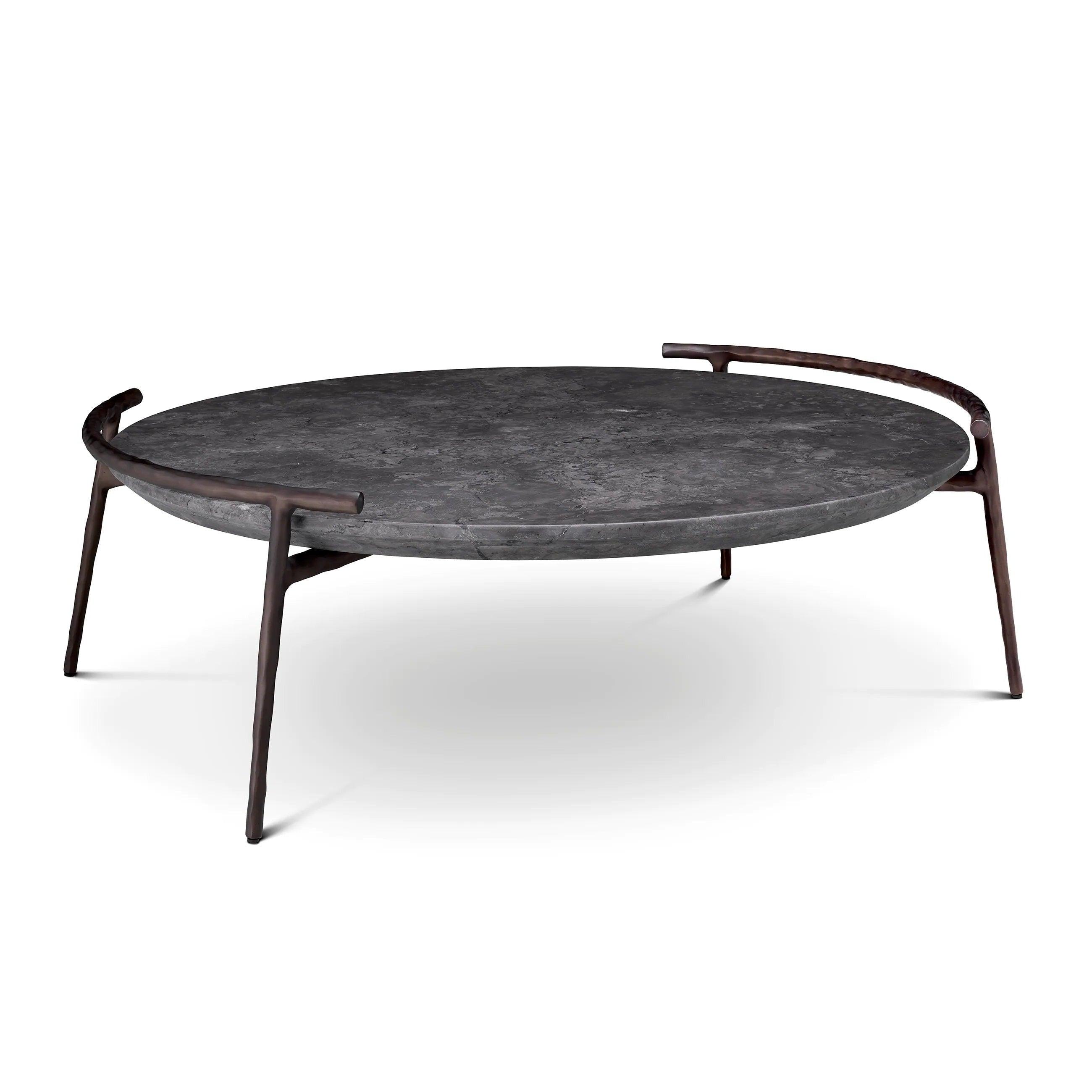 Brązowe wykończenie umieszczone na młotkowych nogach dodaje subtelnej nuty wyrafinowania, jednocześnie nie zakłócając piękna naturalnego marmuru. To detale takie jak te sprawiają, że stolik kawowy Arca jest wyjątkowym połączeniem kontrastów, które wzajemnie się uzupełniają, tworząc harmonijną całość.